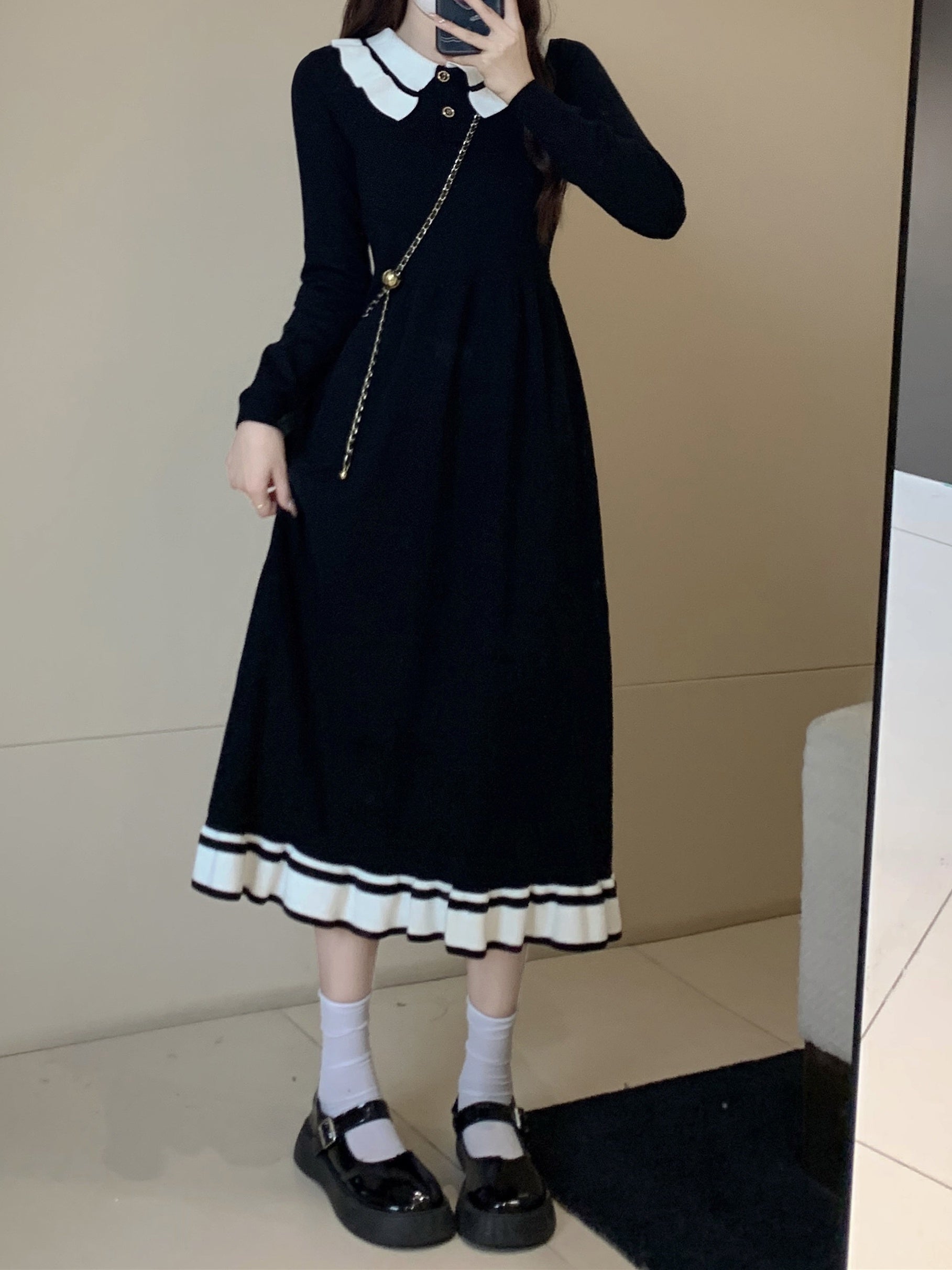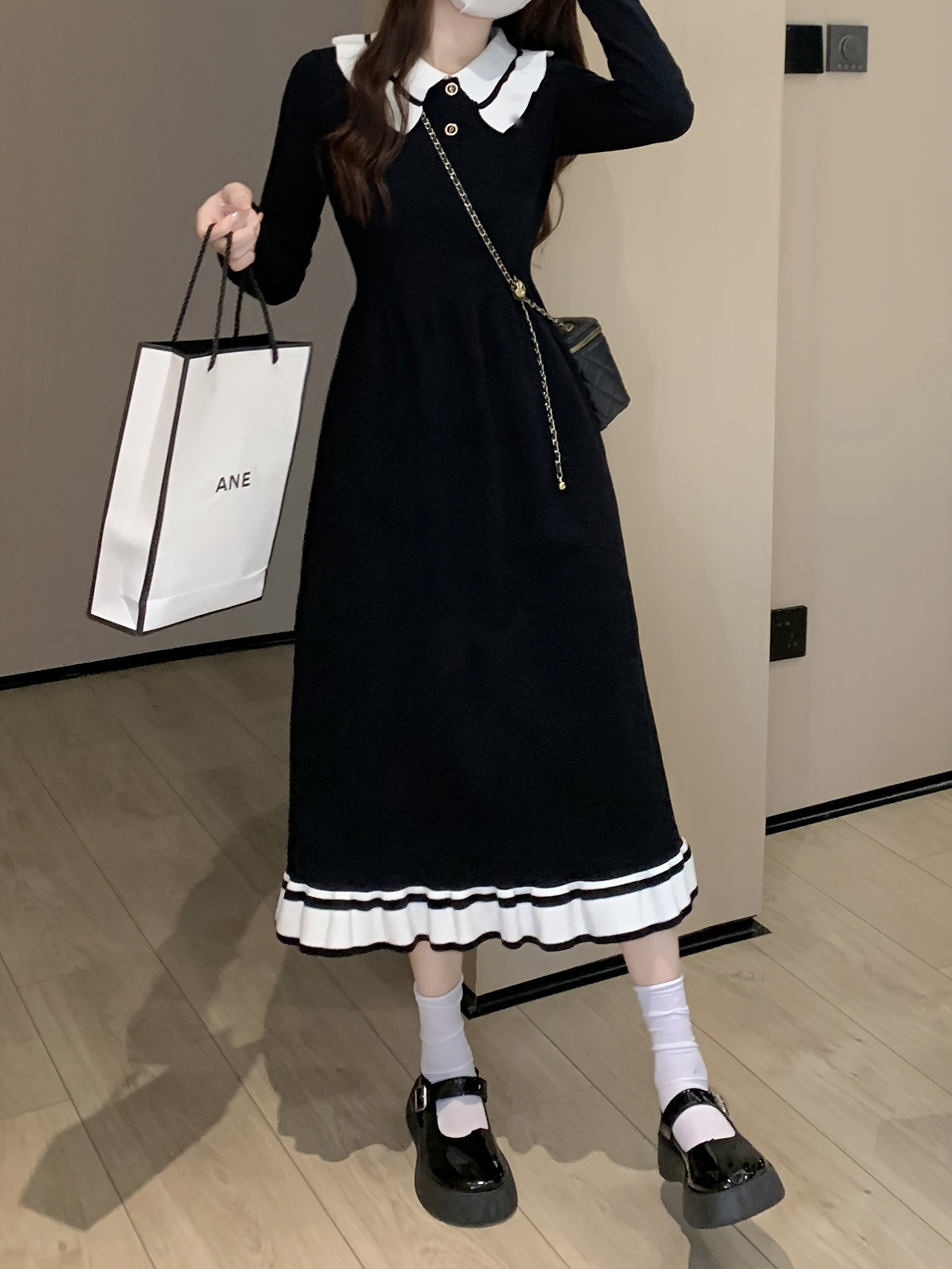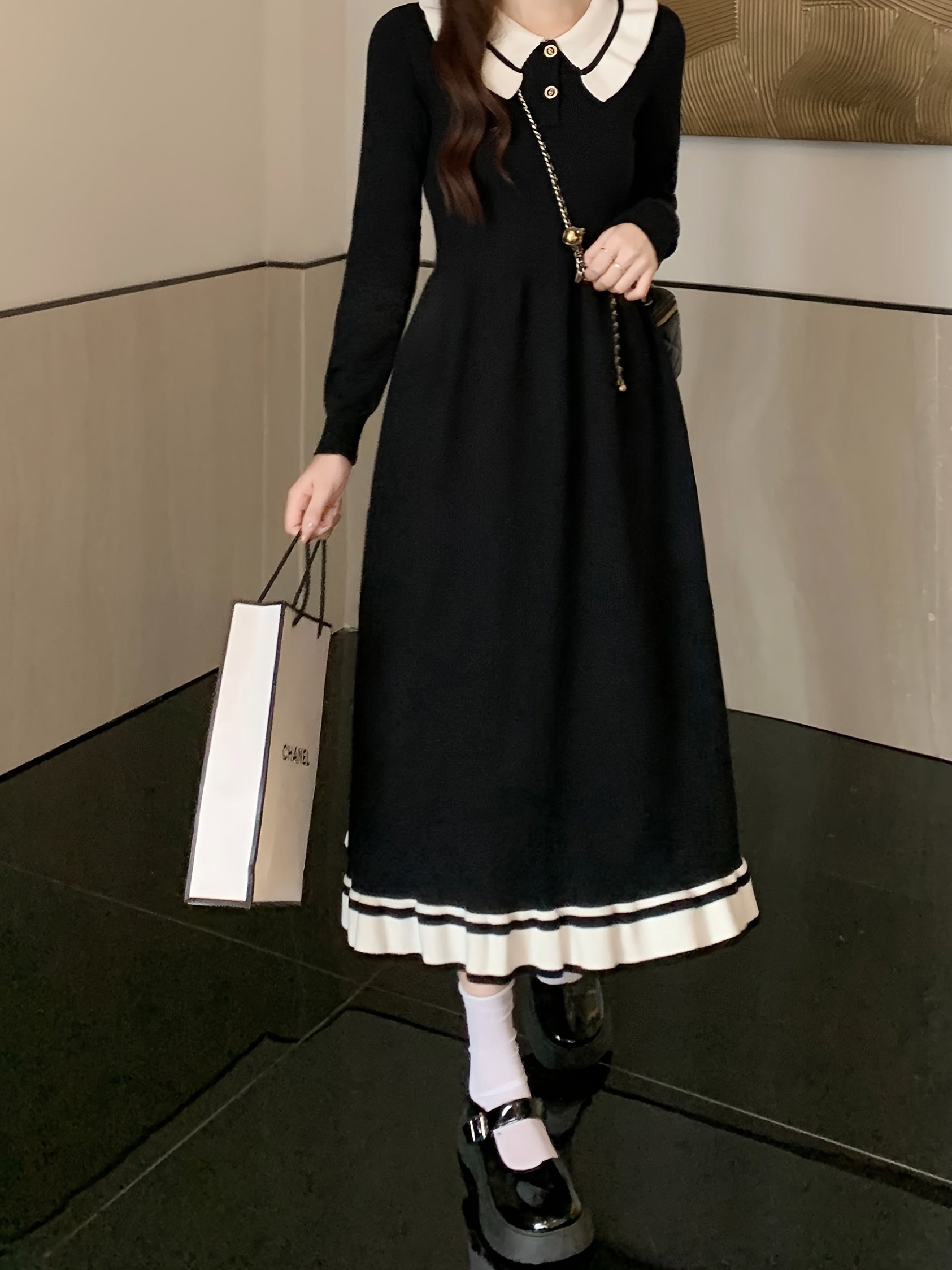 Sixsr Color Block Elegant Dress, Button Up Long Sleeve Dress For Spring & Fall, Women's Clothing