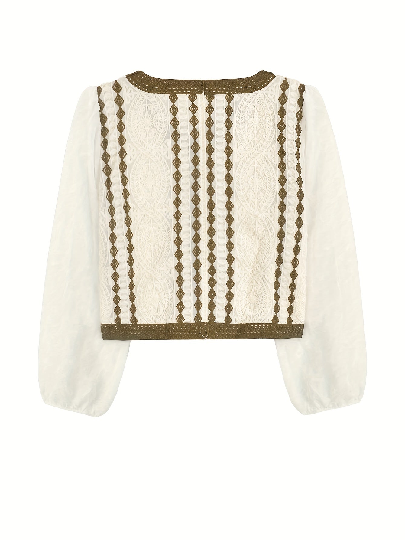 Sixsr Contrast Trim Button Front Blouse, Elegant Long Sleeve Blouse For Spring & Fall, Women's Clothing