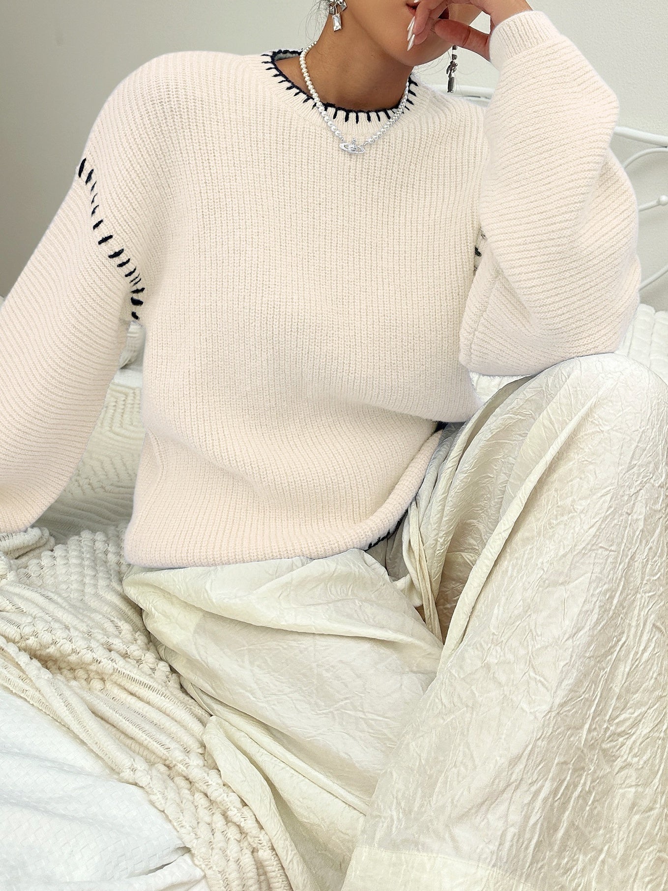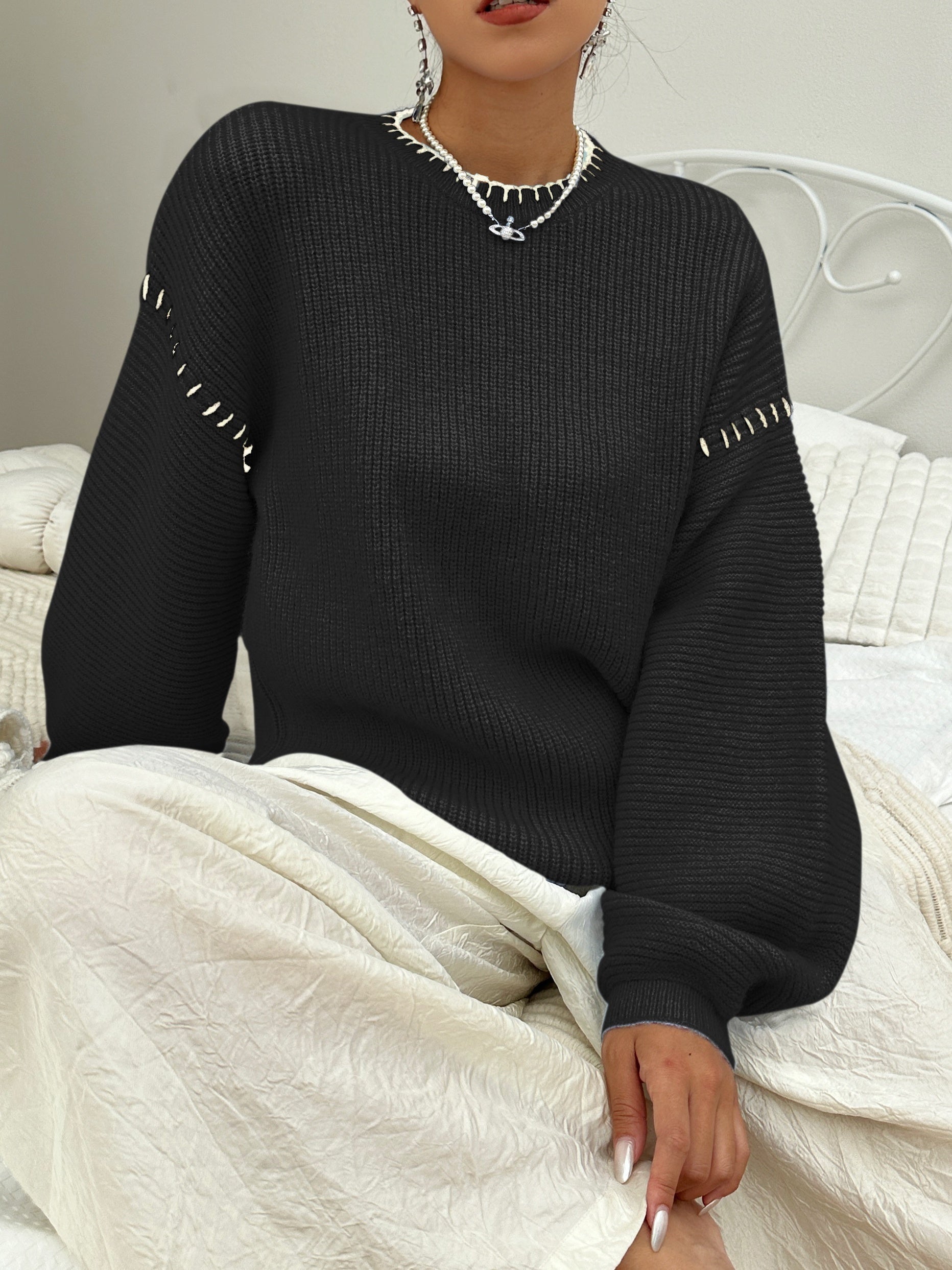 Sixsr Contrast Trim Crew Neck Sweater, Casual Long Sleeve Sweater For Fall & Winter, Women's Clothing