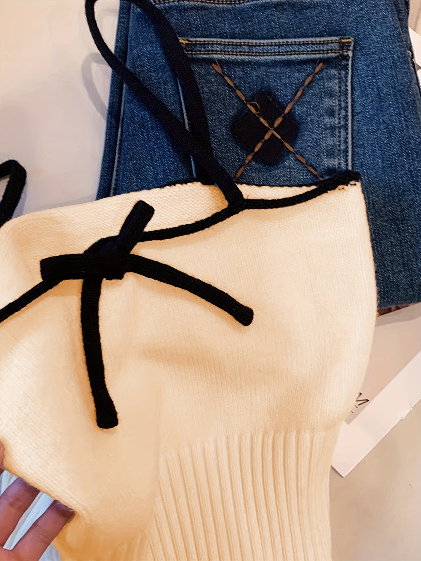 Sixsr Contrast Trim Spaghetti Strap Top, Casual Straight Neck Knit Cami Top, Women's Clothing