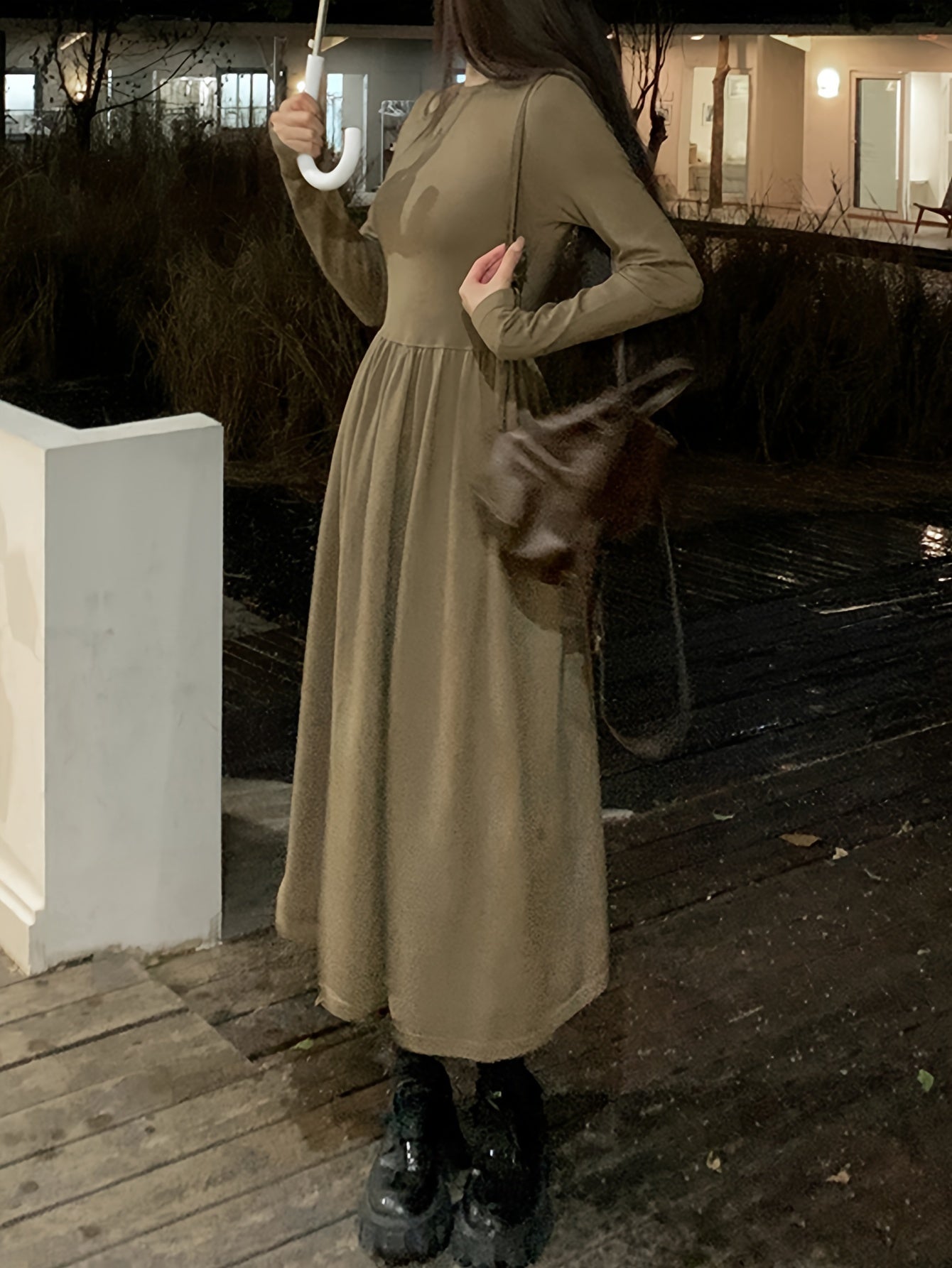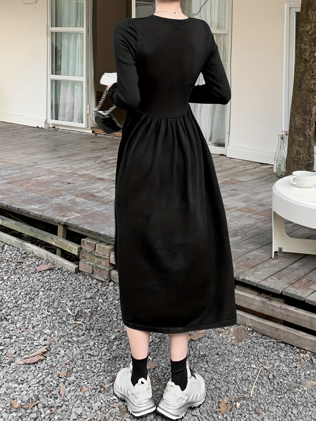 Sixsr Cut Out Long Sleeve A-line Dress, Chic Crew Neck Midi Length Dress, Women's Clothing