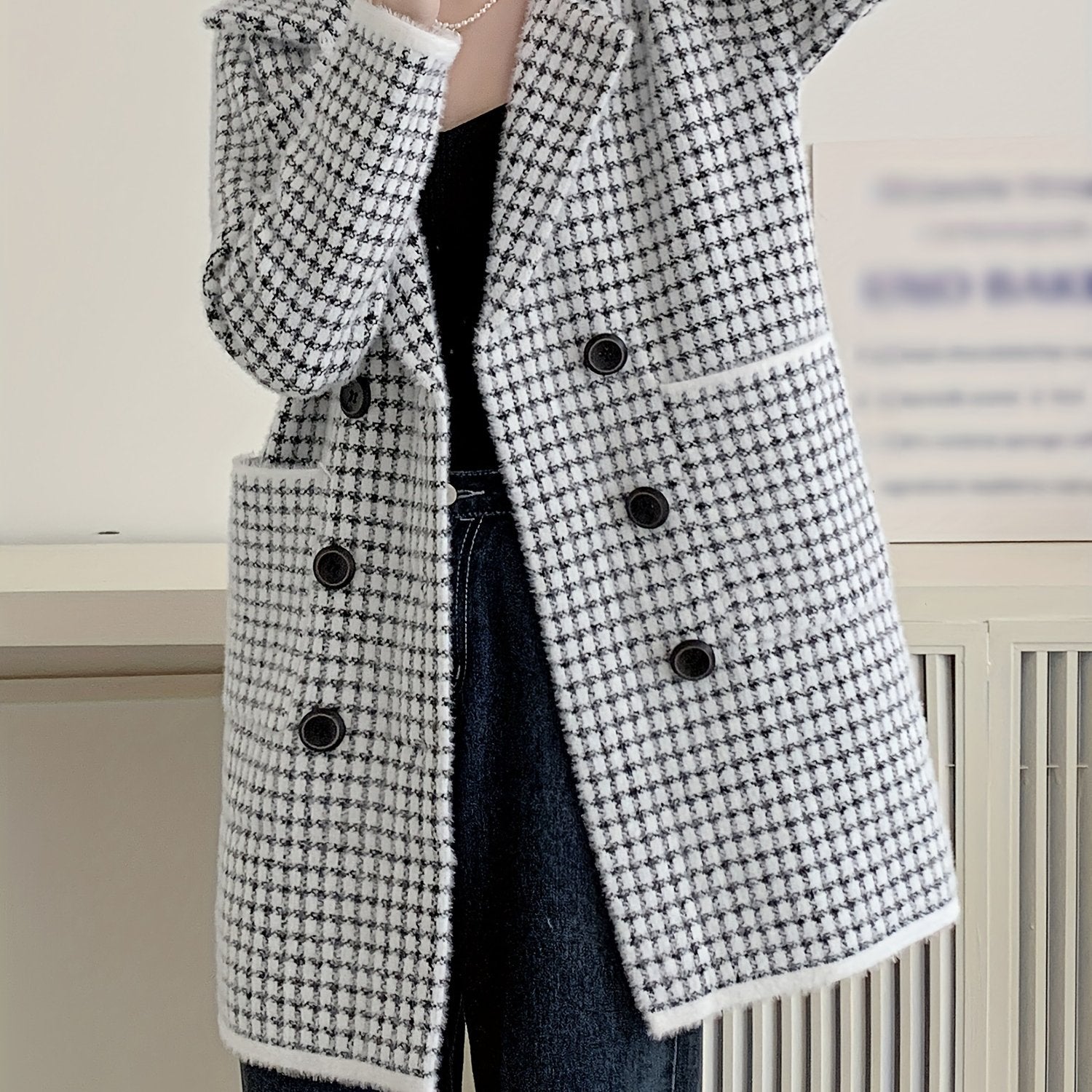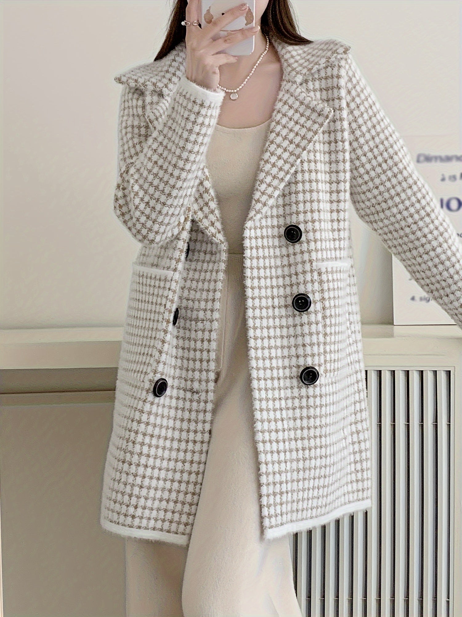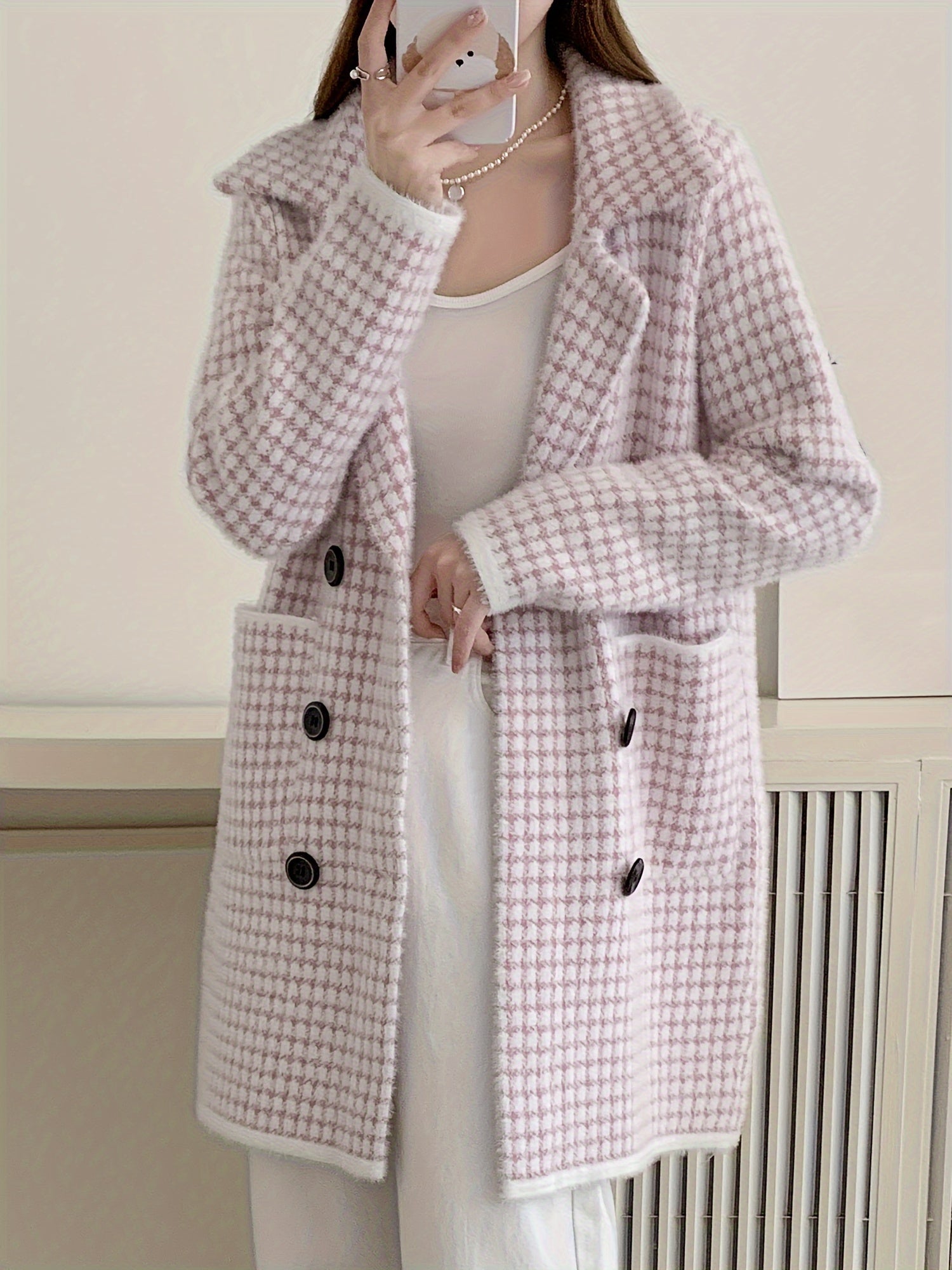 Sixsr Double Breasted Fuzzy Overcoat, Elegant Lapel Long Sleeve Warm Outerwear, Women's Clothing