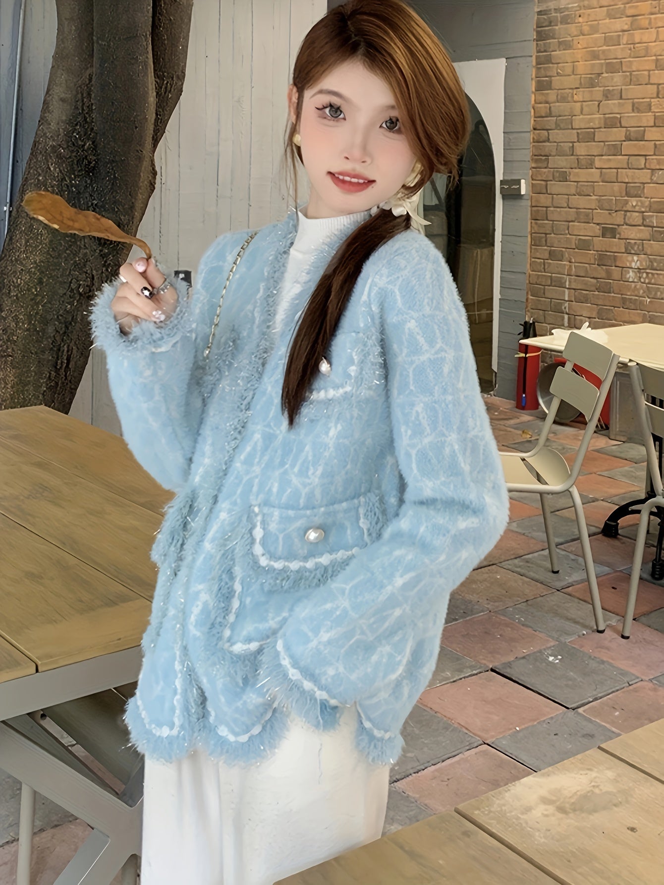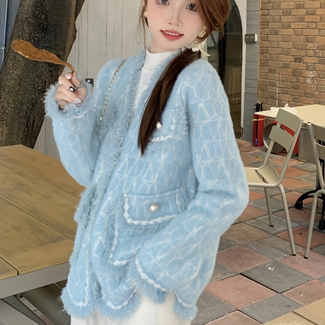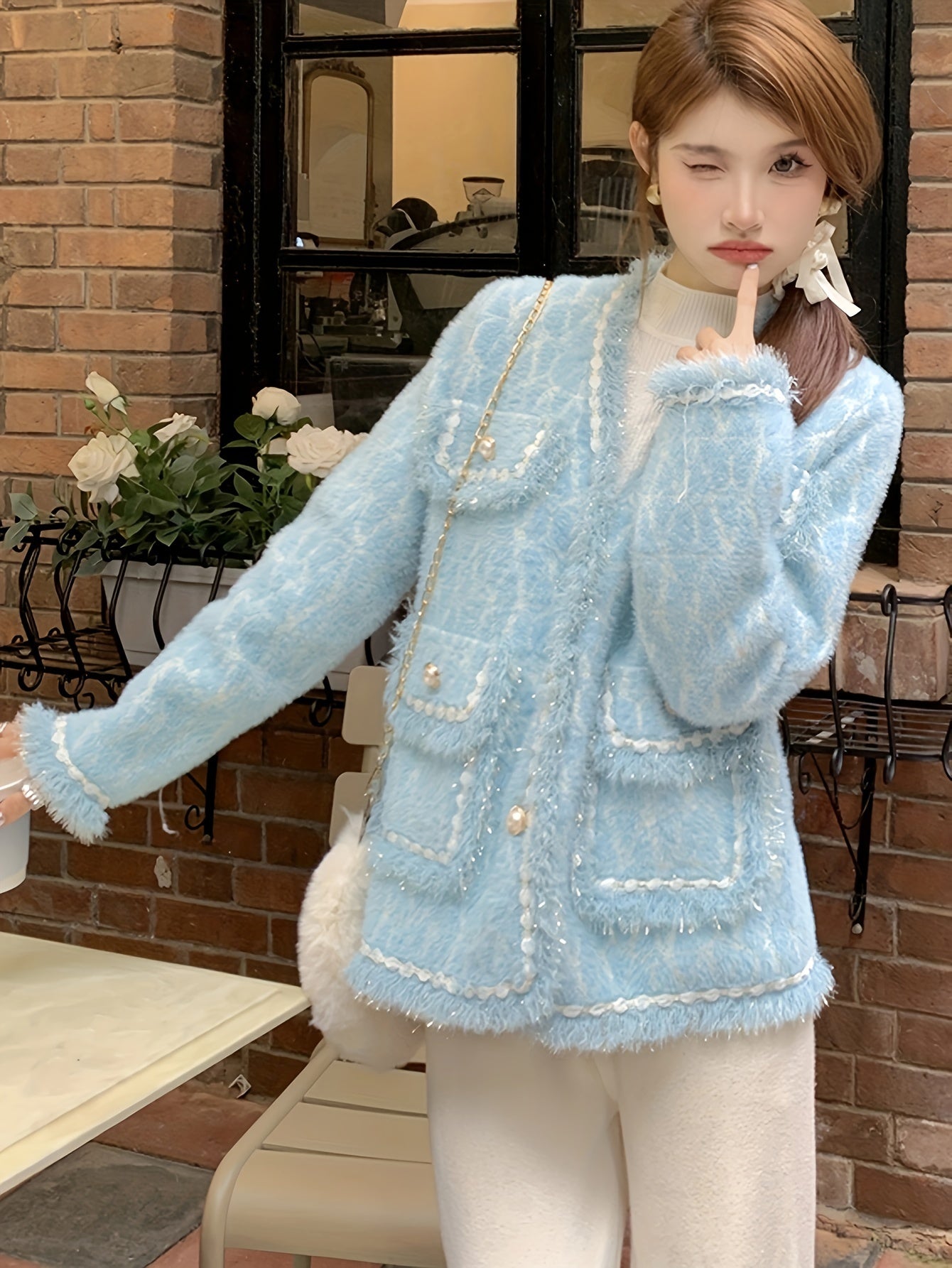Sixsr Elegant Button Front Cardigan, Long Sleeve Contrast Trim Jacket For Fall & Winter, Women's Clothing