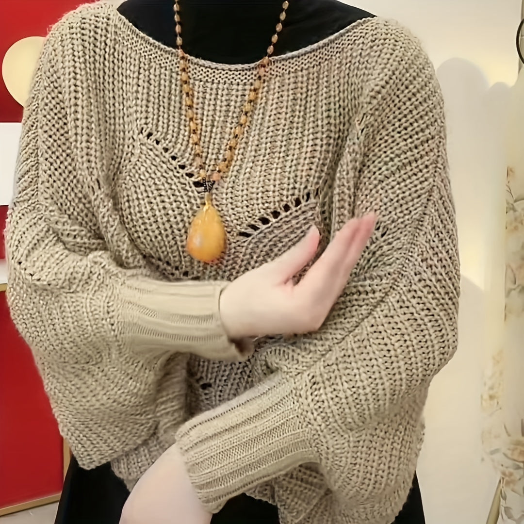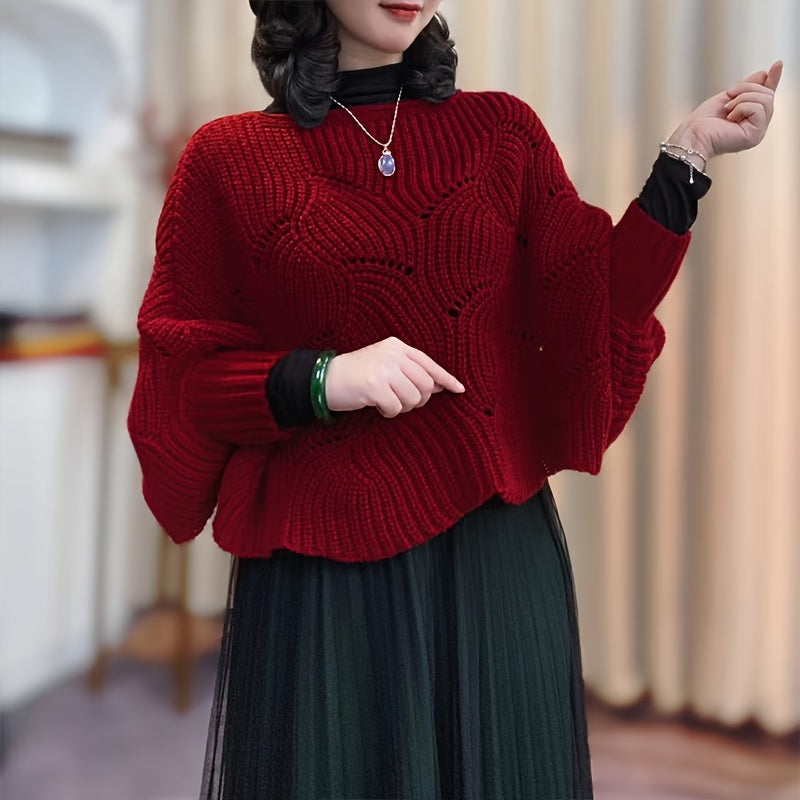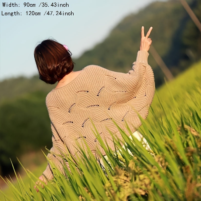 Sixsr Elegant Hollow Out Knitted Shawl Stylish Solid Color Pullover Coat Autumn Winter Warm Versatile Bat Sleeves Cloak