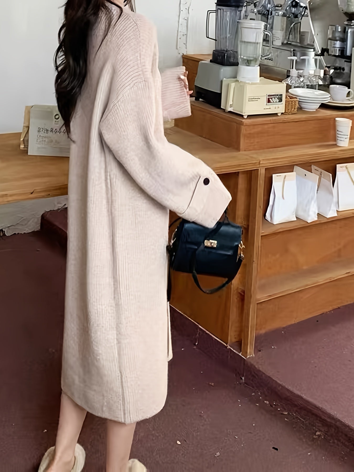 Sixsr Elegant Open Front Solid Cardigan, Long Sleeve Midi Length Cardigan For Fall & Winter, Women's Clothing