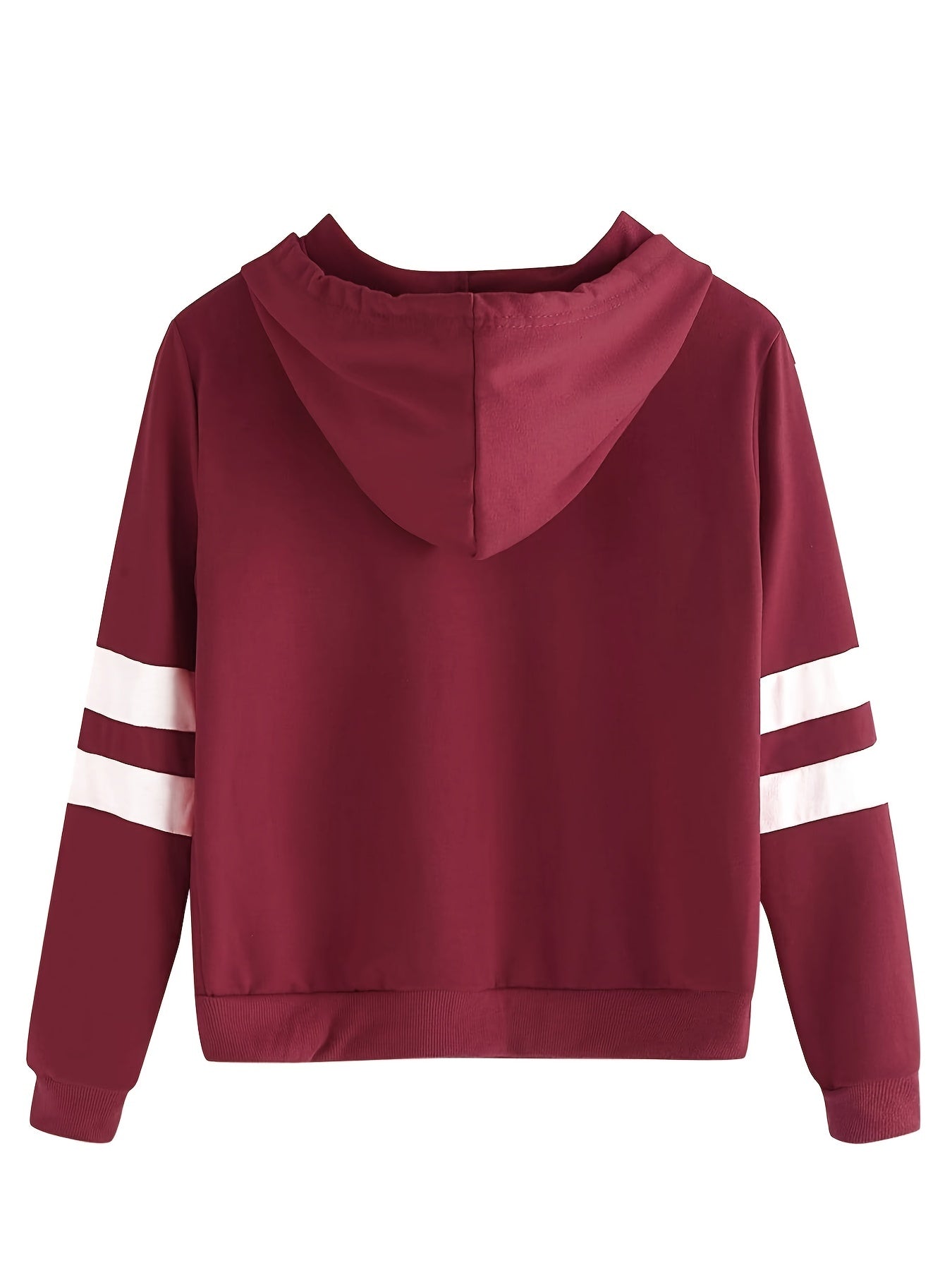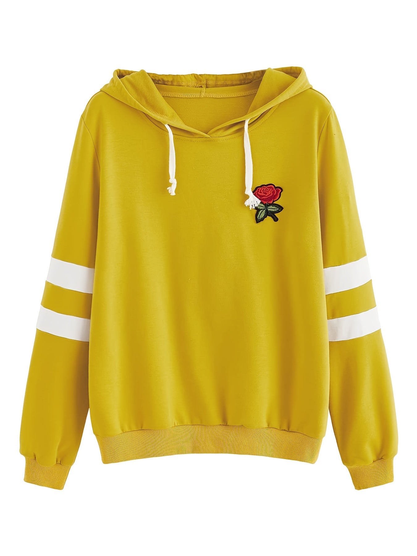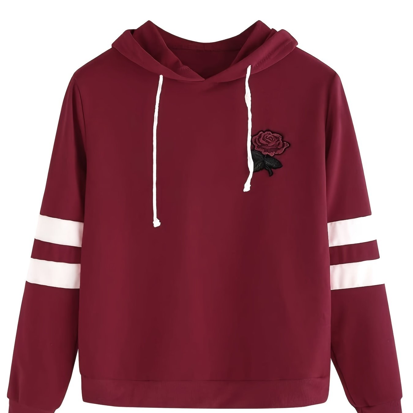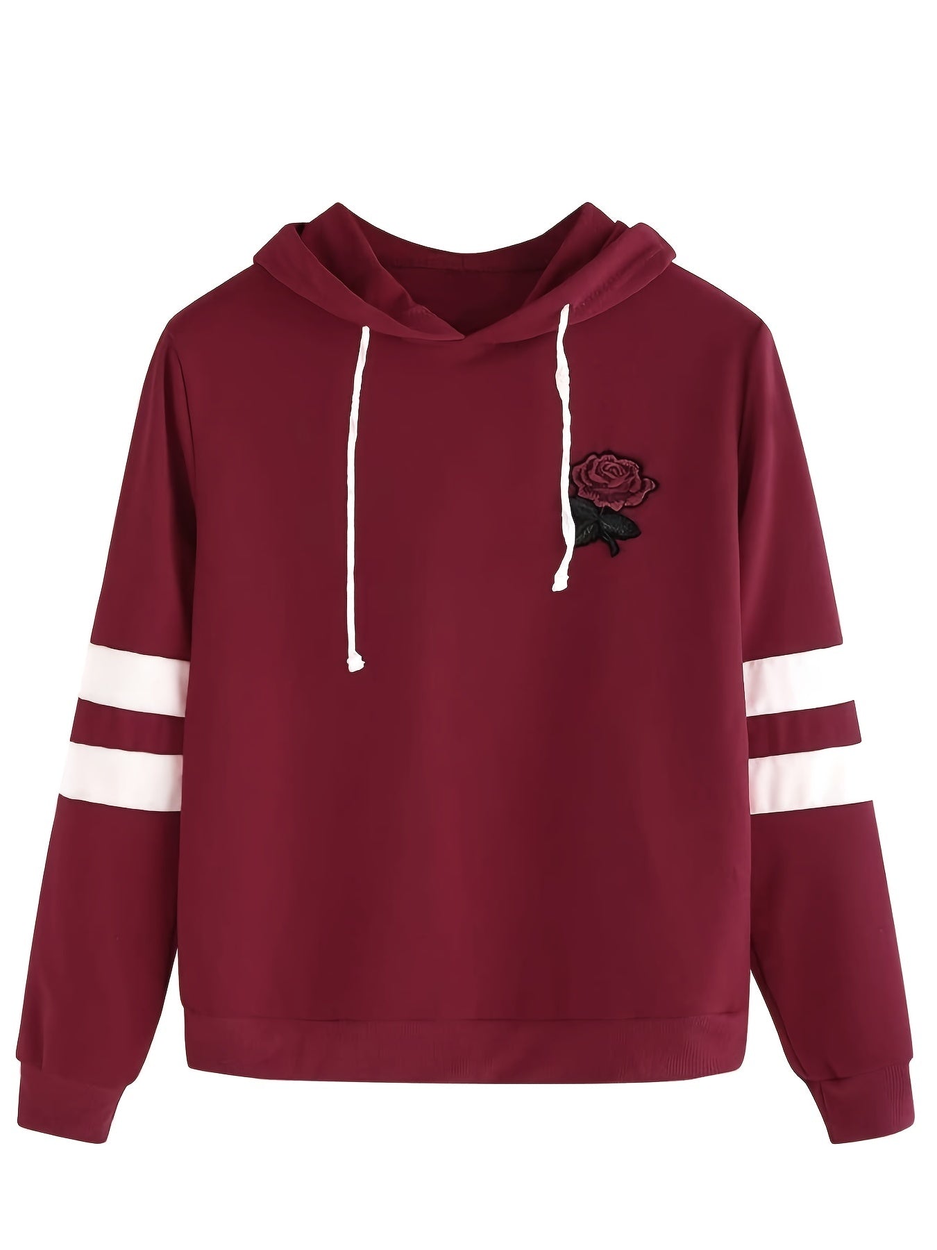 Sixsr Embroidered Drawstring Loose Hoodie, Casual Hooded Fashion Long Sleeve Sweatshirt, Women's Clothing