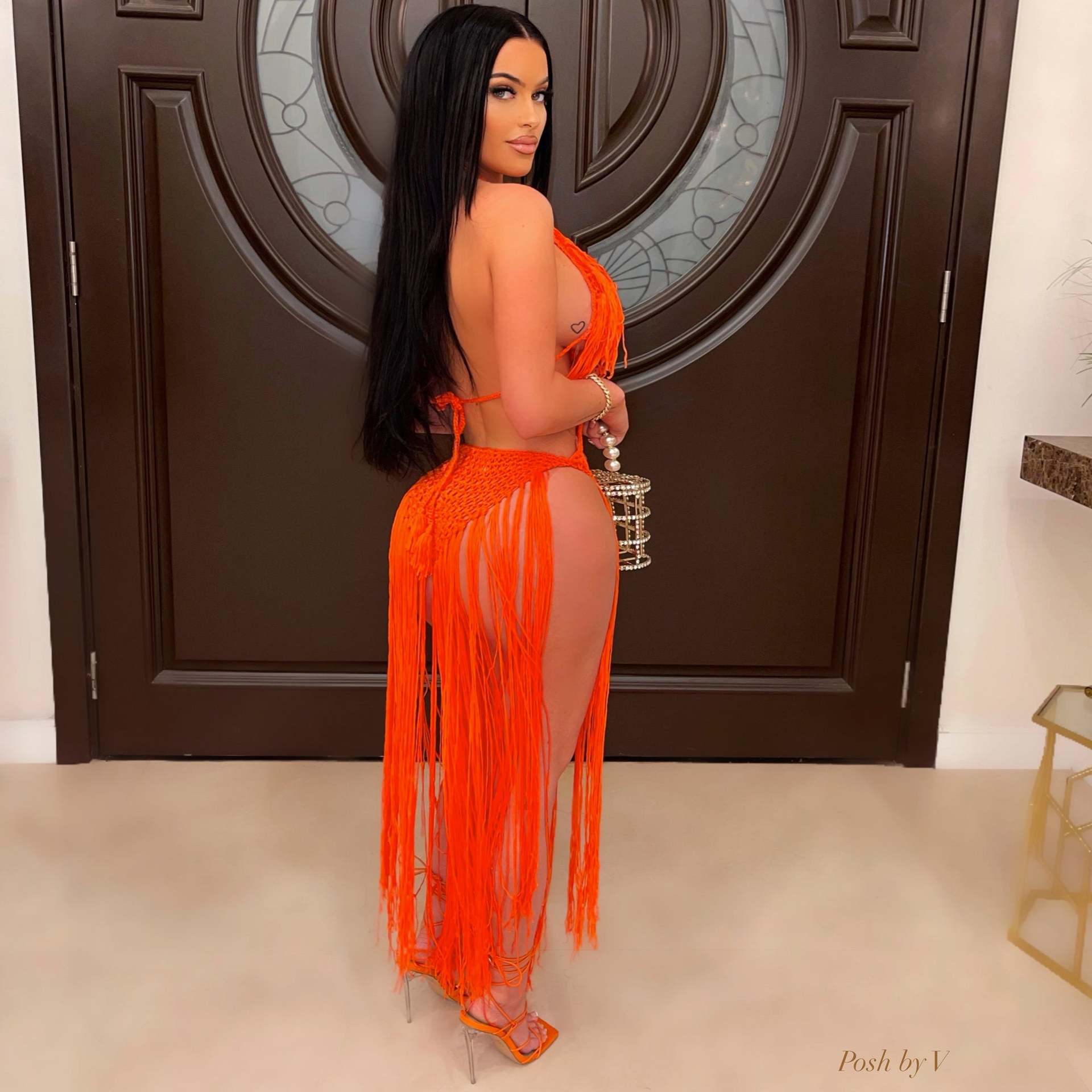 sixsr Fashion Trends Knit Rib Tassel Bodysuit Rompers Sexy Fishnet Halter Lace Up V Neck See Through Jumpsuit Women Summer Beach Wear One Piece Dress