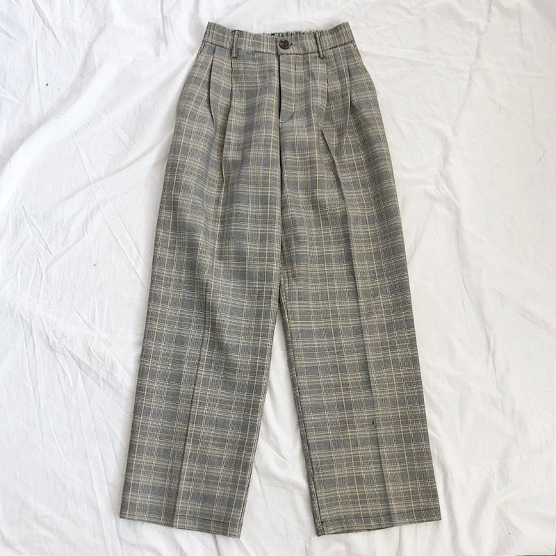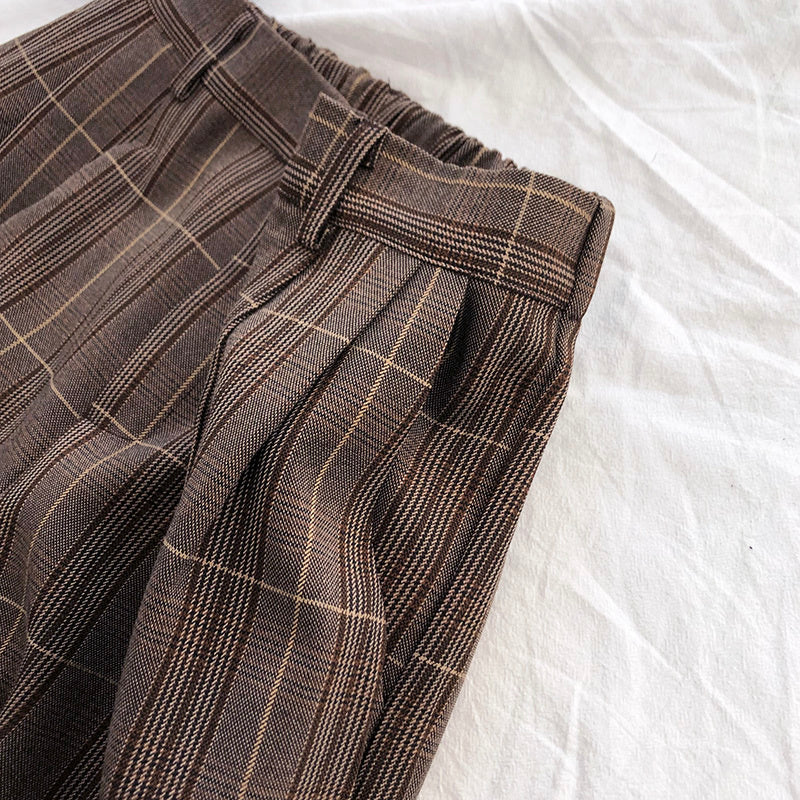sixsr Fashion Trends Spring Women Pants Plaid High Waist Dropping Feeling High Waist Wide Leg Long Suit Pants