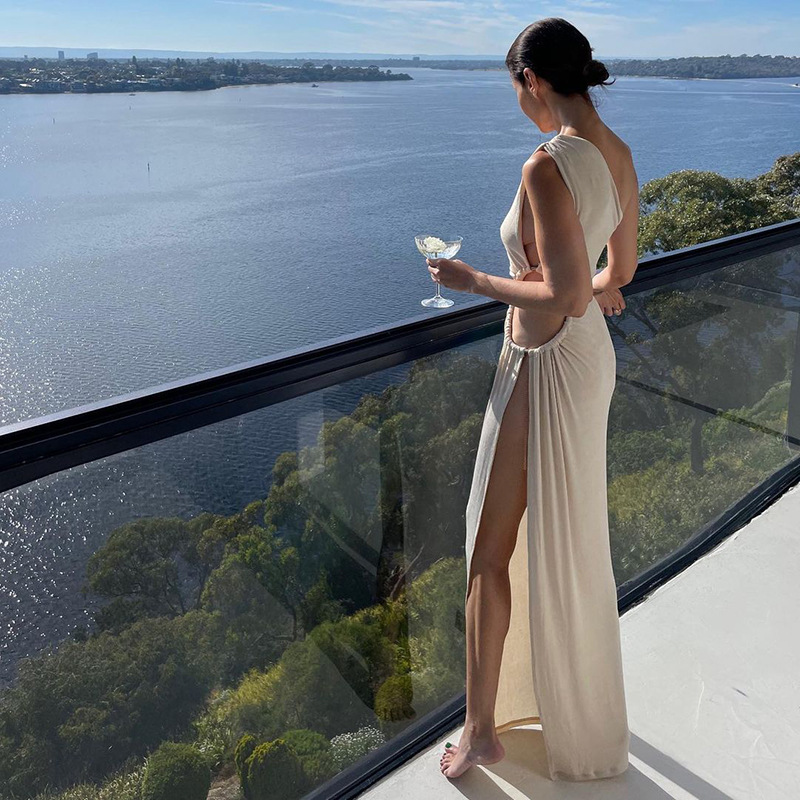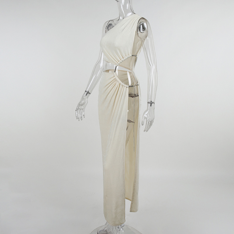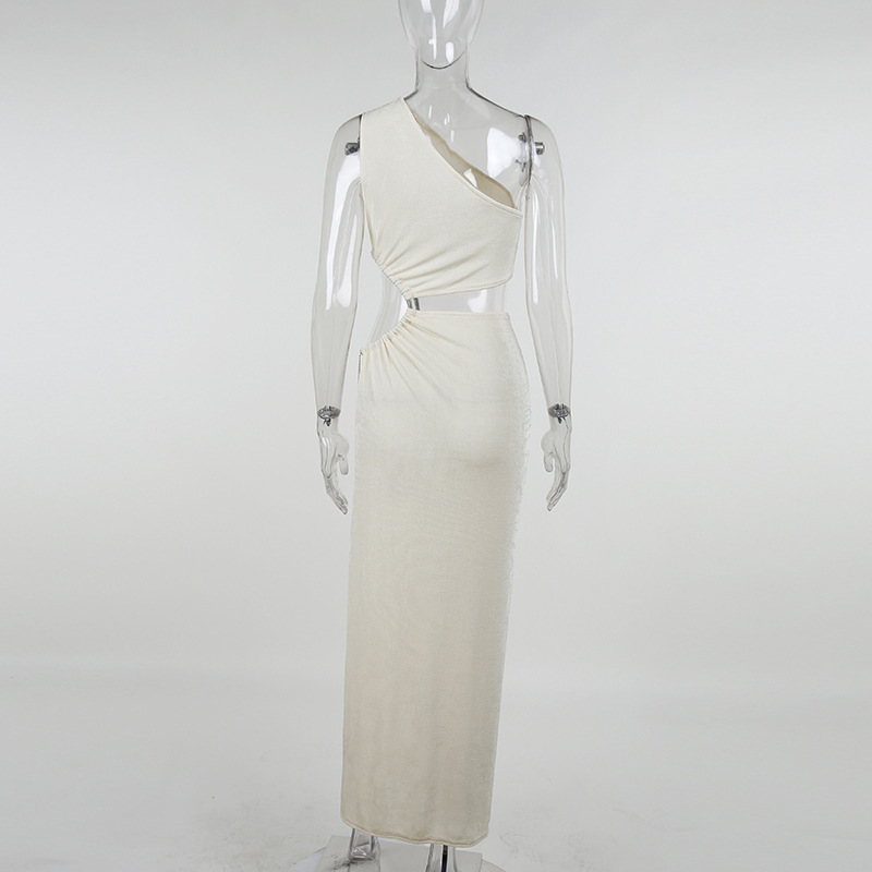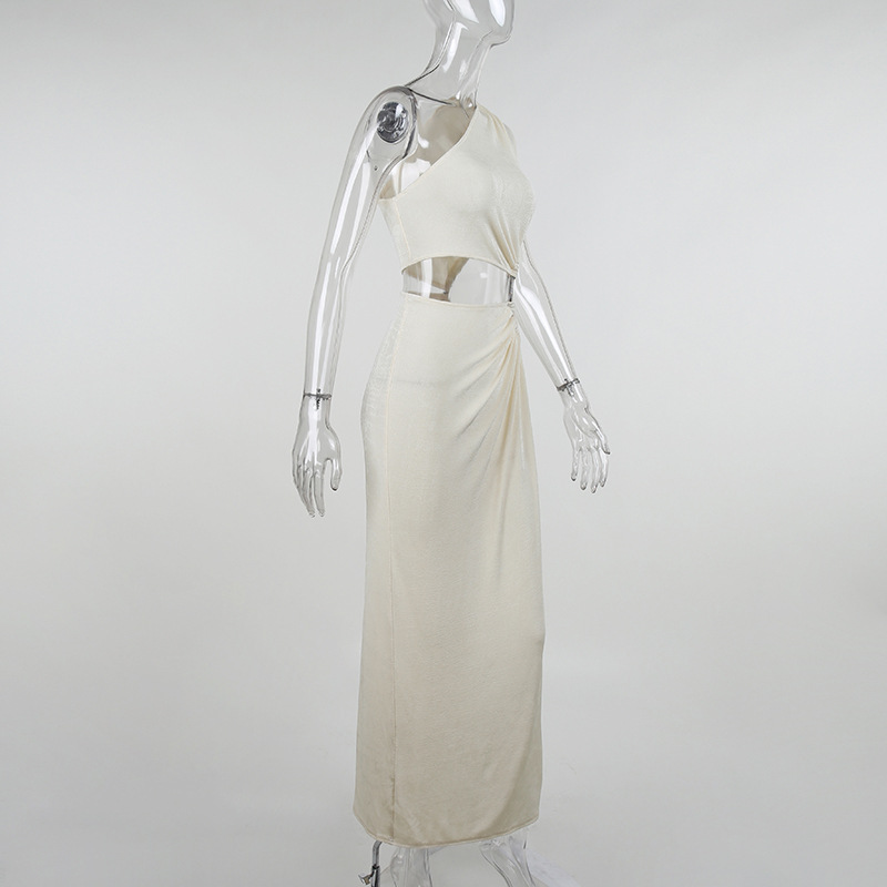 Sixsr Fashion White Elegant Maxi Dress Summer Women Sexy One Shoulder Split Long Dress Female Fashion Cut Out Club Party Dress Beachwear