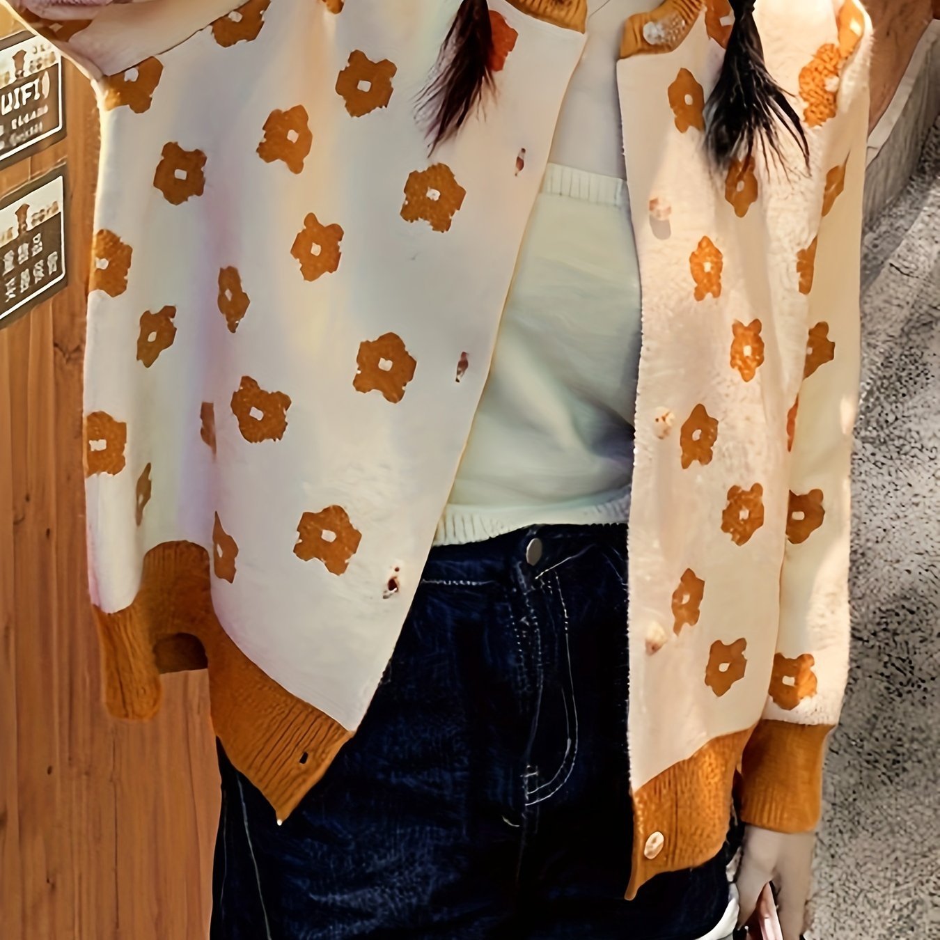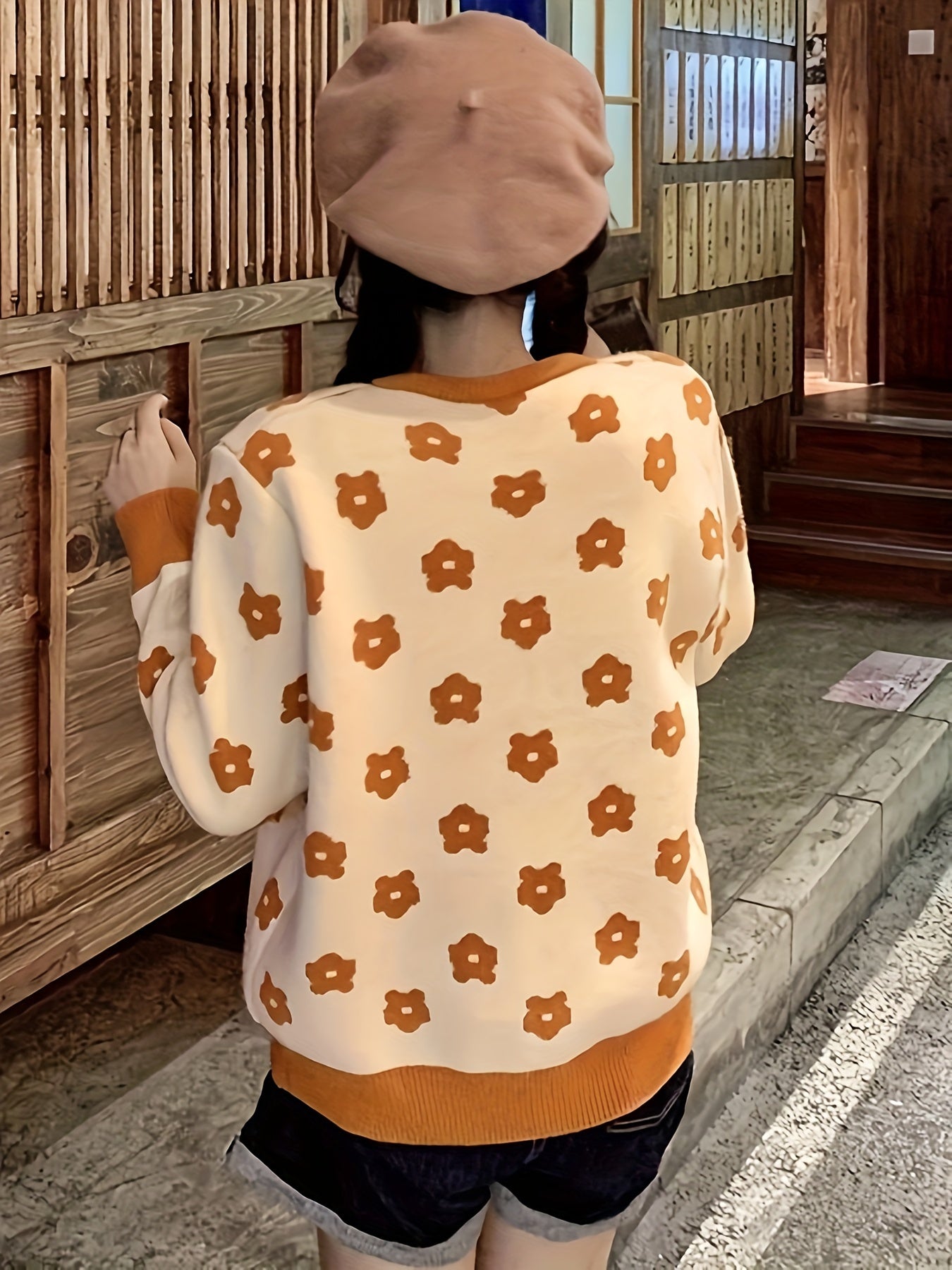 Sixsr Floral Pattern Button Front Cardigan, Vintage Long Sleeve Drop Shoulder Outwear, Women's Clothing