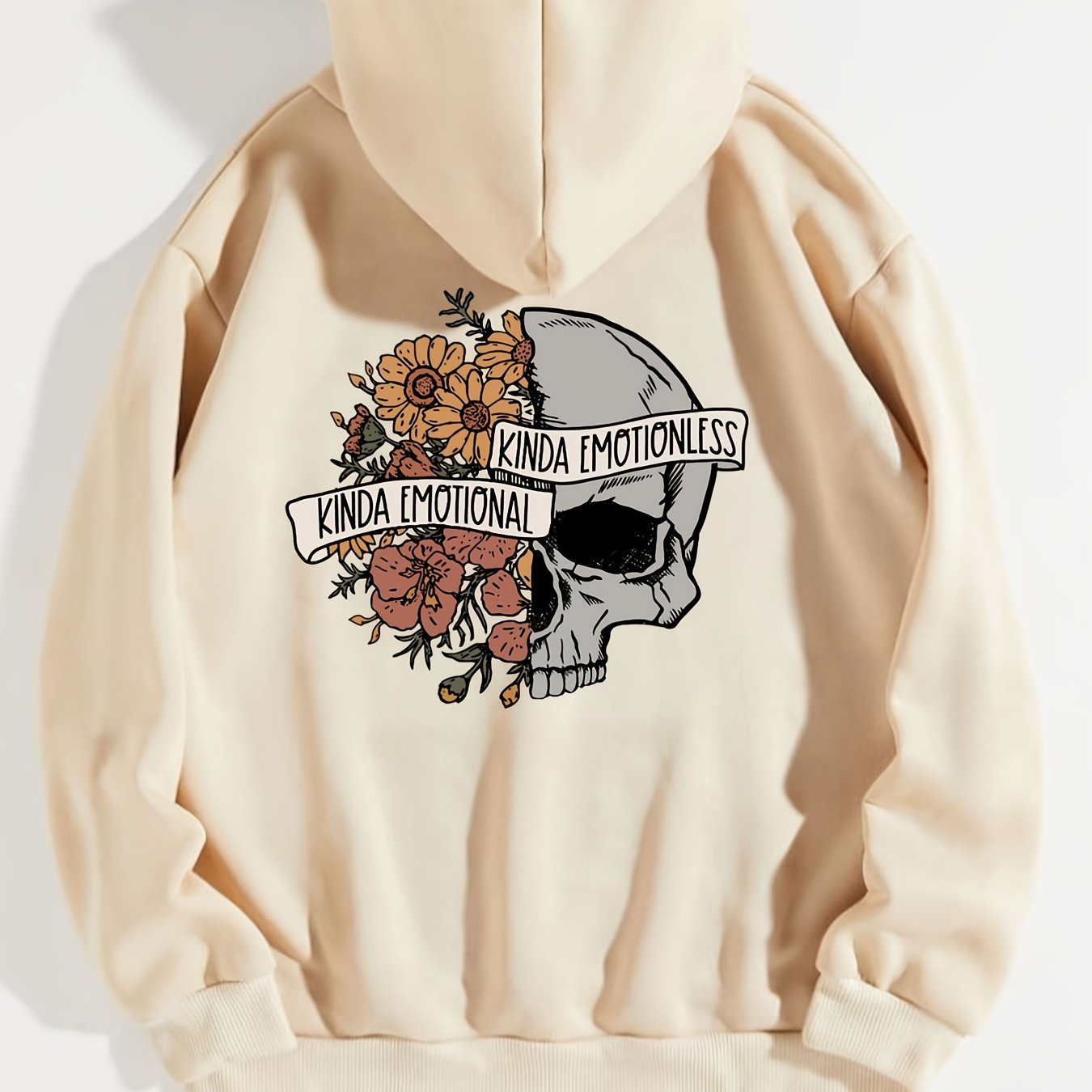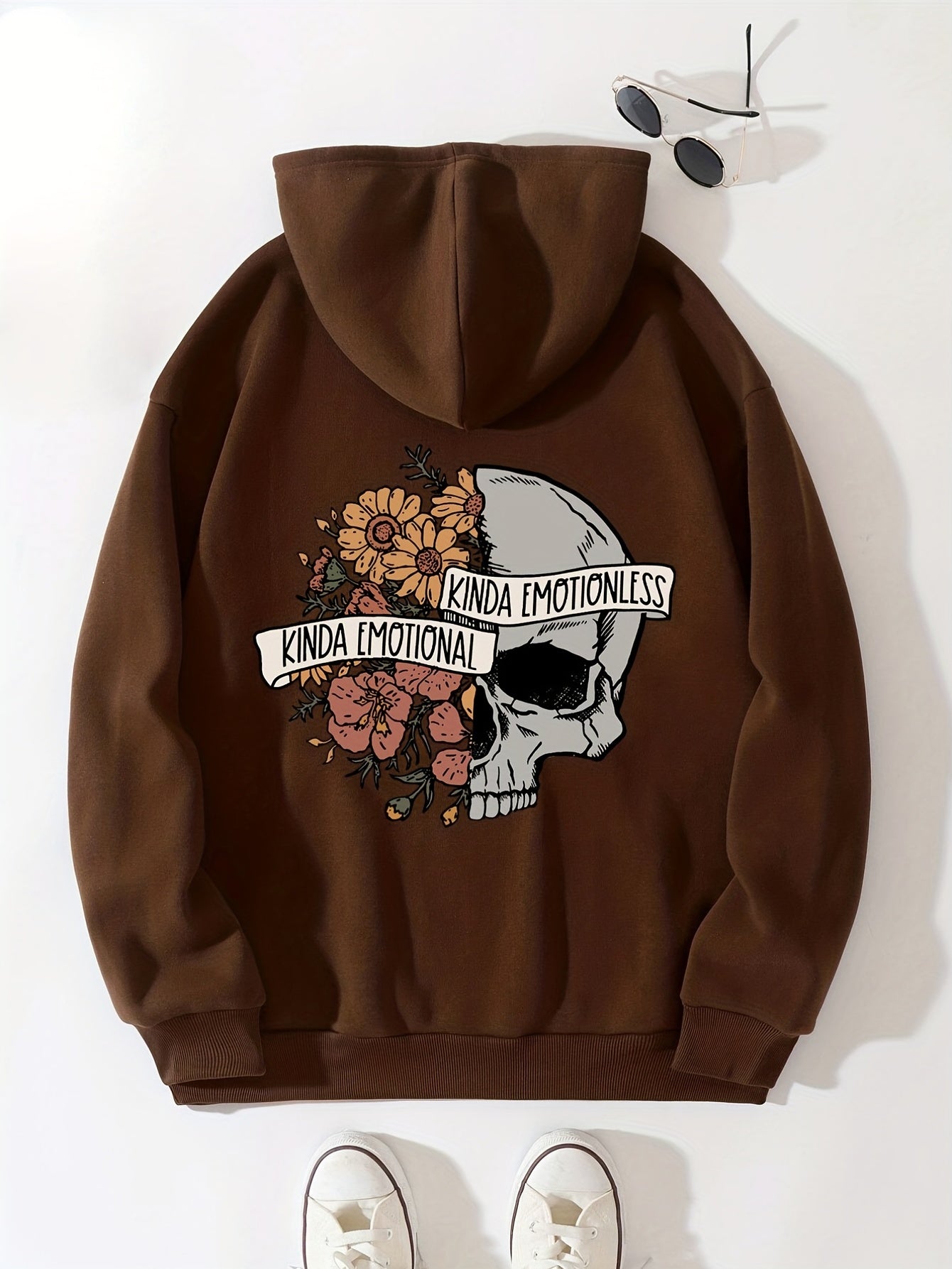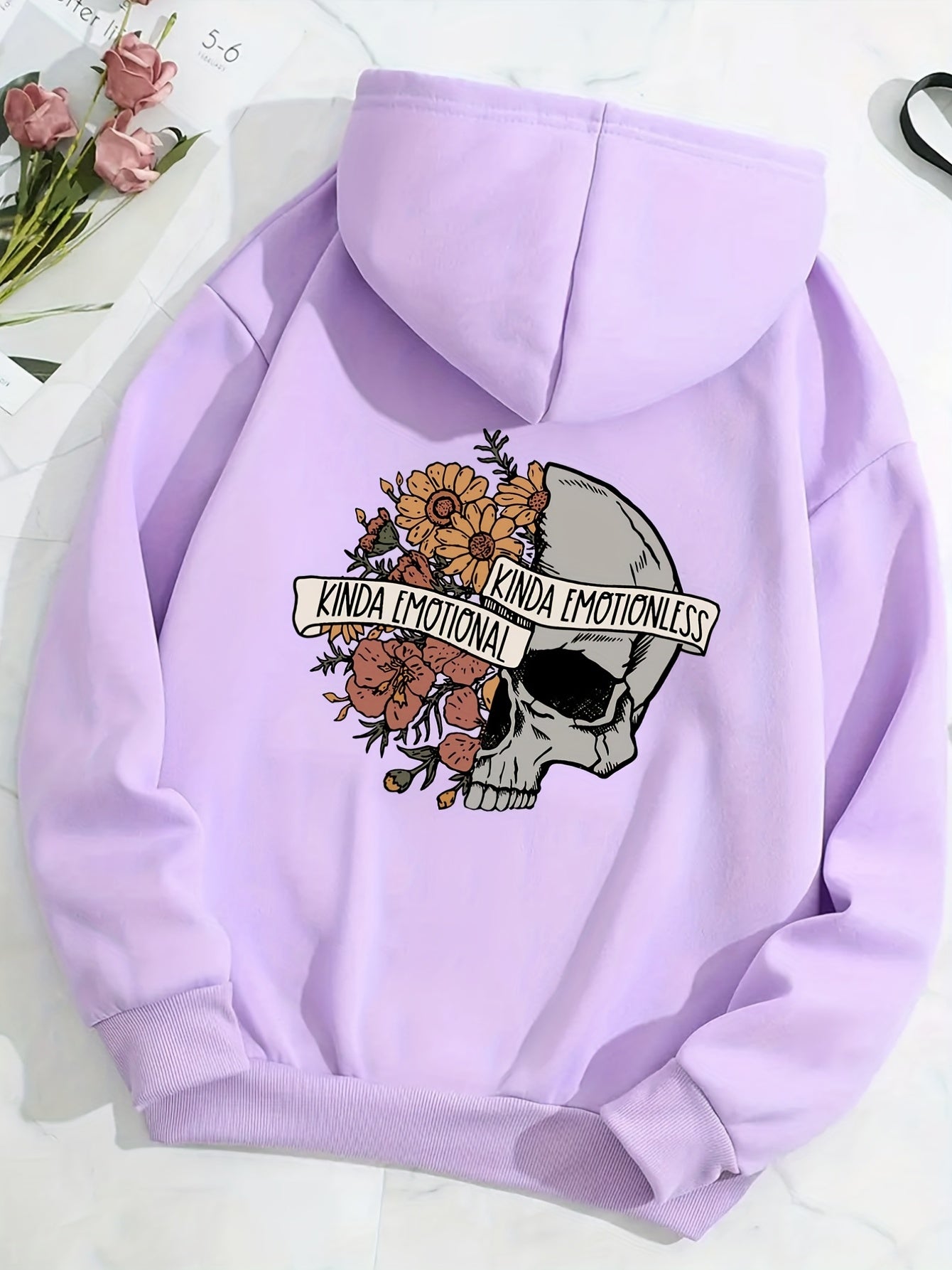 Sixsr Floral & Skull Print Hoodies, Drawstring Kangaroo Pocket Casual Sweatshirt For Winter & Fall, Women's Clothing