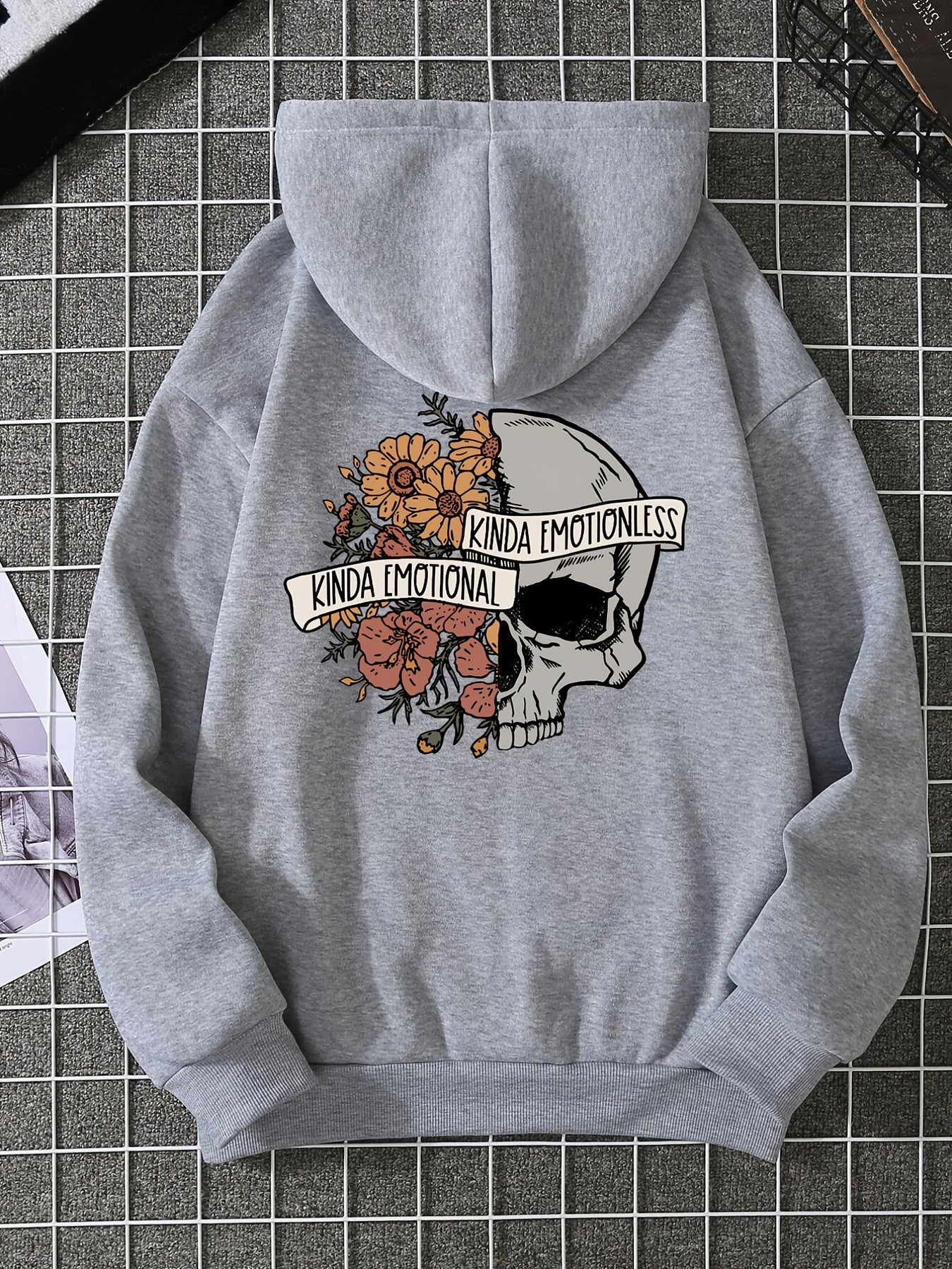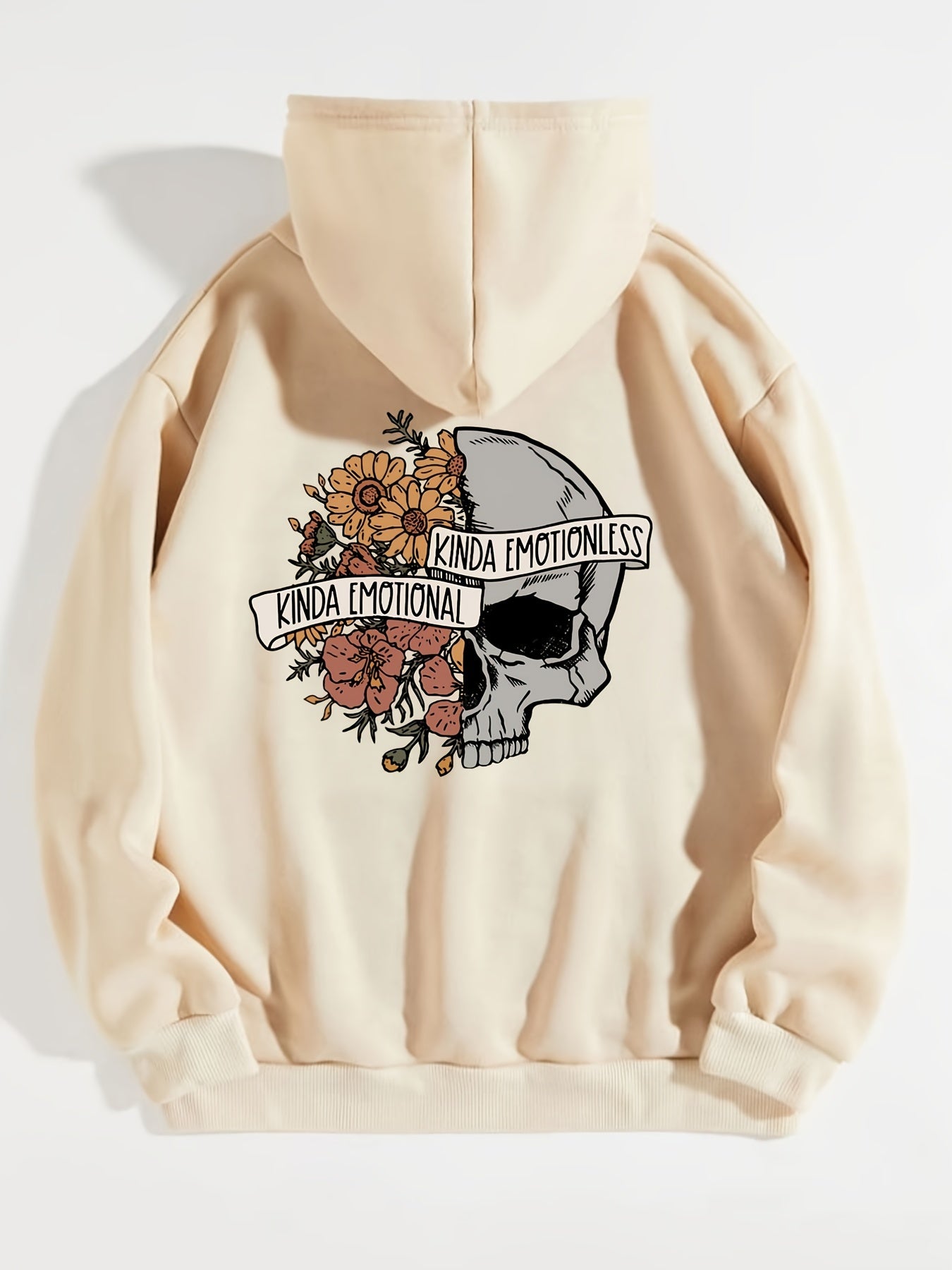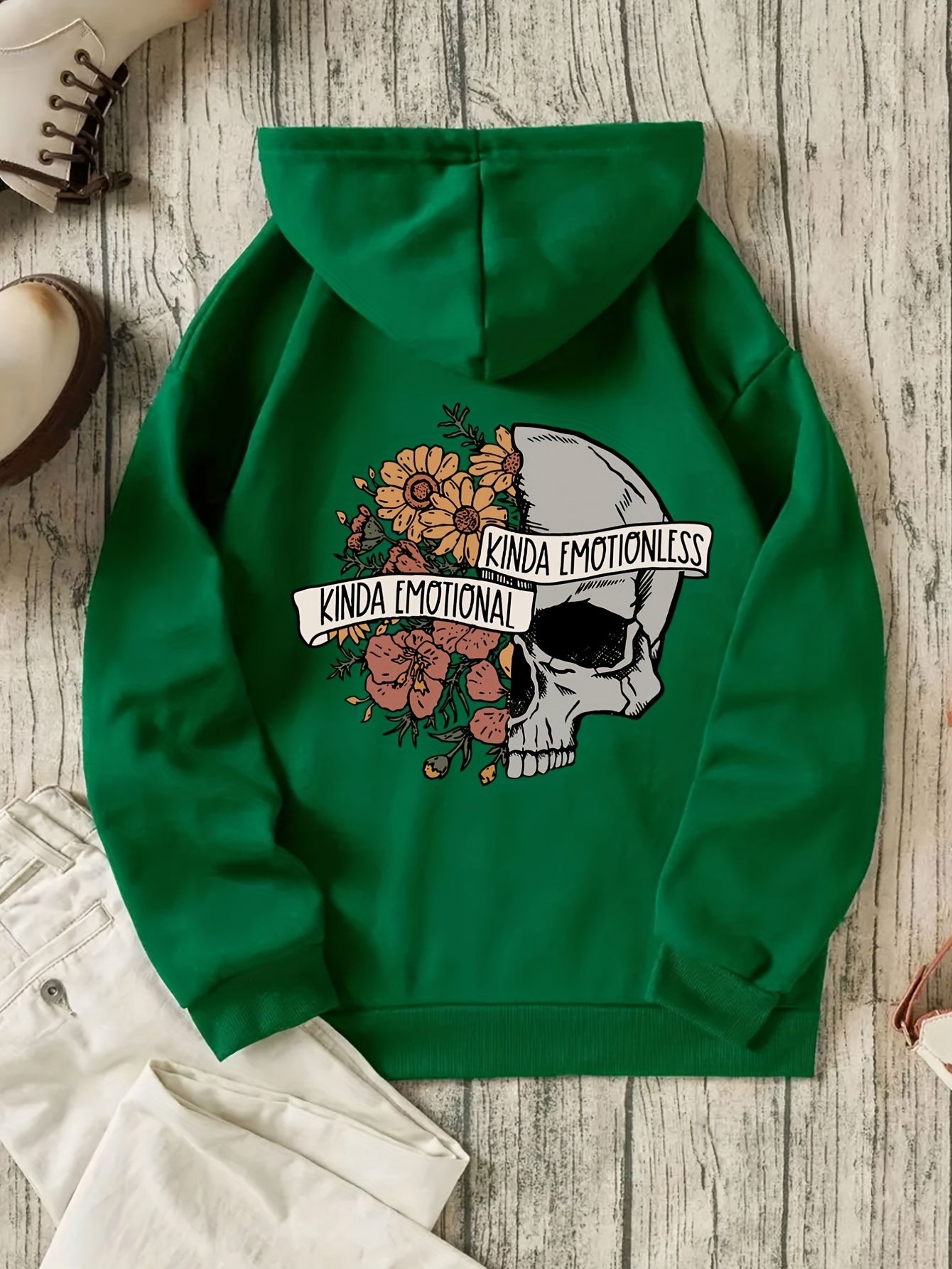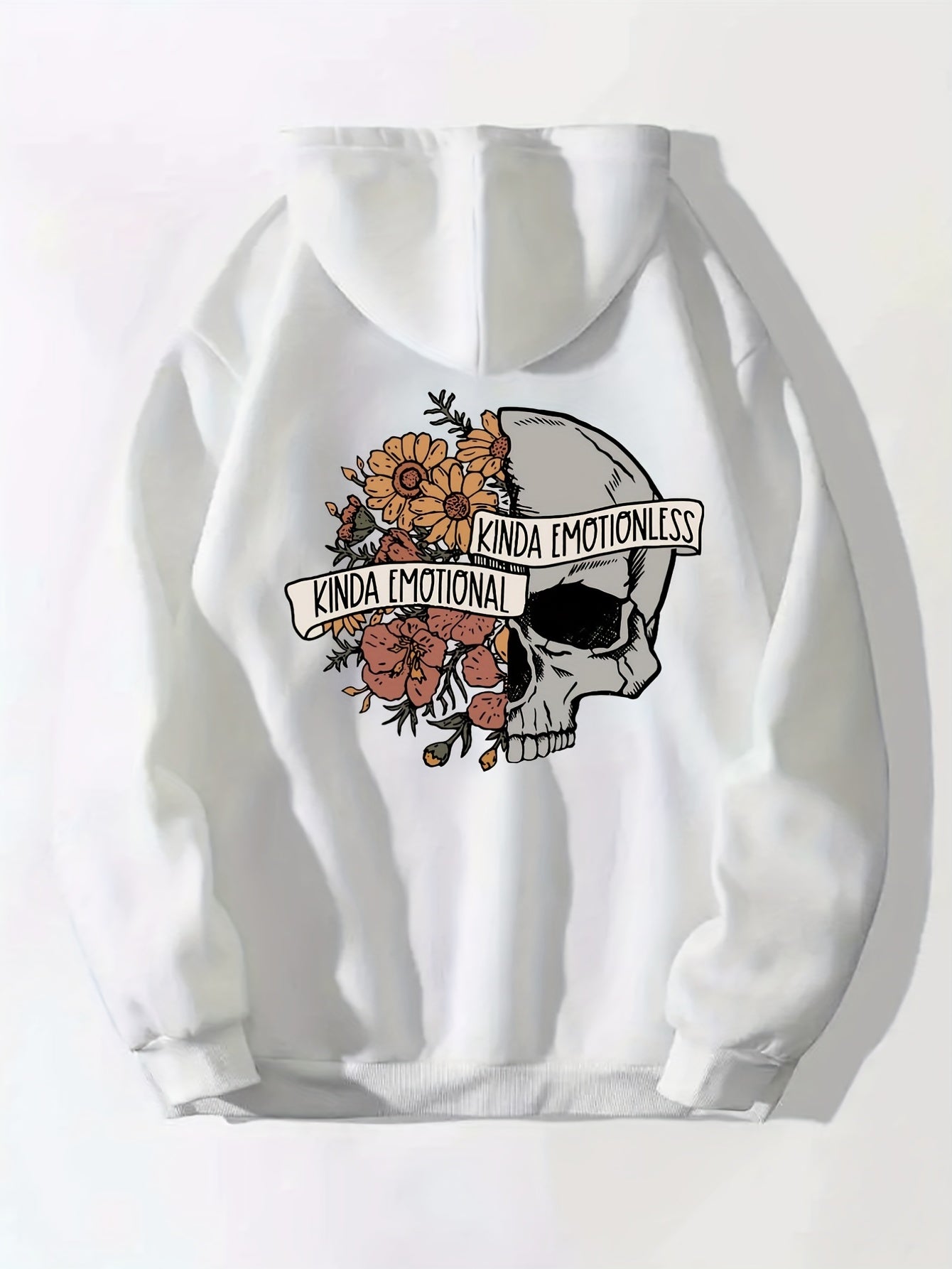 Sixsr Floral & Skull Print Hoodies, Drawstring Kangaroo Pocket Casual Sweatshirt For Winter & Fall, Women's Clothing