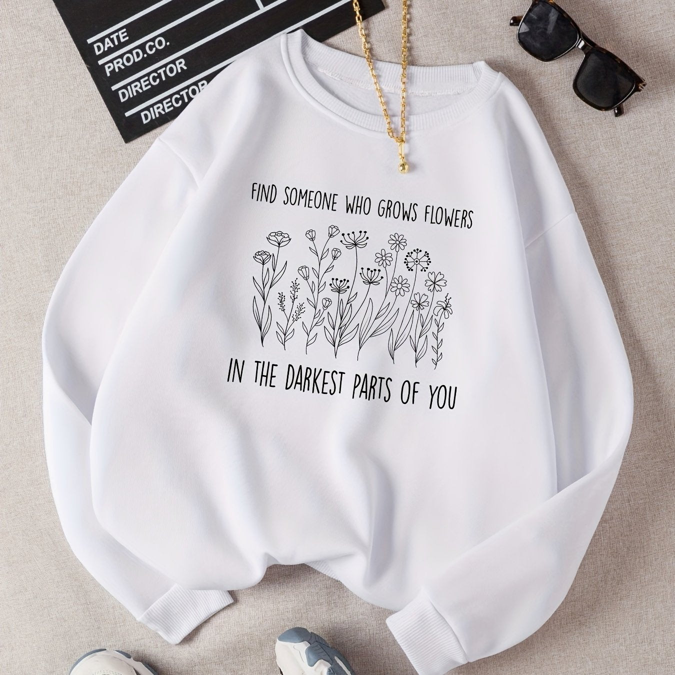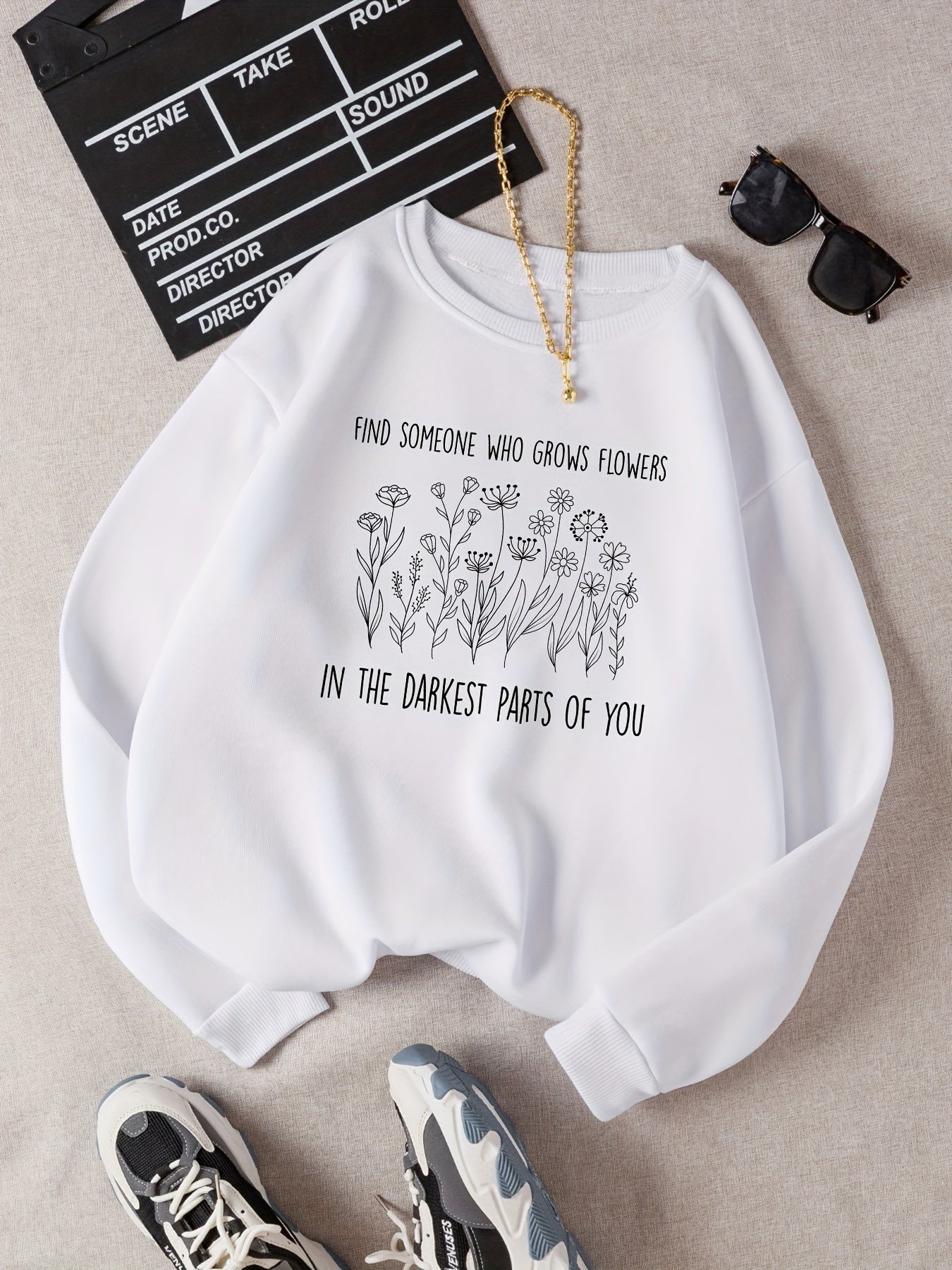 Sixsr Flower Graphic Print Sweatshirt, Long Sleeve Crew Neck Pullover Sweatshirt, Casual Tops For Fall & Winter, Women's Clothing
