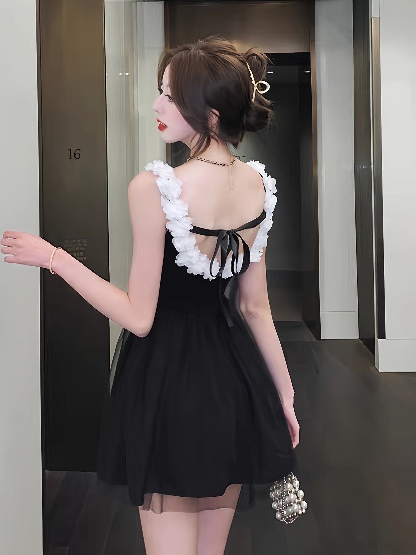 Sixsr Frill Off The Shoulder Backless Mesh One-piece Swimsuit, Tie Back Elegant Party Princess Tulle Swim Dress Bathing Suits, Women's Swimwear & Clothing