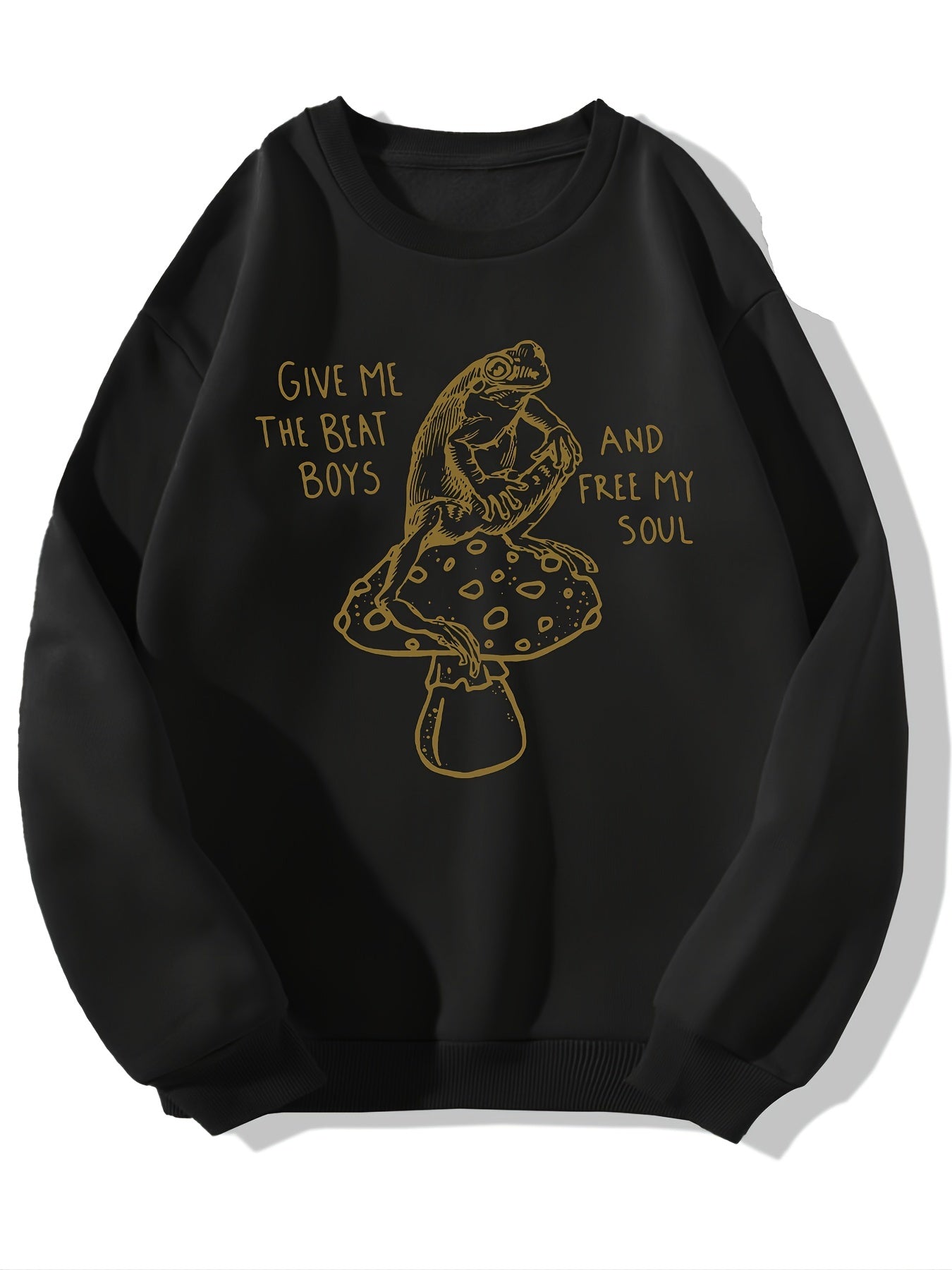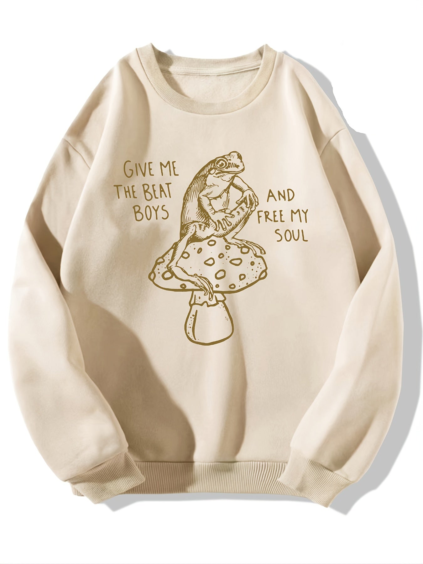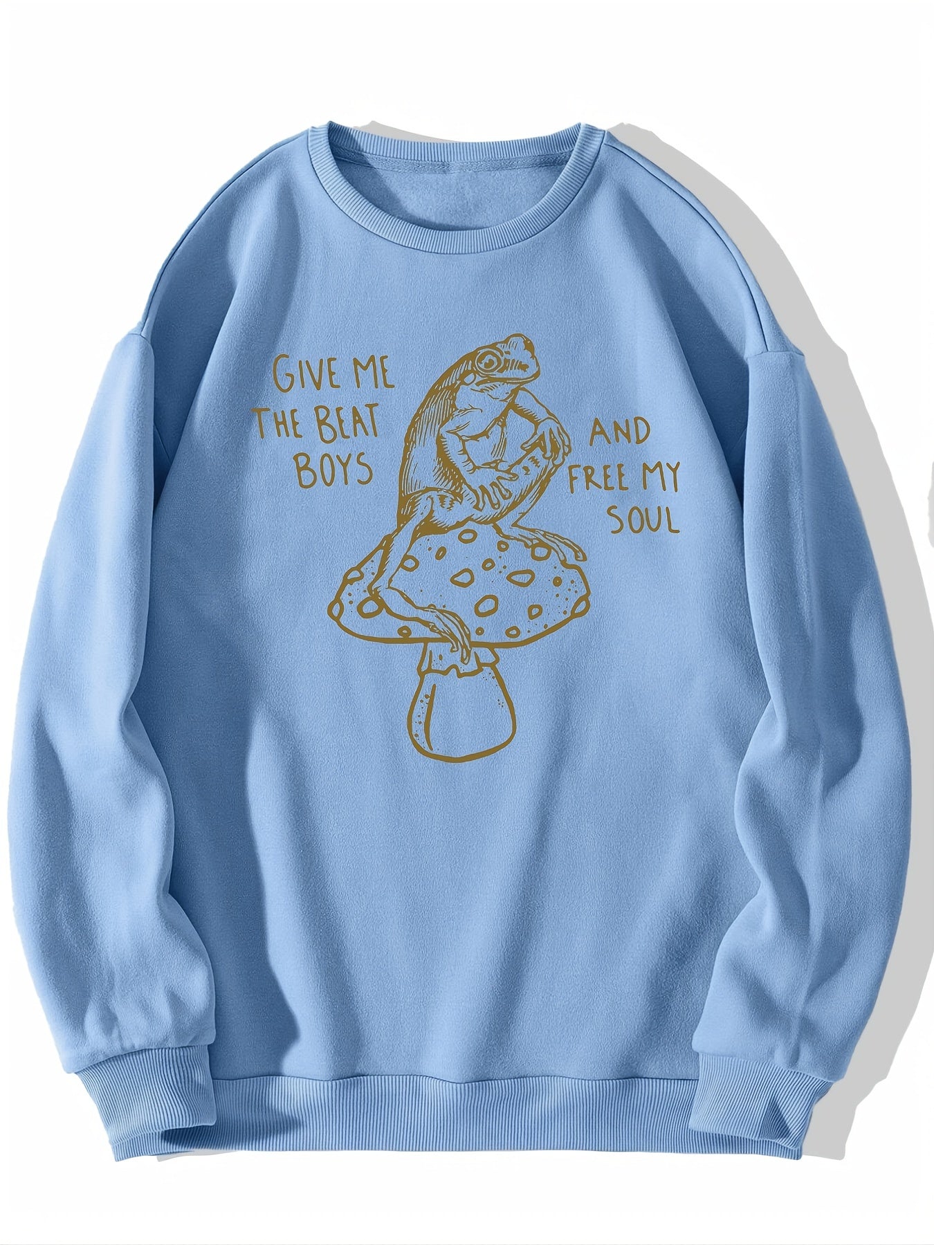 Sixsr Frog & Mushroom Print Graphic Pullover, Long Sleeve Crew Neck Casual Sweatshirt For Spring & Fall, Women's Clothing