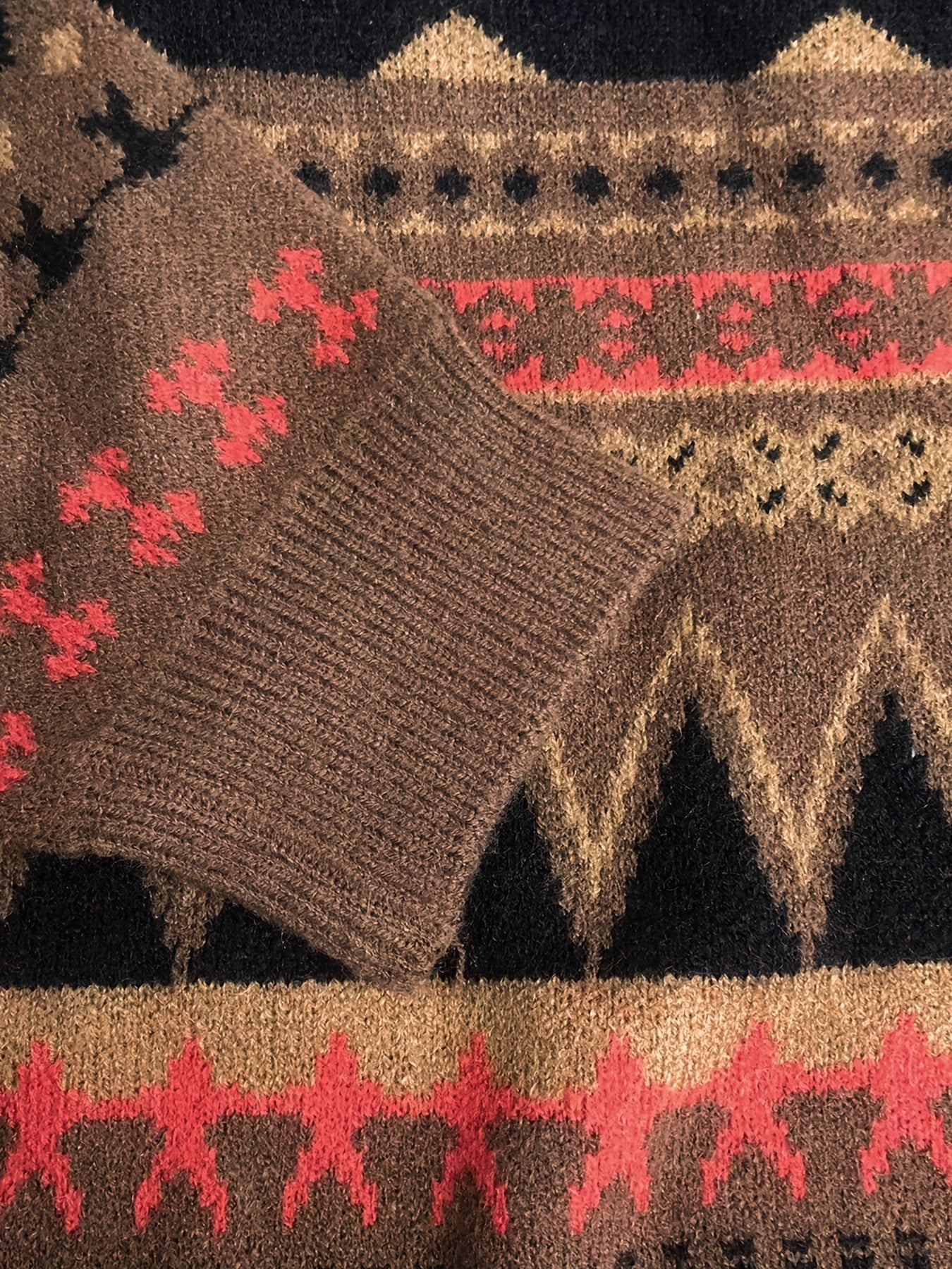 Sixsr Geo Pattern Crew Neck Pullover Sweater, Vintage Long Sleeve Loose Sweater, Women's Clothing