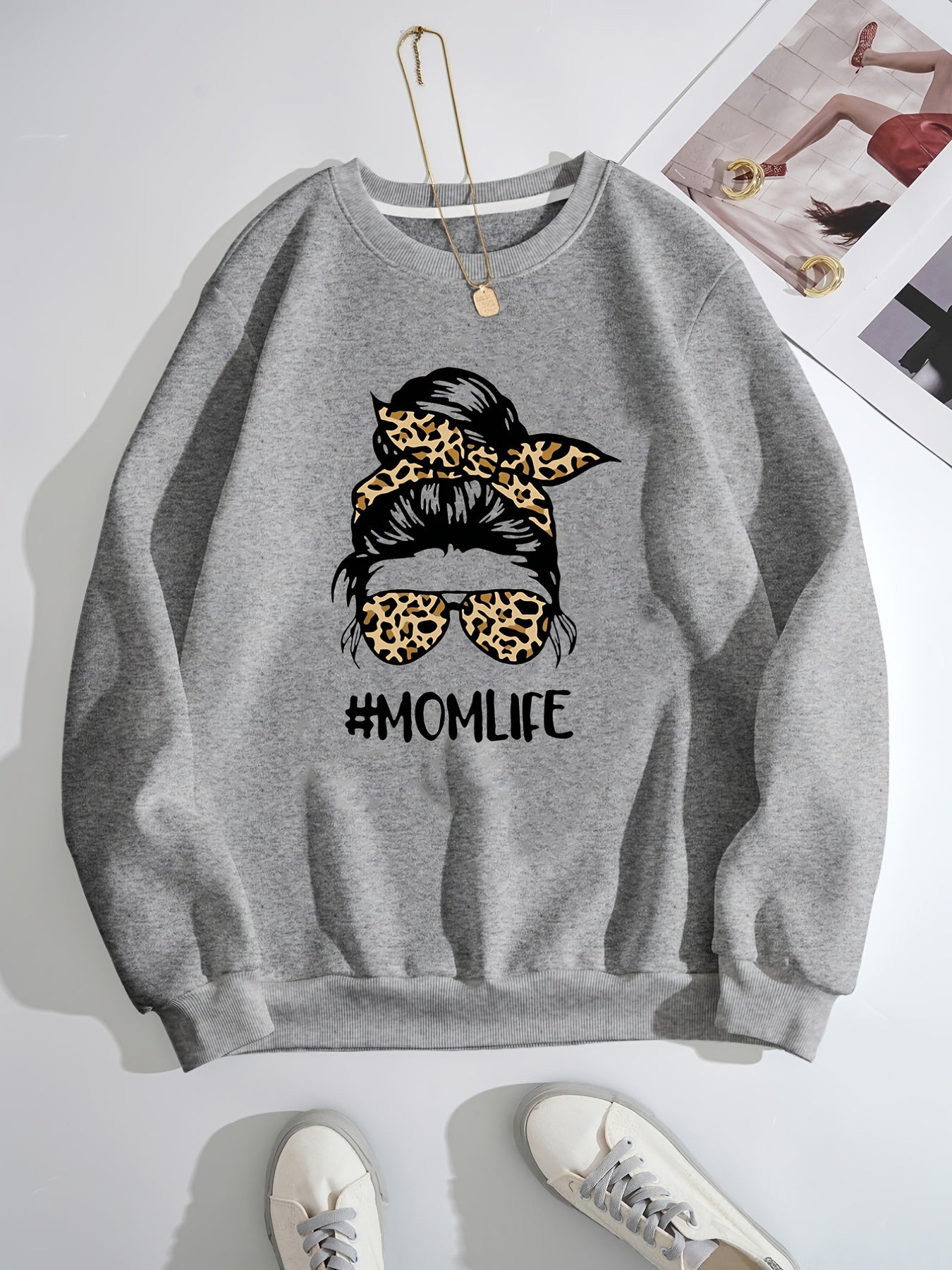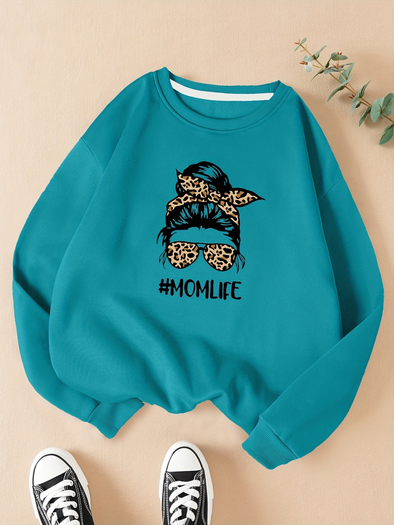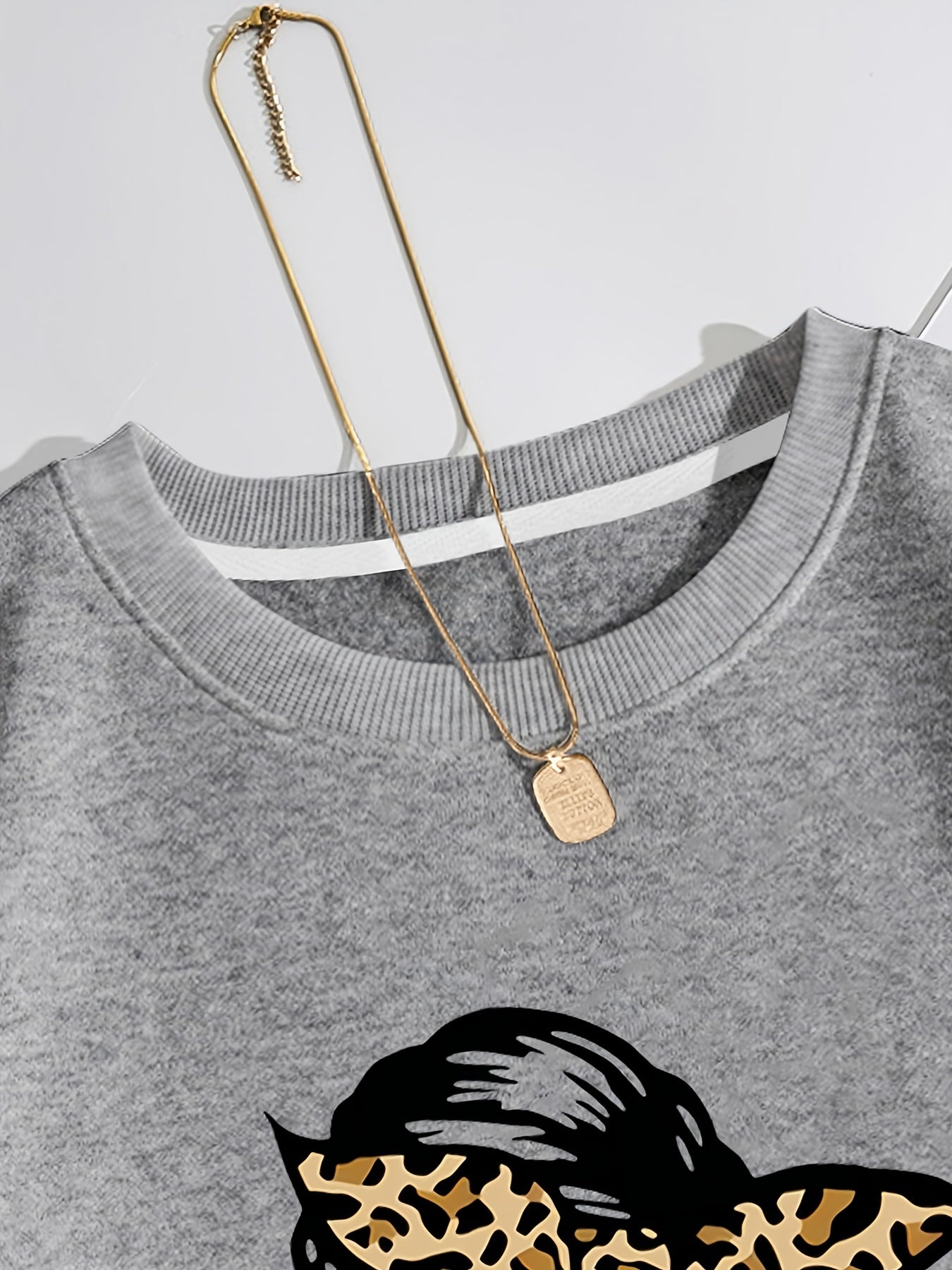Sixsr Girl Graphic Print Solid Pullover, Crew Neck Long Sleeve Casual Every Day Sweatshirt, Women's Clothing
