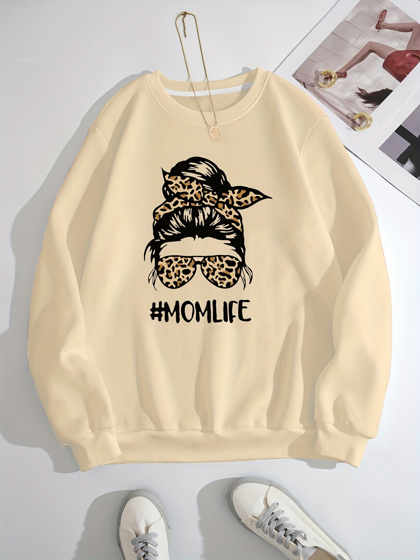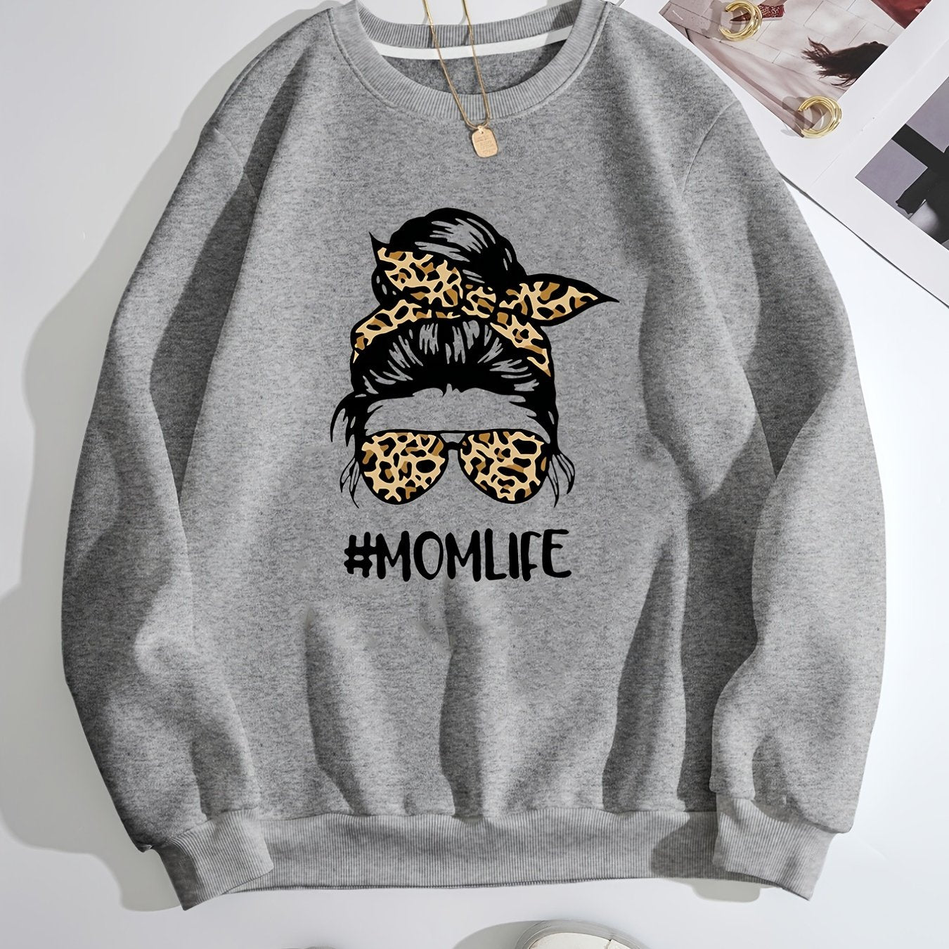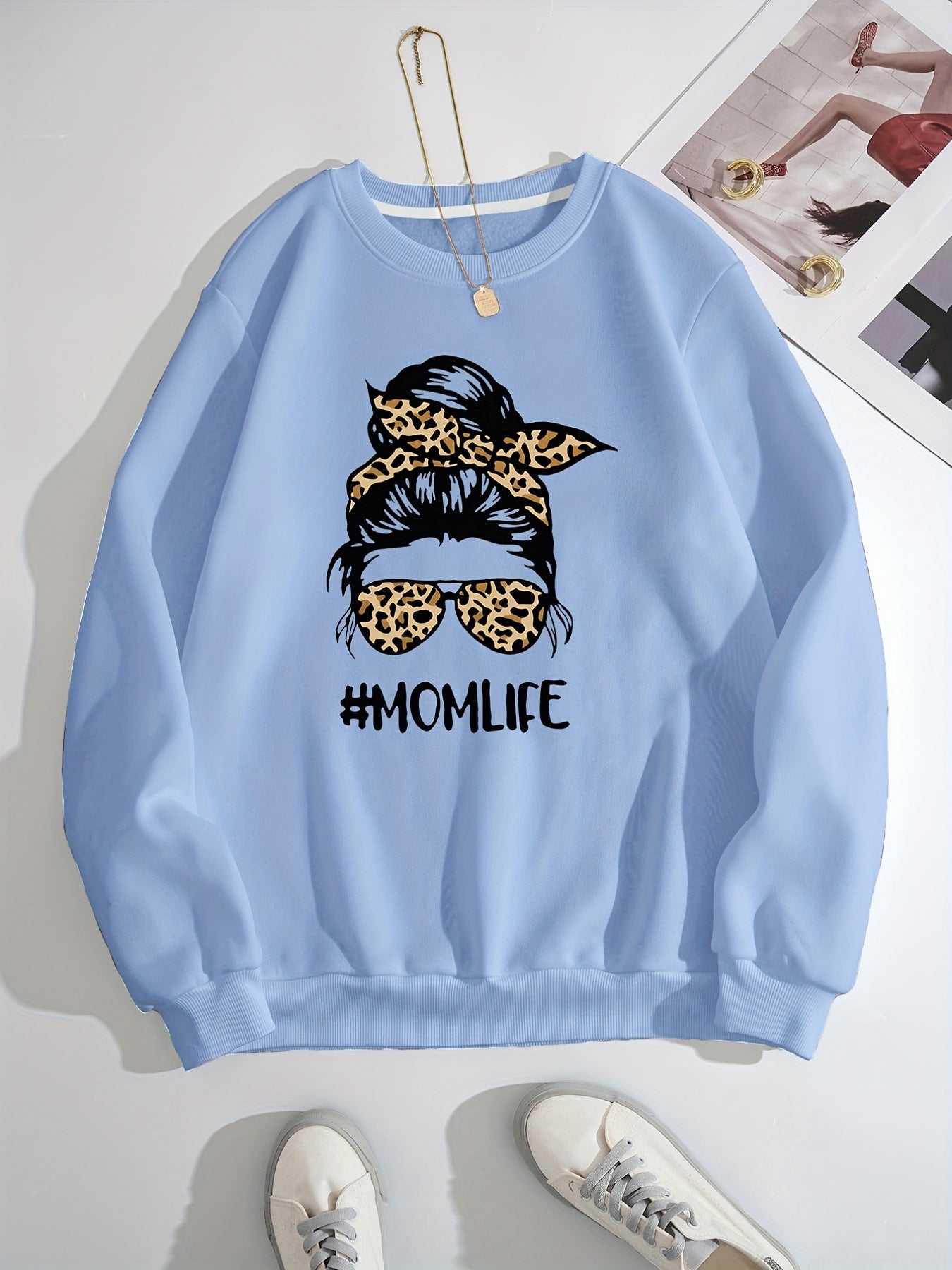 Sixsr Girl Graphic Print Solid Pullover, Crew Neck Long Sleeve Casual Every Day Sweatshirt, Women's Clothing