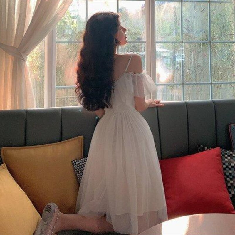 Sixsr Going Out Outfits Mesh Ruffle Slash Neck Off Shoulder Dresses Lace Up Women Summer Vestidos Mujer Korean Fashion White Dress Strap Tide Robe Femme