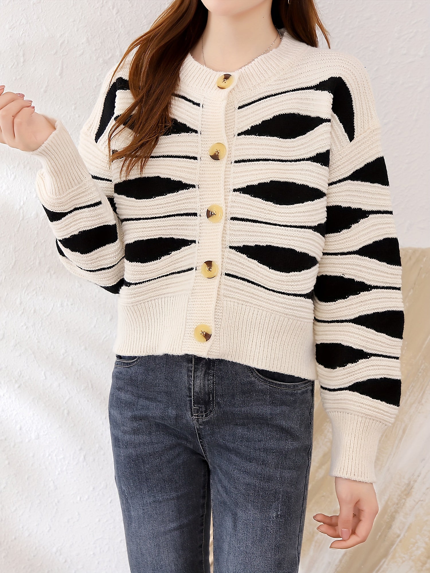 Sixsr Graphic Pattern Button Down Knit Cardigan, Elegant Long Sleeve Sweater Outwear, Women's Clothing