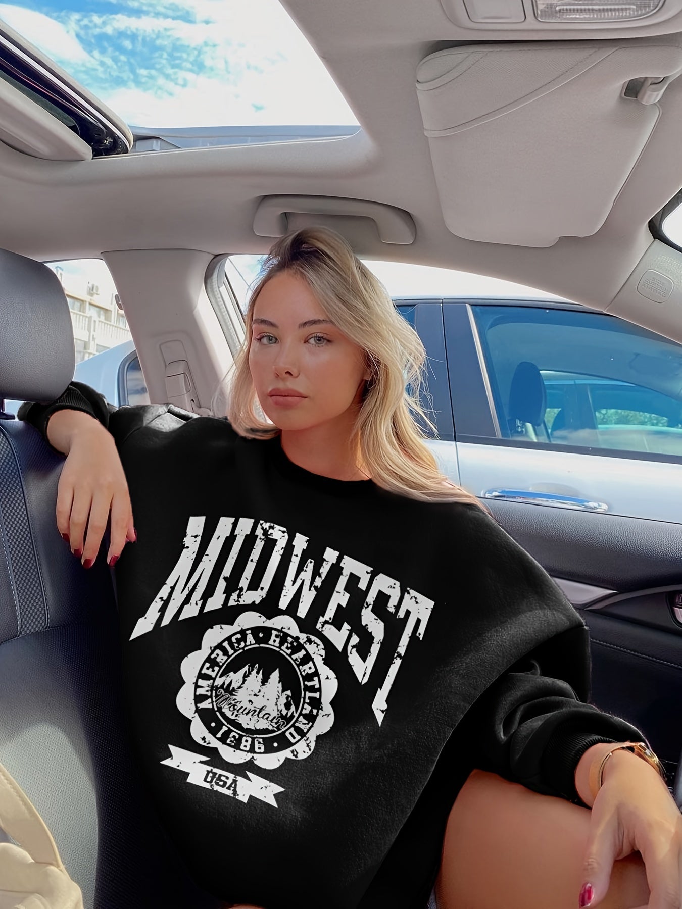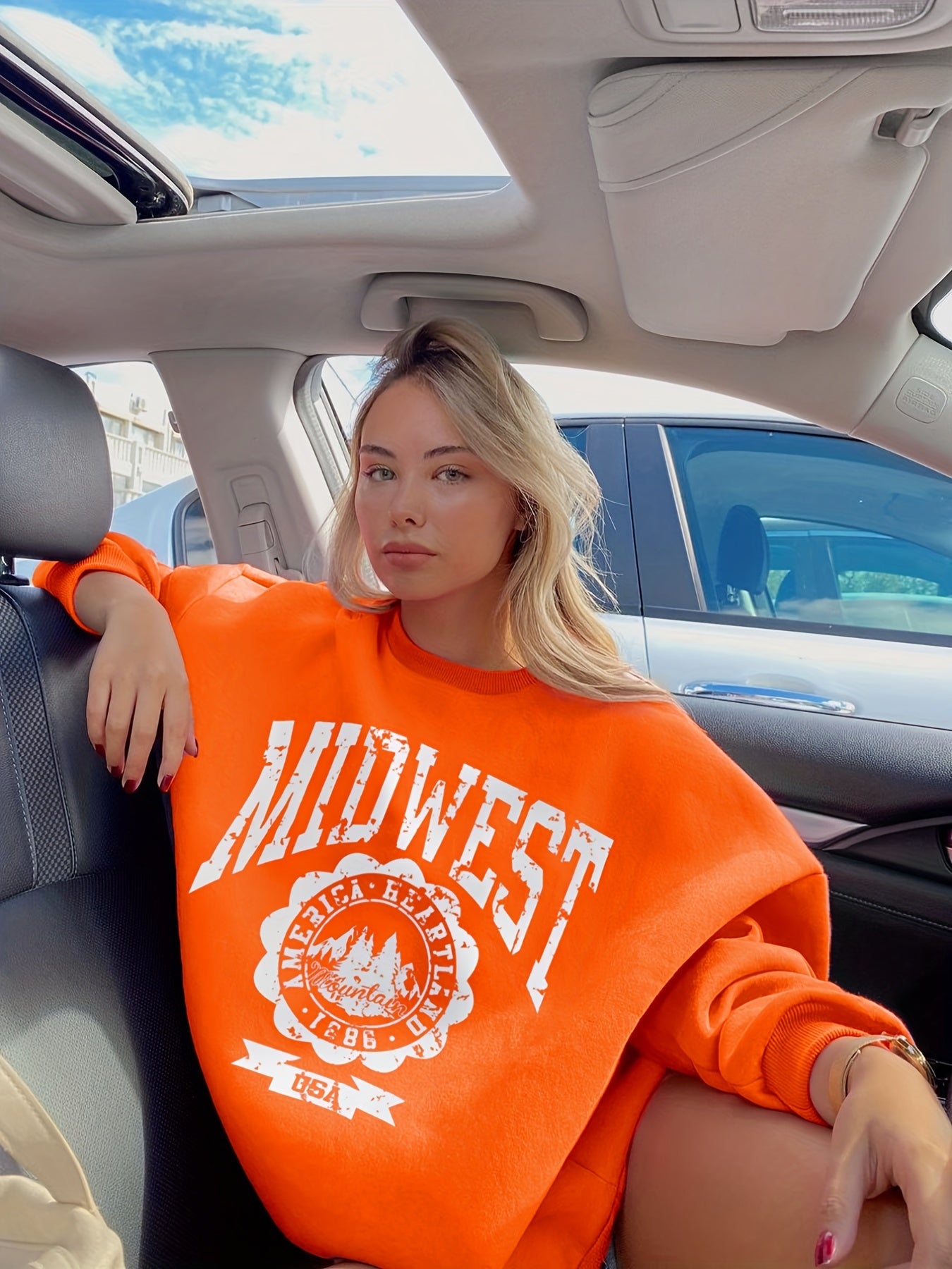 Sixsr Graphic Print Sweatshirt, Casual Crew Neck Drop Shoulder Long Sleeve Sweater, Women's Clothing
