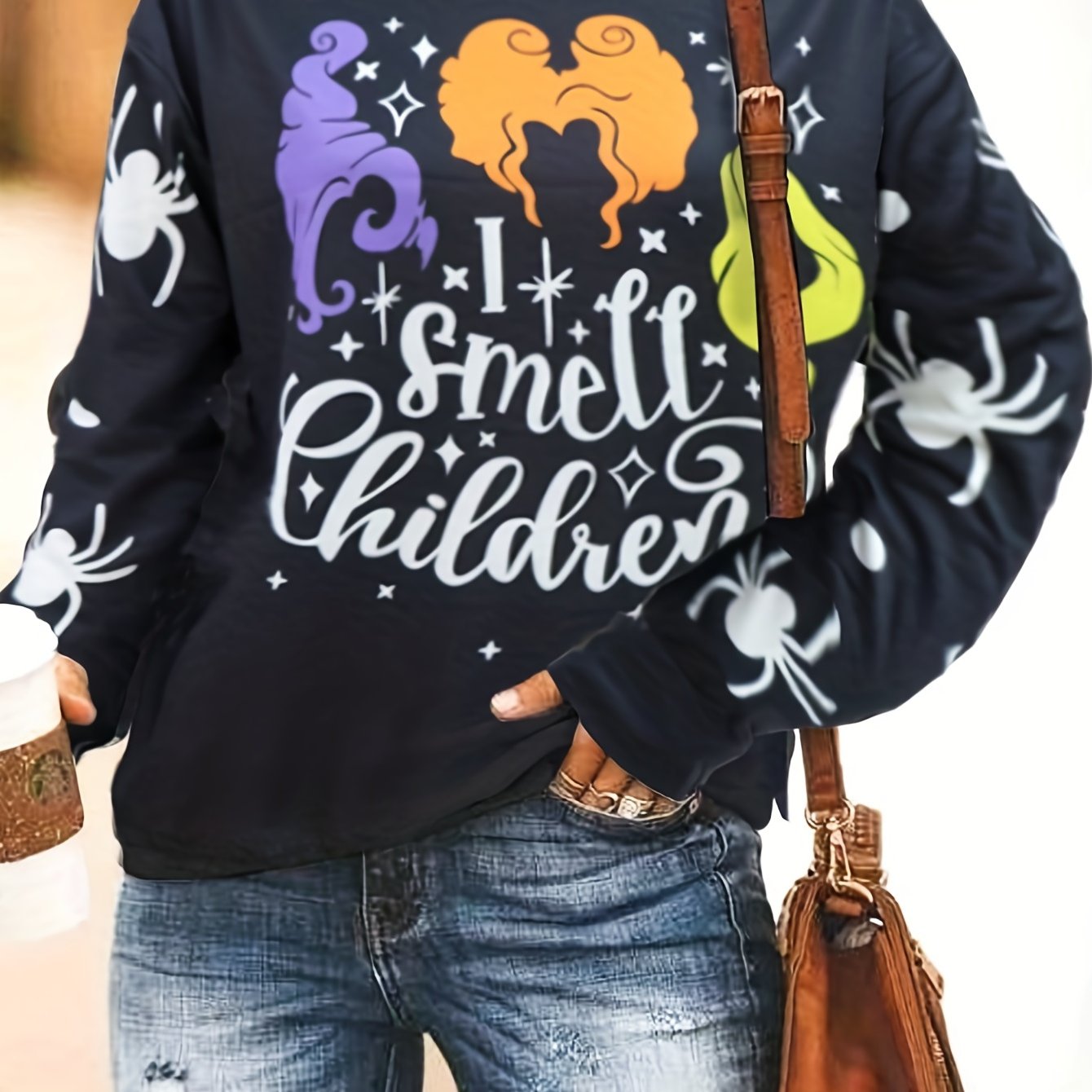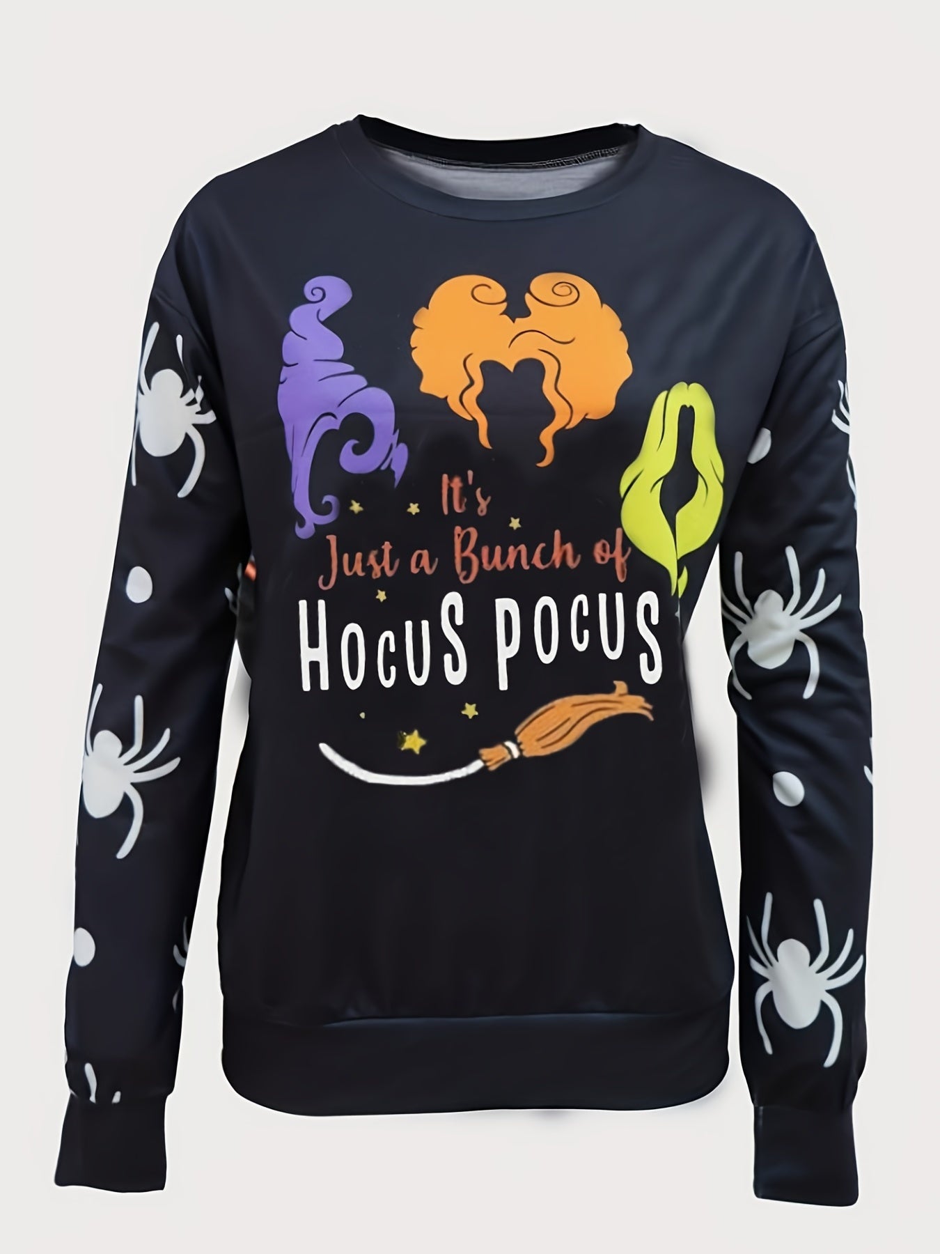 Sixsr Halloween Graphic Print Sweatshirt, Casual Crew Neck Long Sleeve Sweatshirt, Women's Clothing