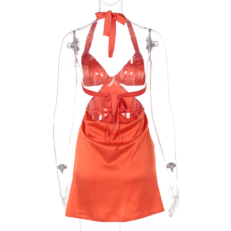 sixsr Halter Hollow Out Dress Women Bandage Slim Strapless Bodycon Dress Sexy Mini Backless Summer Party Dresses