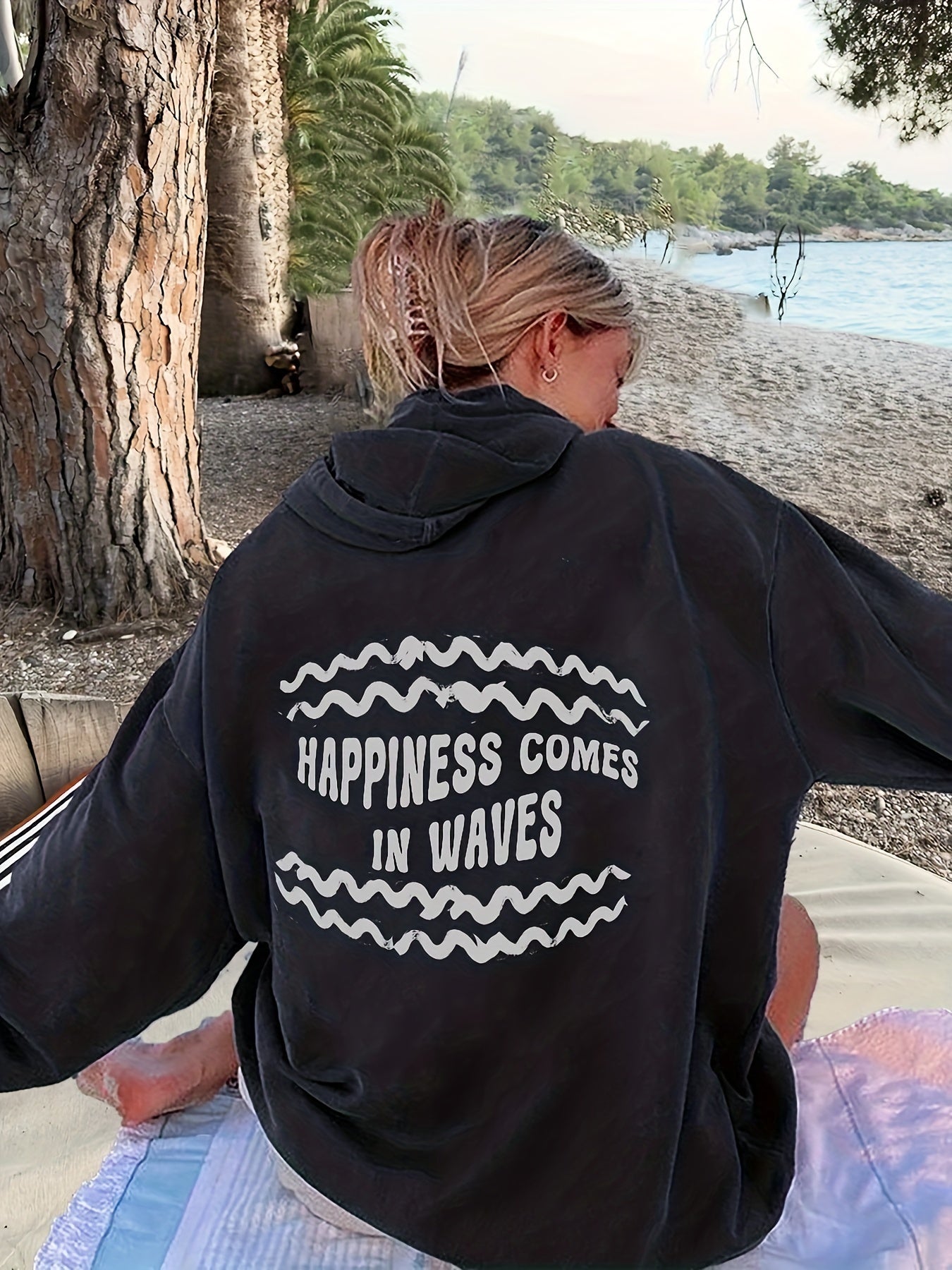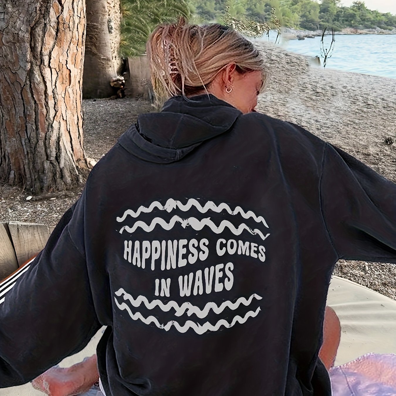 Sixsr Happiness Letter Print Hoodie, Casual Long Sleeve Kangaroo Pocket Sweatshirt, Women's Clothing