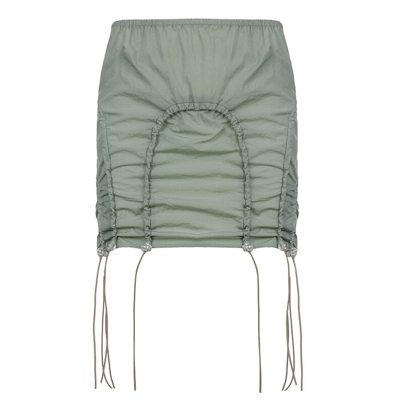 sixsr Hot Sell Retro Green Low Waist Summer Beach Skirt Drawstring Hem Slim Y2K Mini Skirts Womens Vintage Casual Vacation Outfits
