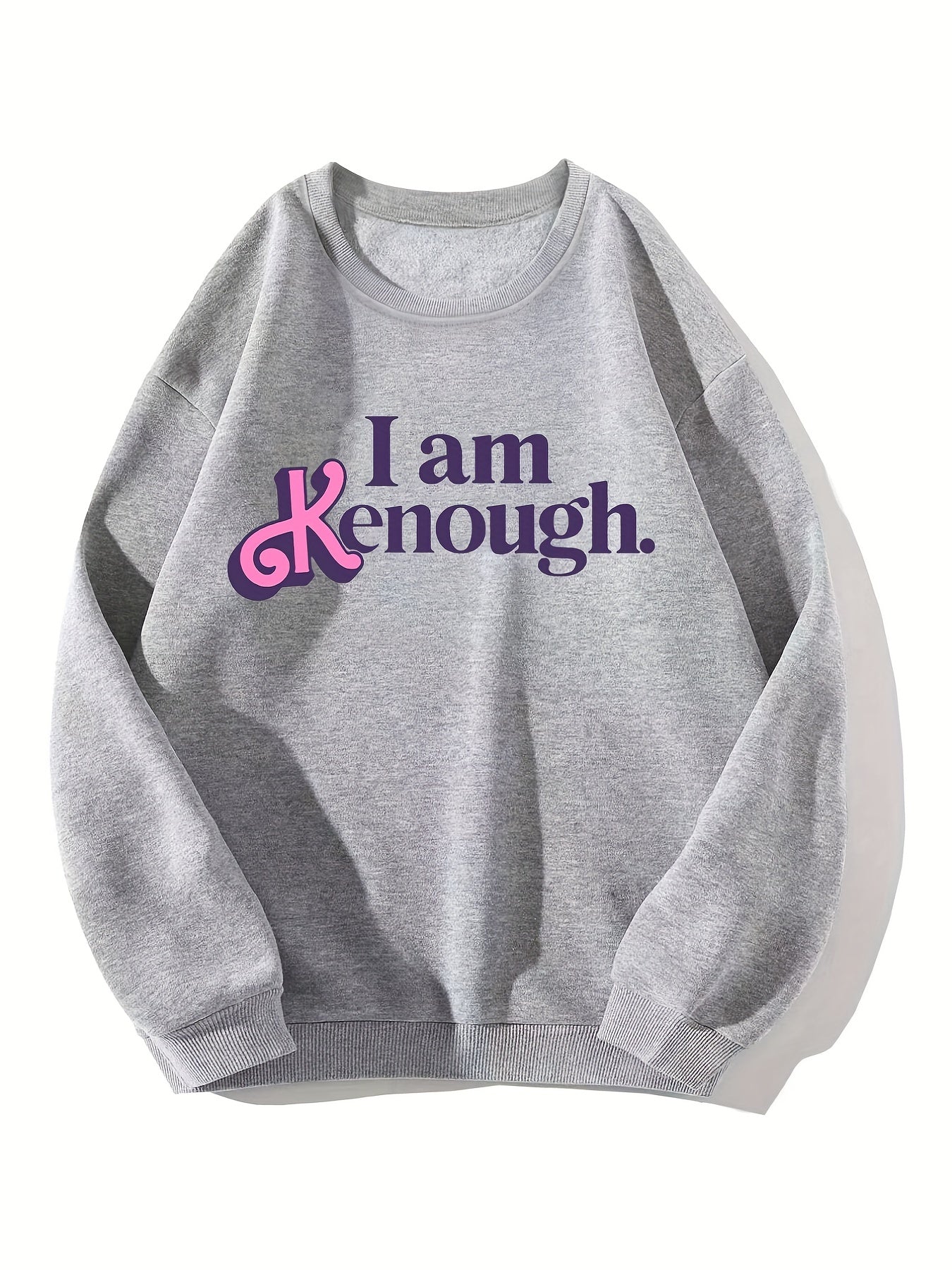 Sixsr I Am Kenough Print Sweatshirt, Casual Long Sleeve Crew Neck Sweatshirt For Winter & Fall, Women's Clothing