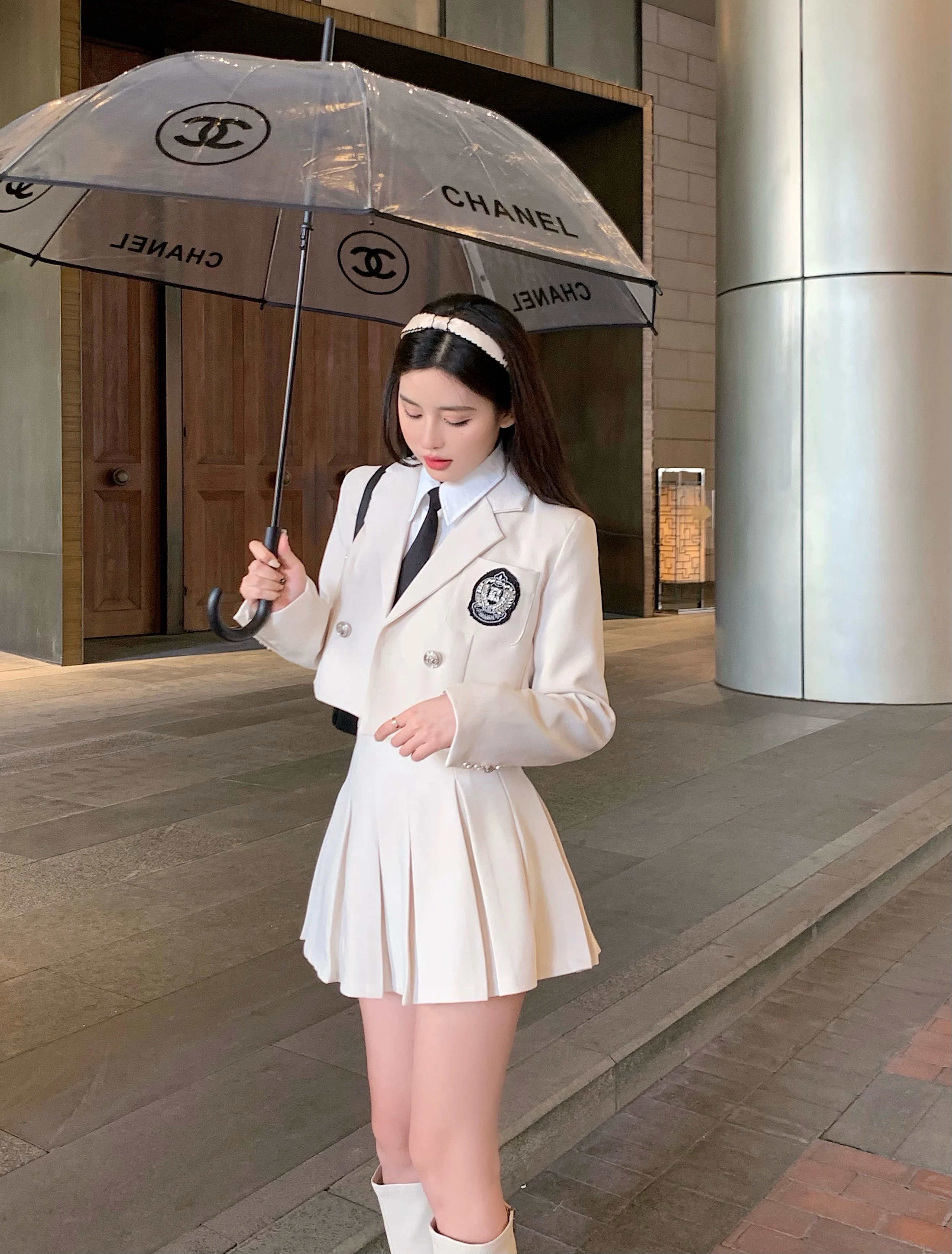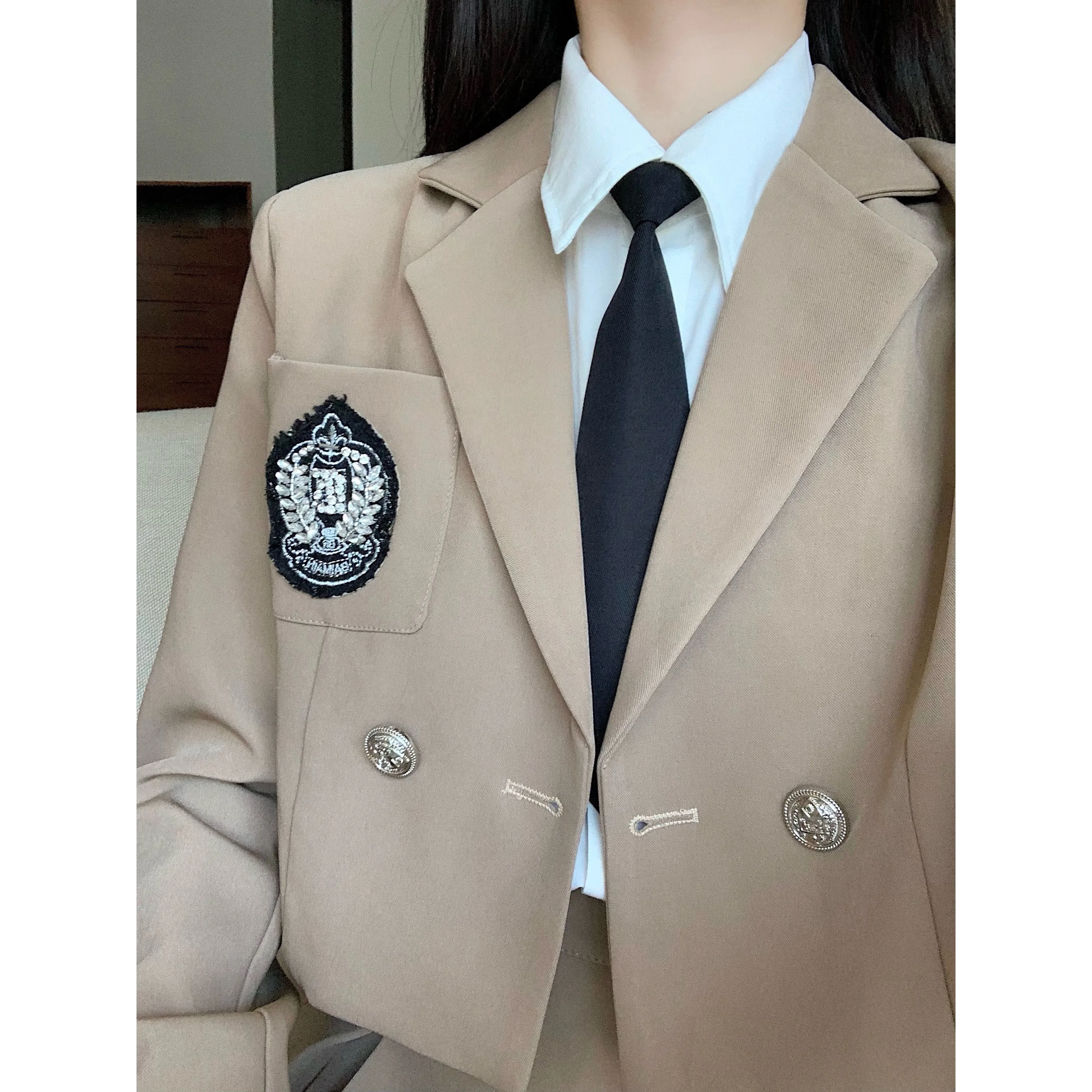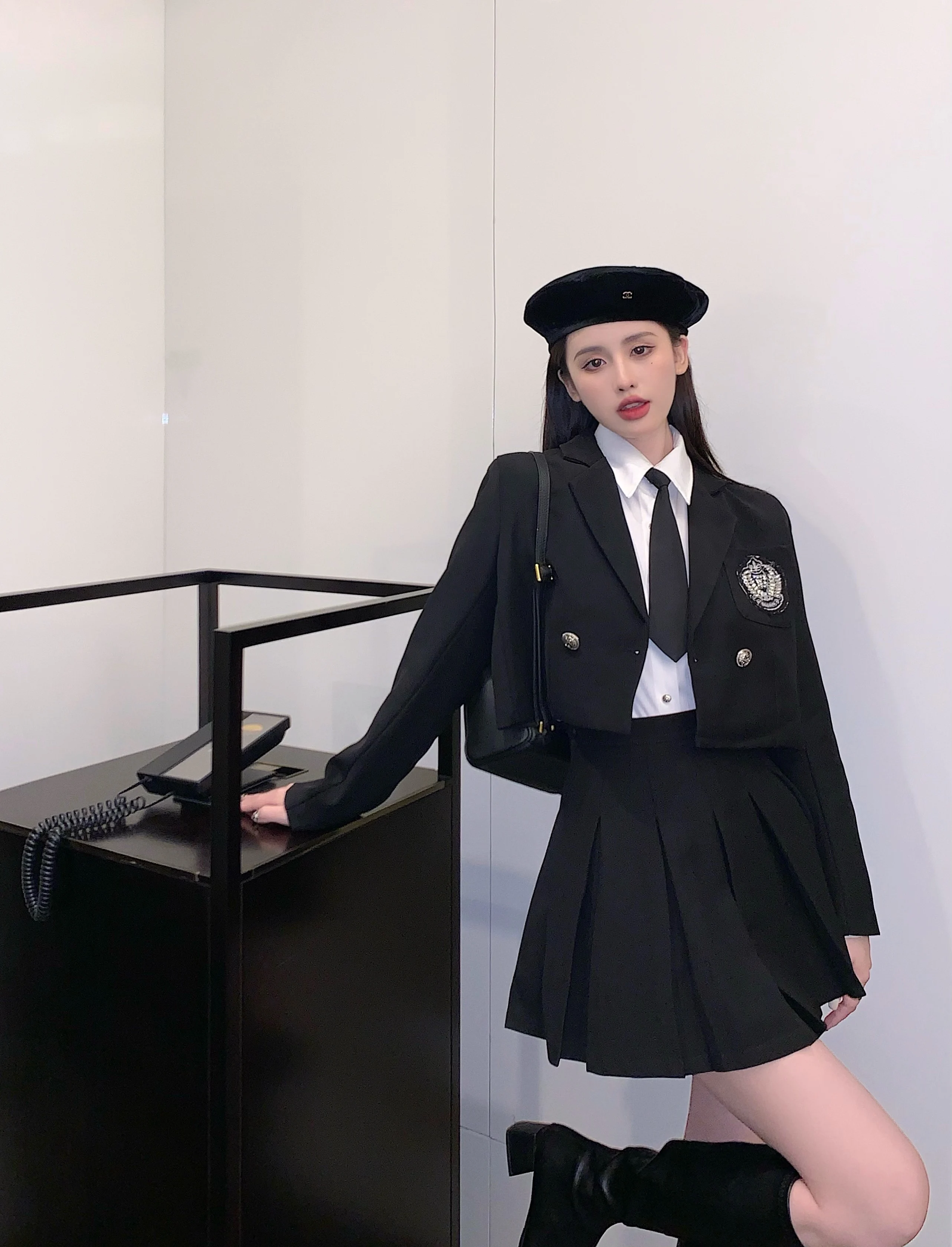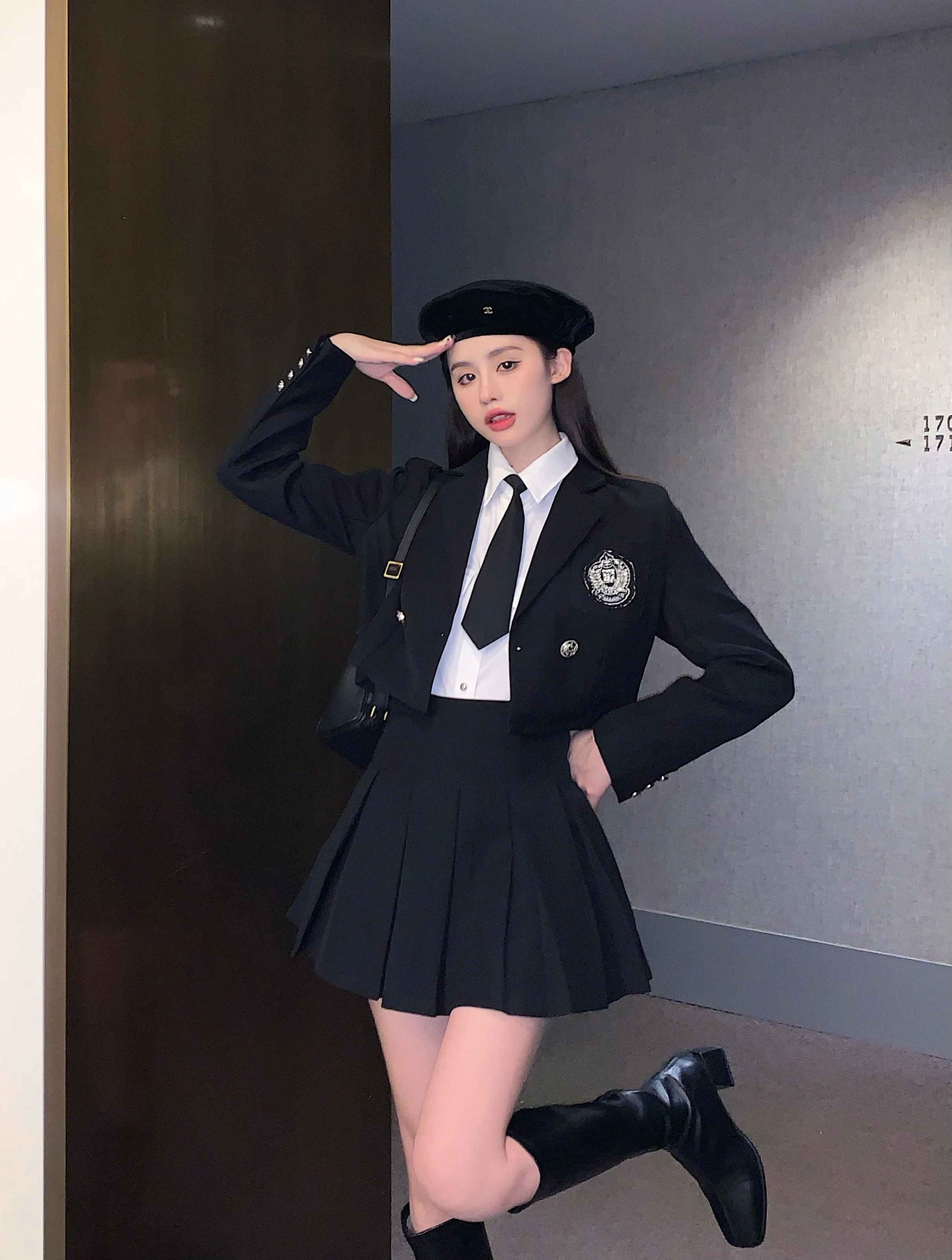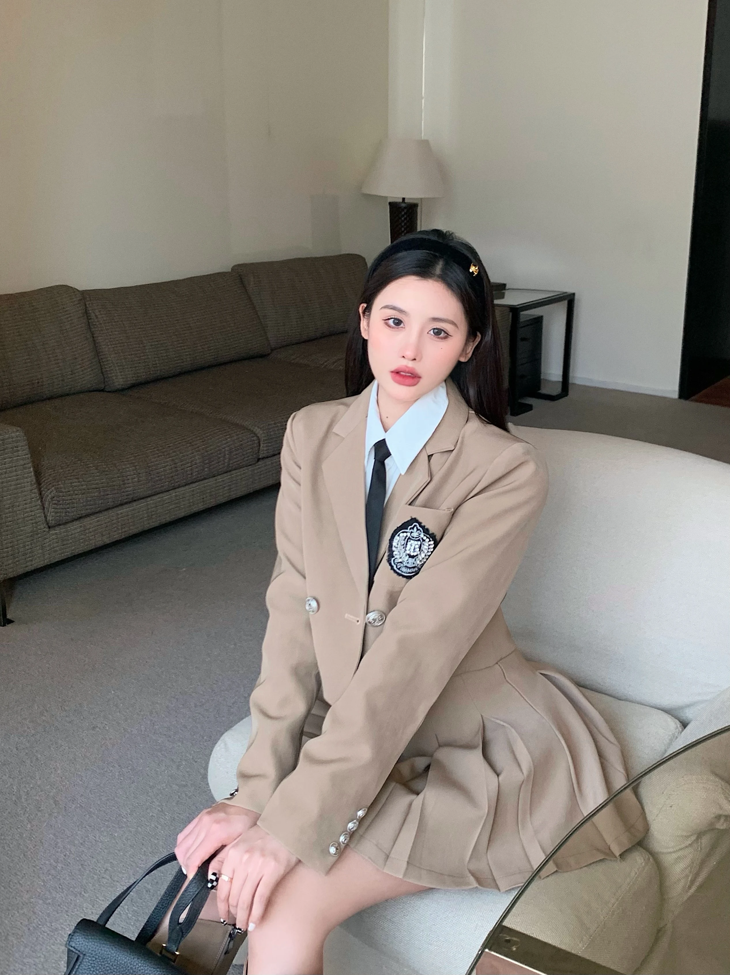 sixsr JK Blazer Skirt Set Female Short Suit Jacket + Pleated Skirt Spring Autumn Professional Wear Elegant Goddess Two-piece Set