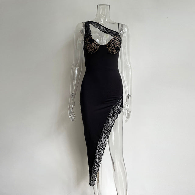 Sixsr Lace Strapless Party Dresses Women Sexy Hollow Out Birthday Outfits Lady Casual Sleeveless Robe Clothing
