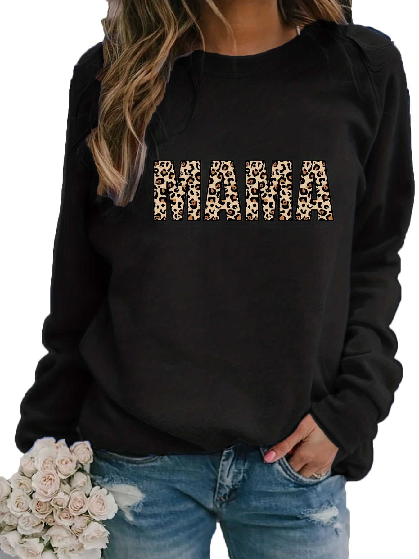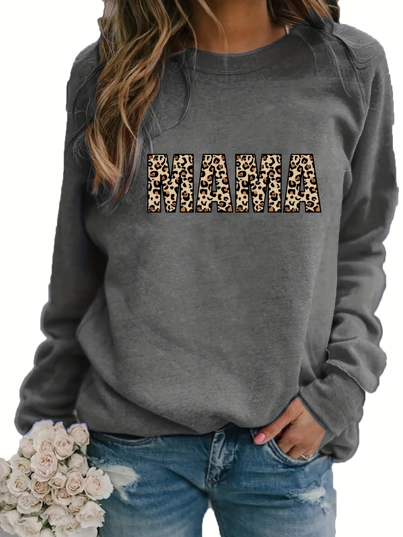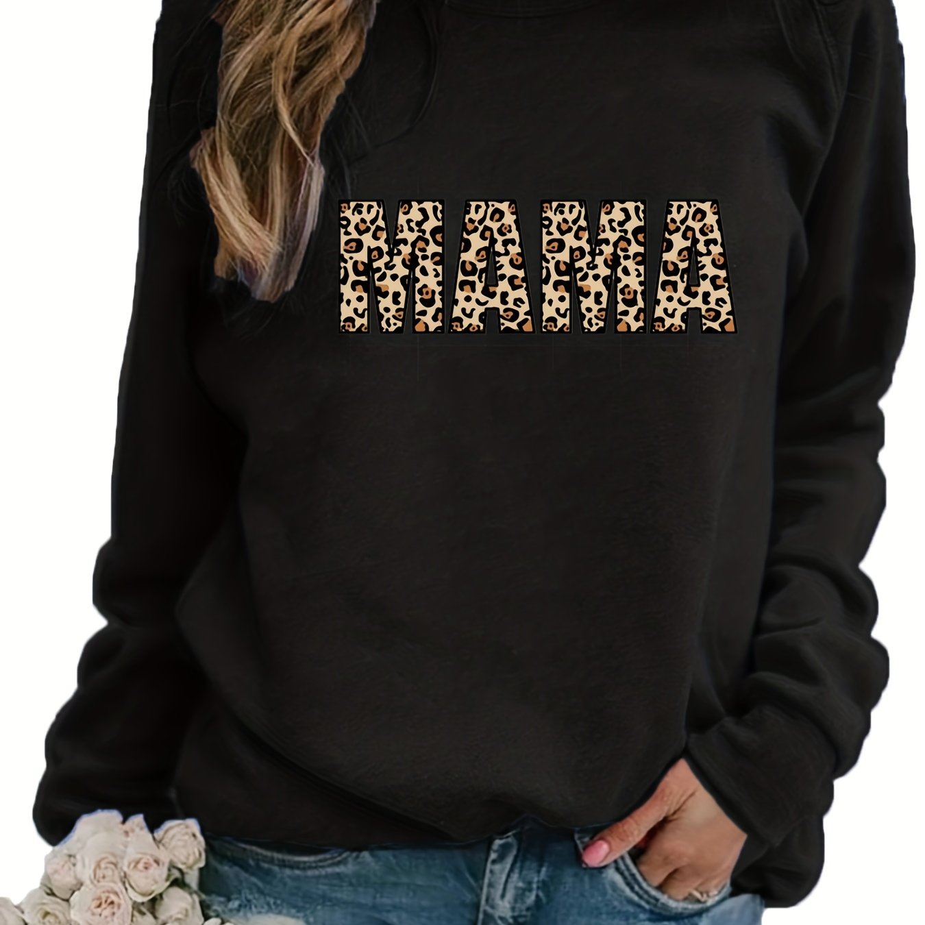 Sixsr Leopard Letter Print Pullover Sweatshirt, Casual Long Sleeve Crew Neck Sweatshirt For Fall & Winter, Women's Clothing