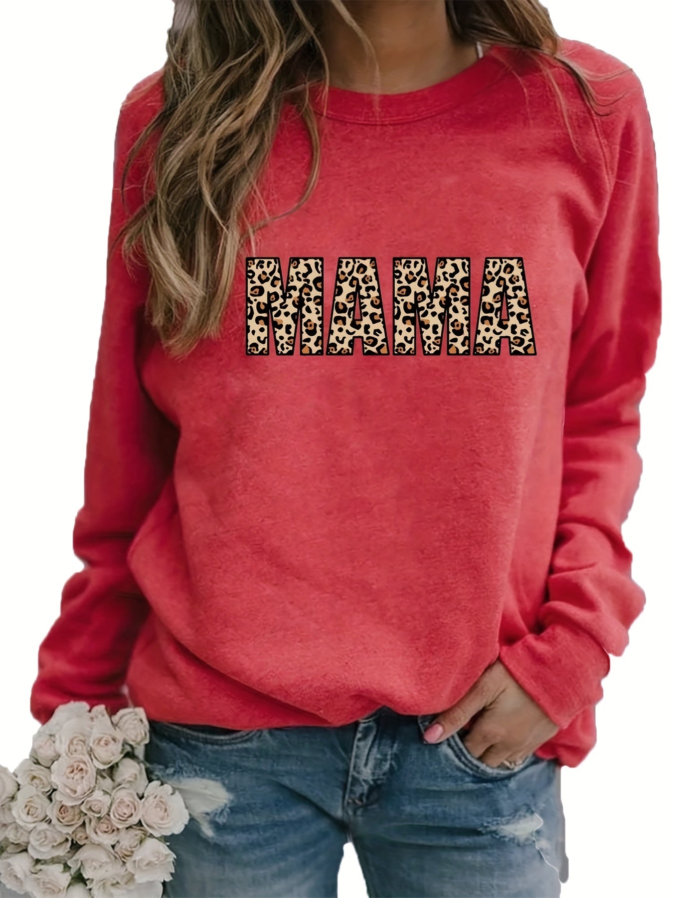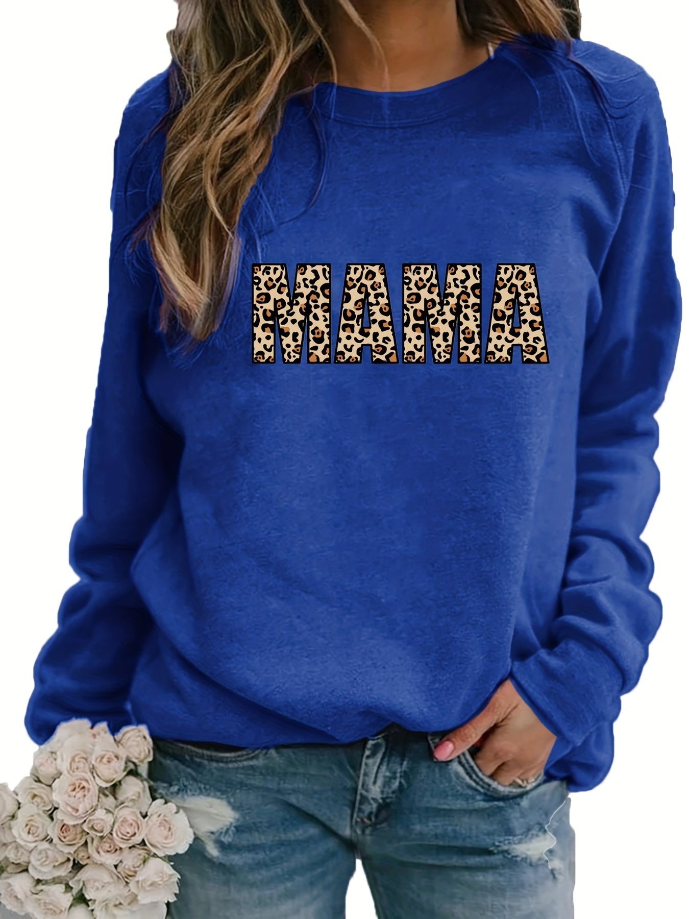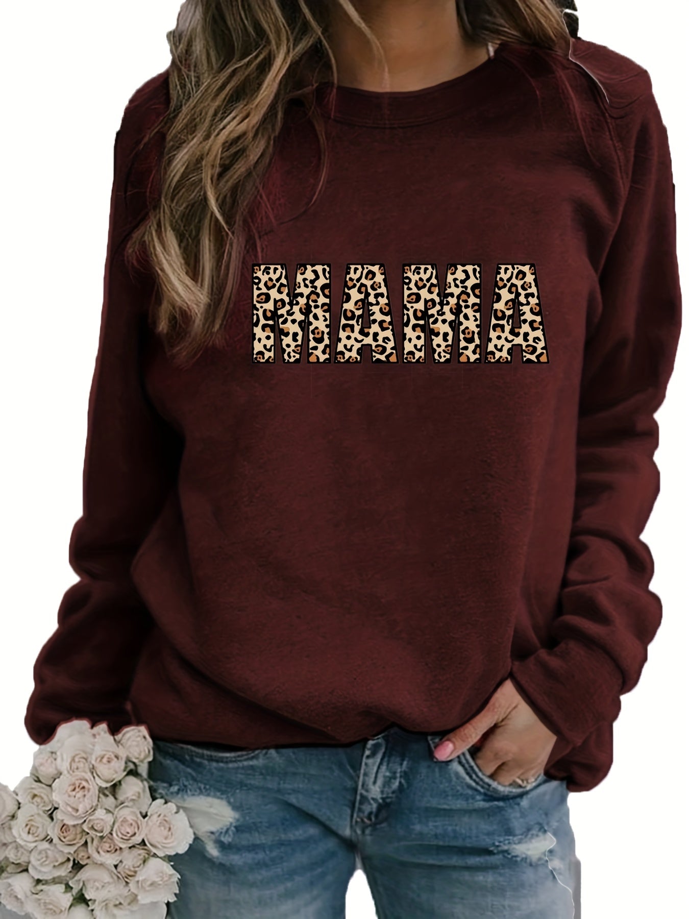 Sixsr Leopard Letter Print Pullover Sweatshirt, Casual Long Sleeve Crew Neck Sweatshirt For Fall & Winter, Women's Clothing