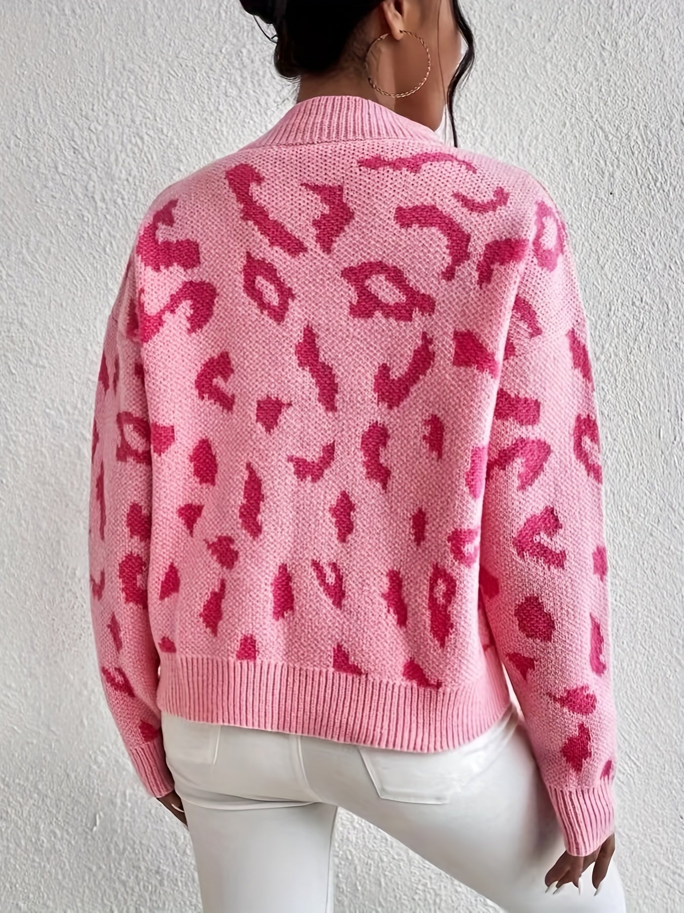 Sixsr Leopard Pattern Mock Neck Sweater, Casual Long Sleeve Sweater For Fall & Winter, Women's Clothing