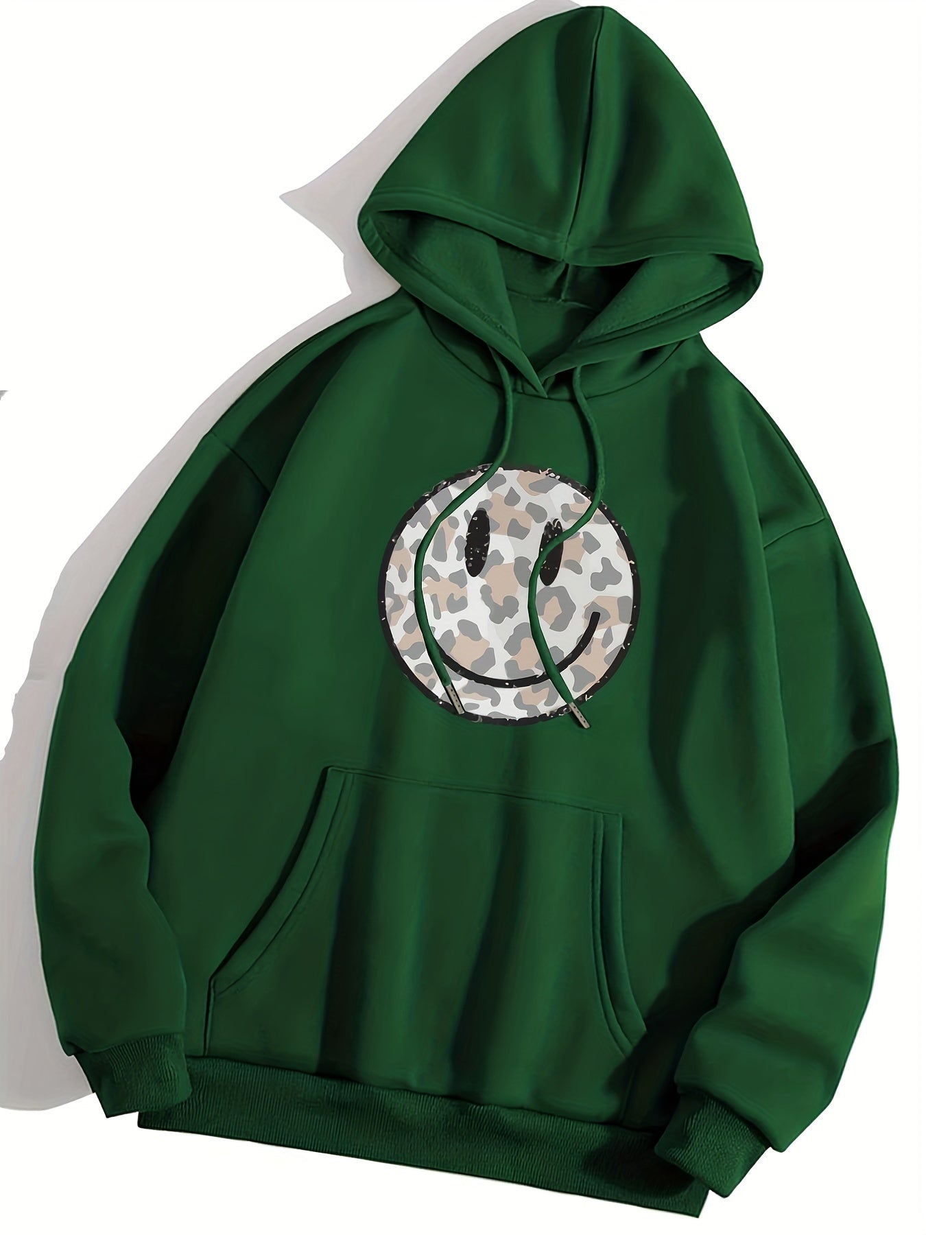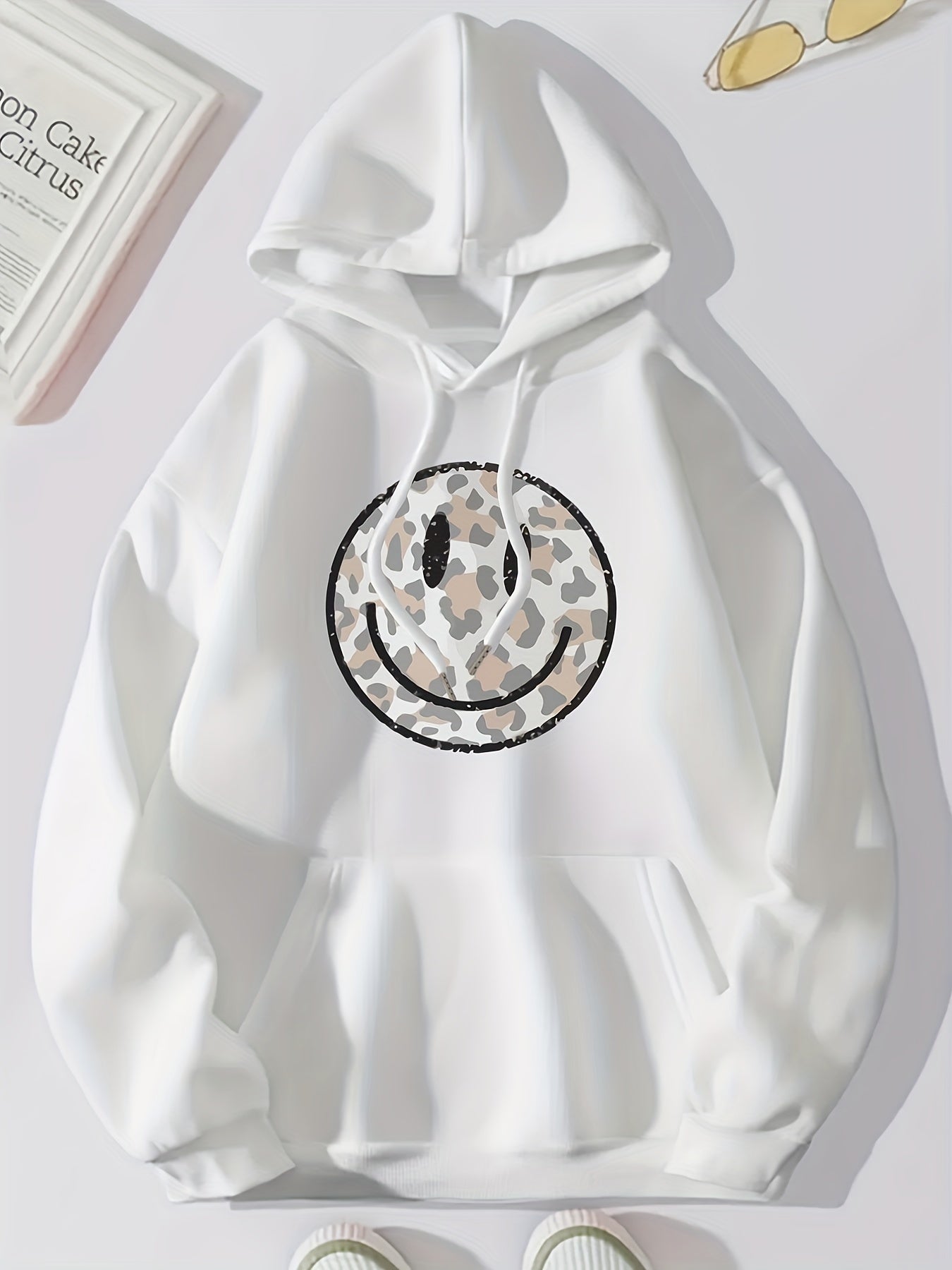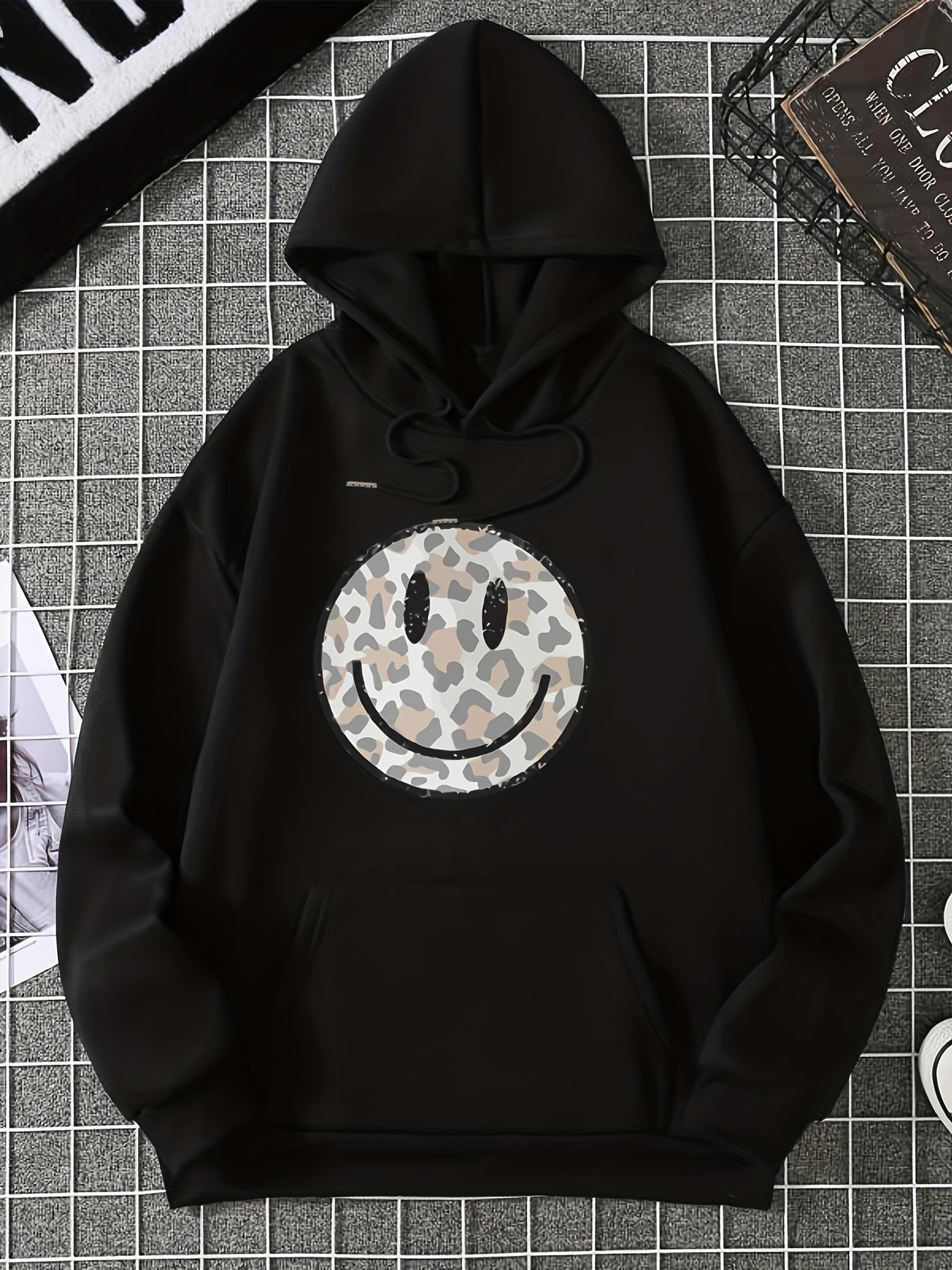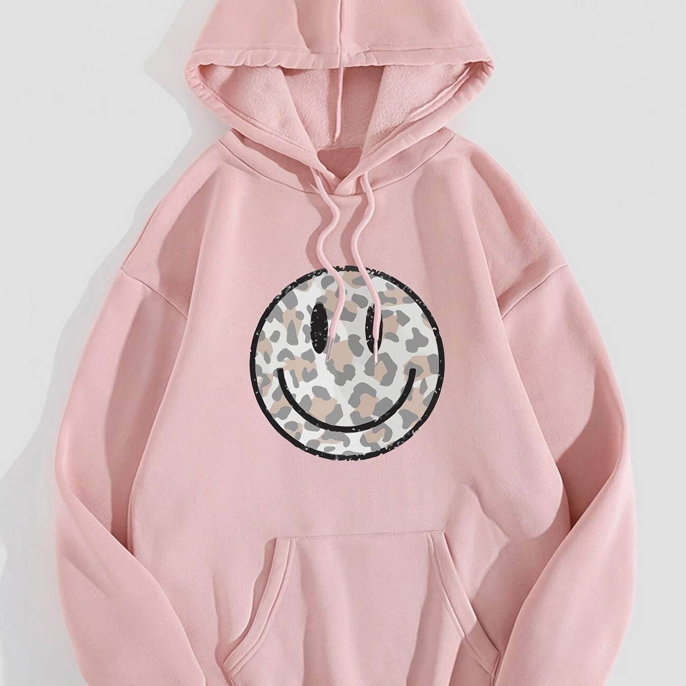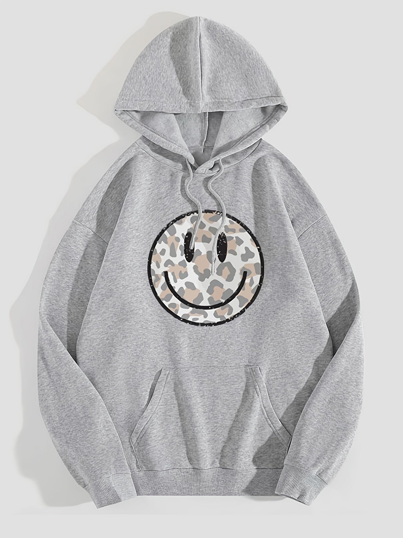 Sixsr Leopard Print Face Graphic Hoodies, Drawstring Kangaroo Pocket Casual Sweatshirt For Spring & Fall, Women's Clothing