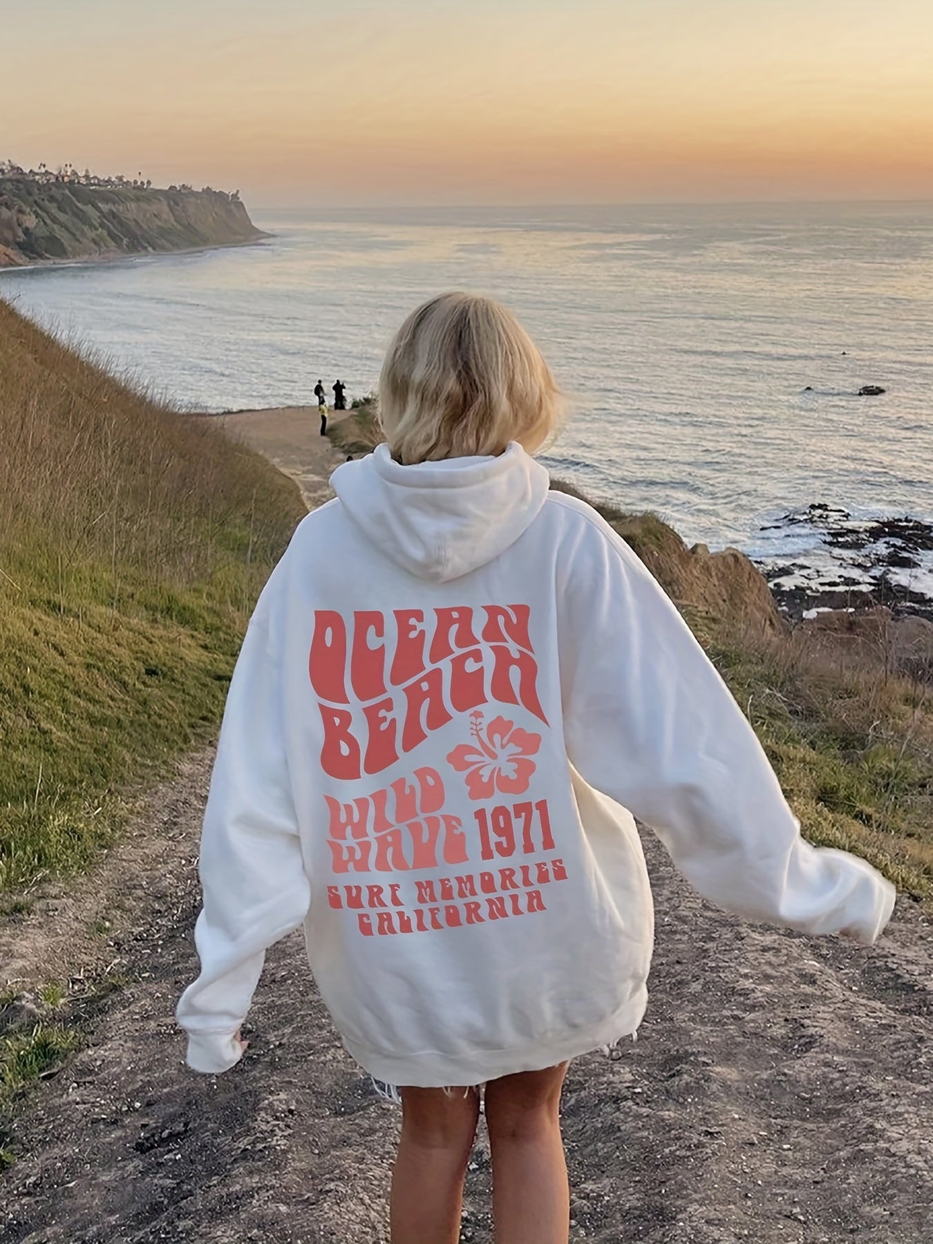 Sixsr Letter & Floral Print Hoodie, Y2K Long Sleeve Kangaroo Pockets Hoodie, Women's Clothing