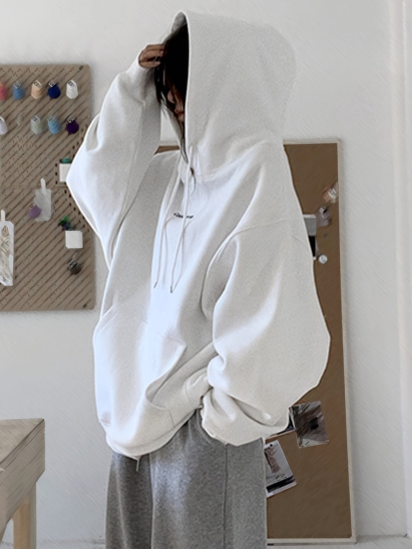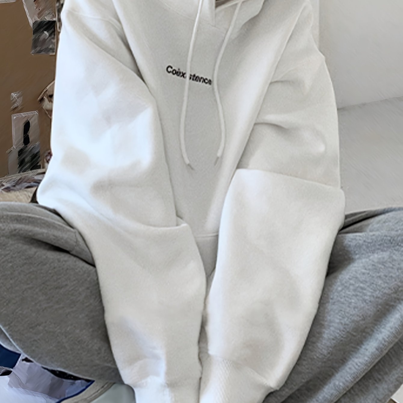 Sixsr Letter Pattern Kangaroo Pocket Hoodie, Casual Long Sleeve Drawstring Hoodies Sweatshirt, Women's Clothing