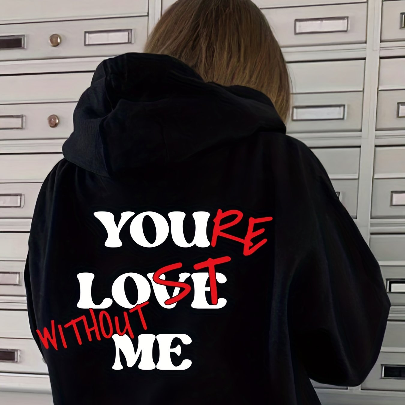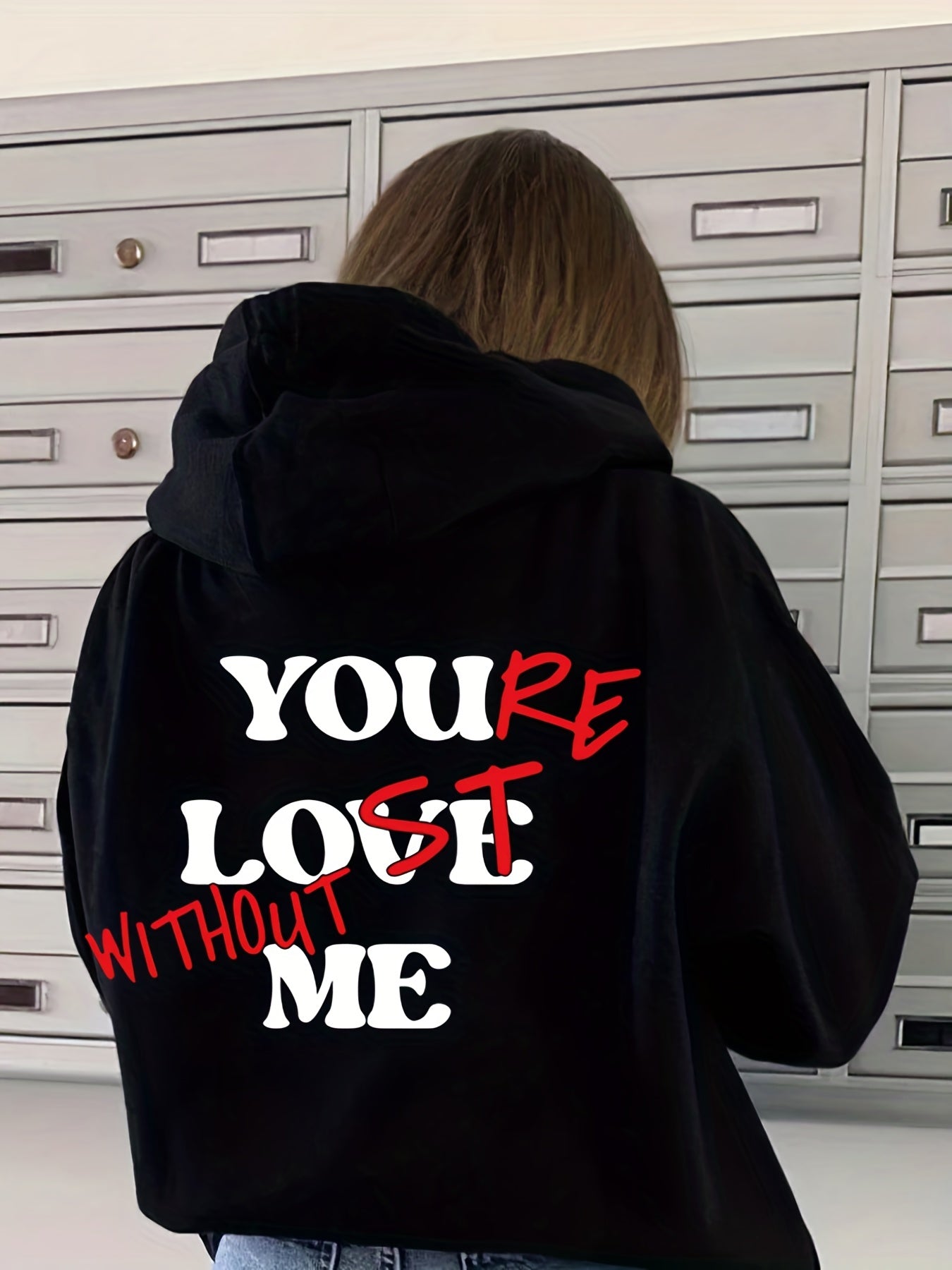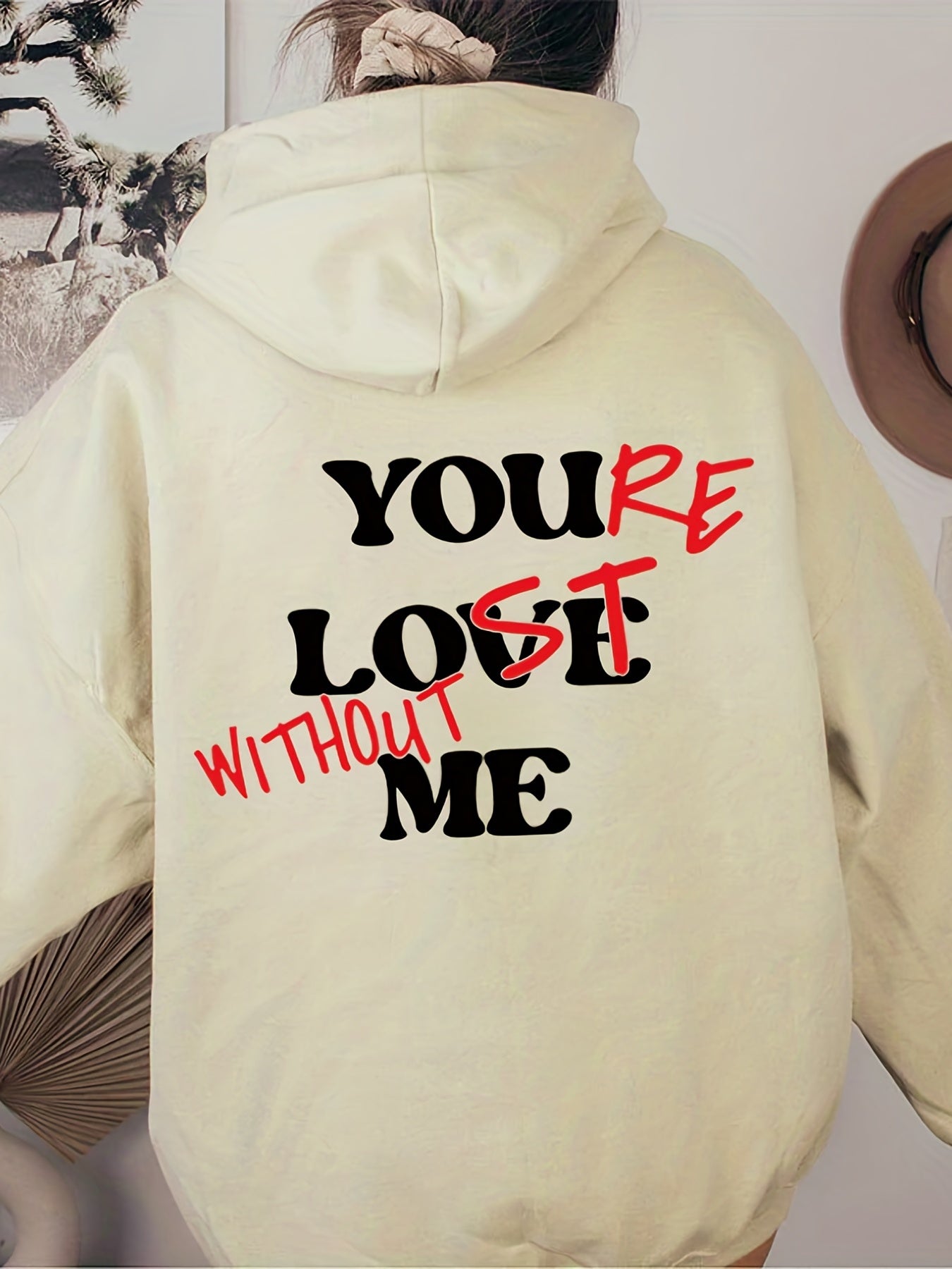 Sixsr Letter Print Back Hoodies, Casual Kangaroo Pocket Long Sleeve Sweatshirt, Women's Clothing