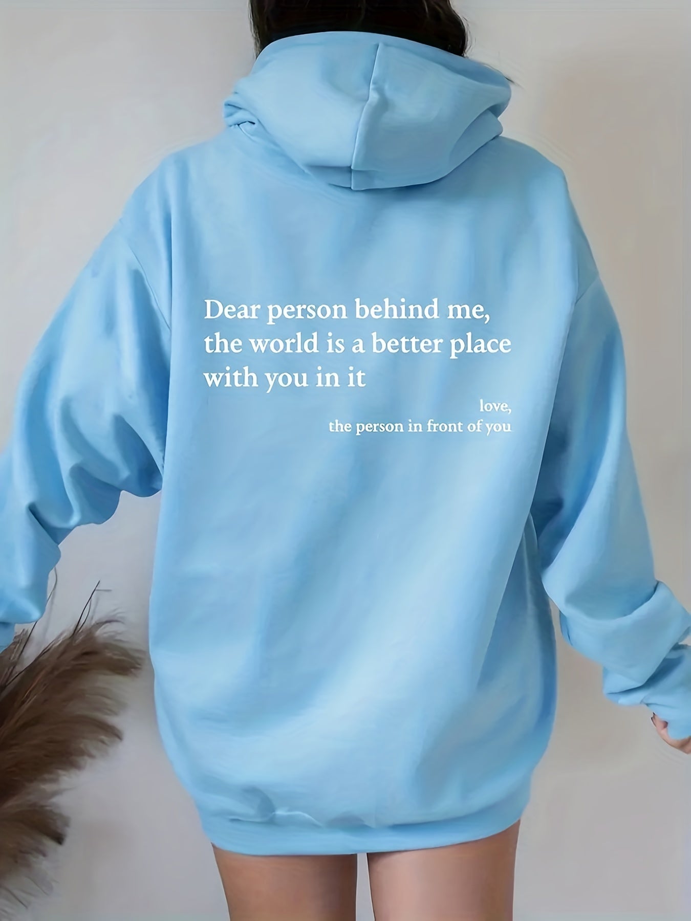 Sixsr Letter Print Hoodies, Long Sleeve Thermal Drawstring Casual Sweatshirt For Fall & Winter, Women's Clothing