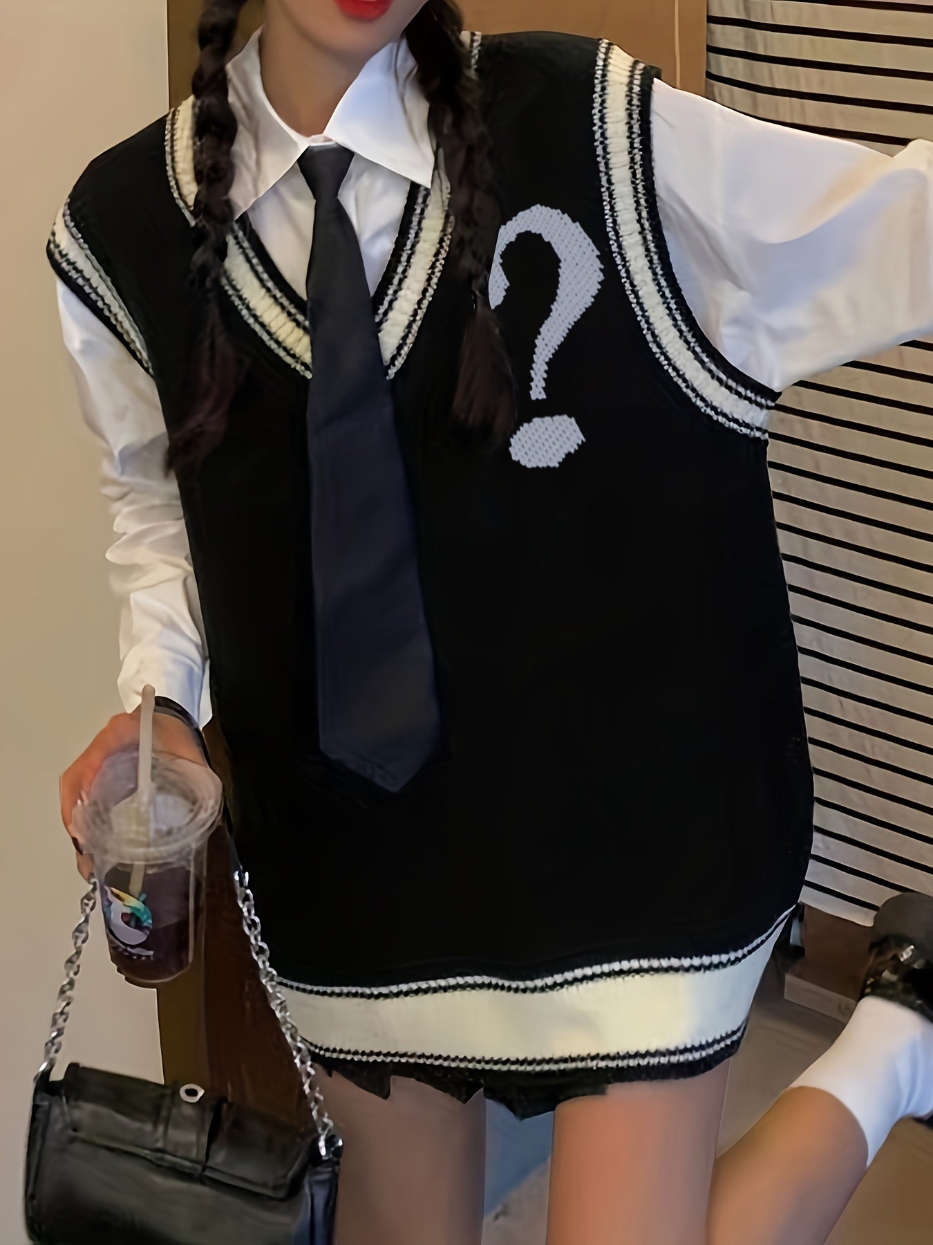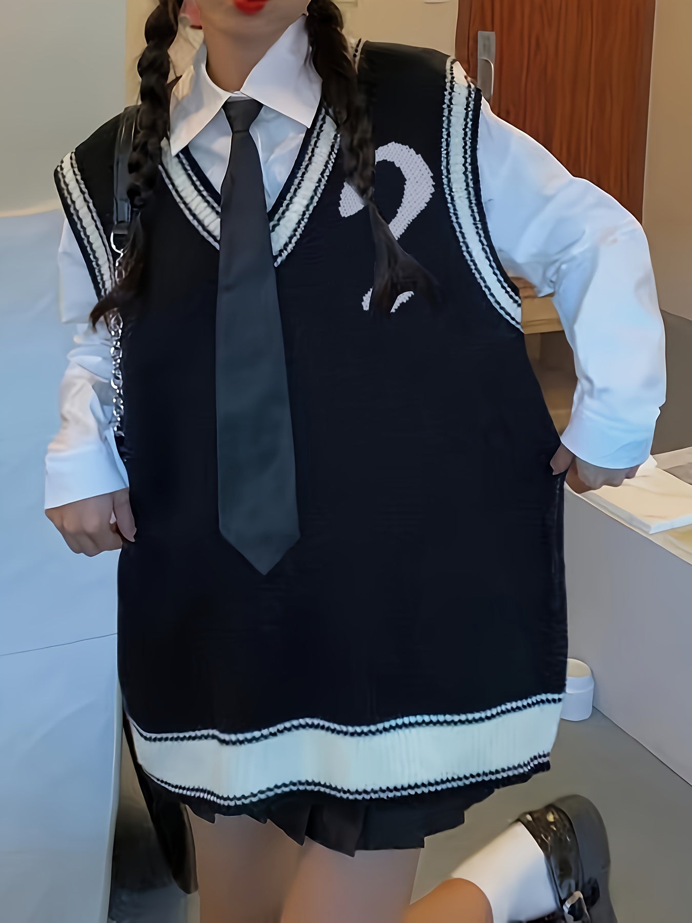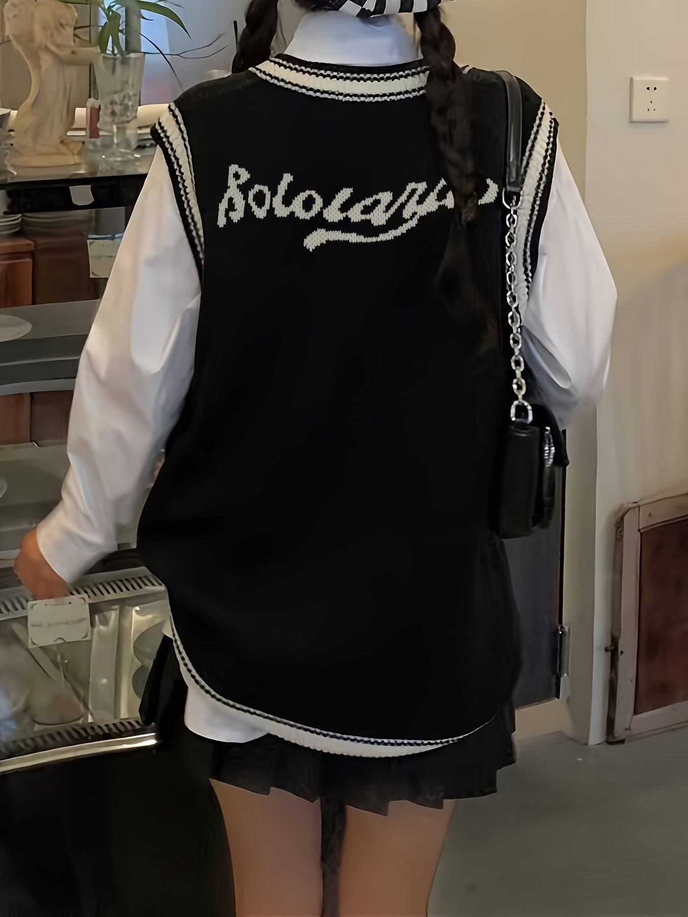 Sixsr Letter Print V Neck Sweater Vest, Preppy Sleeveless Vest For Fall & Winter, Women's Clothing