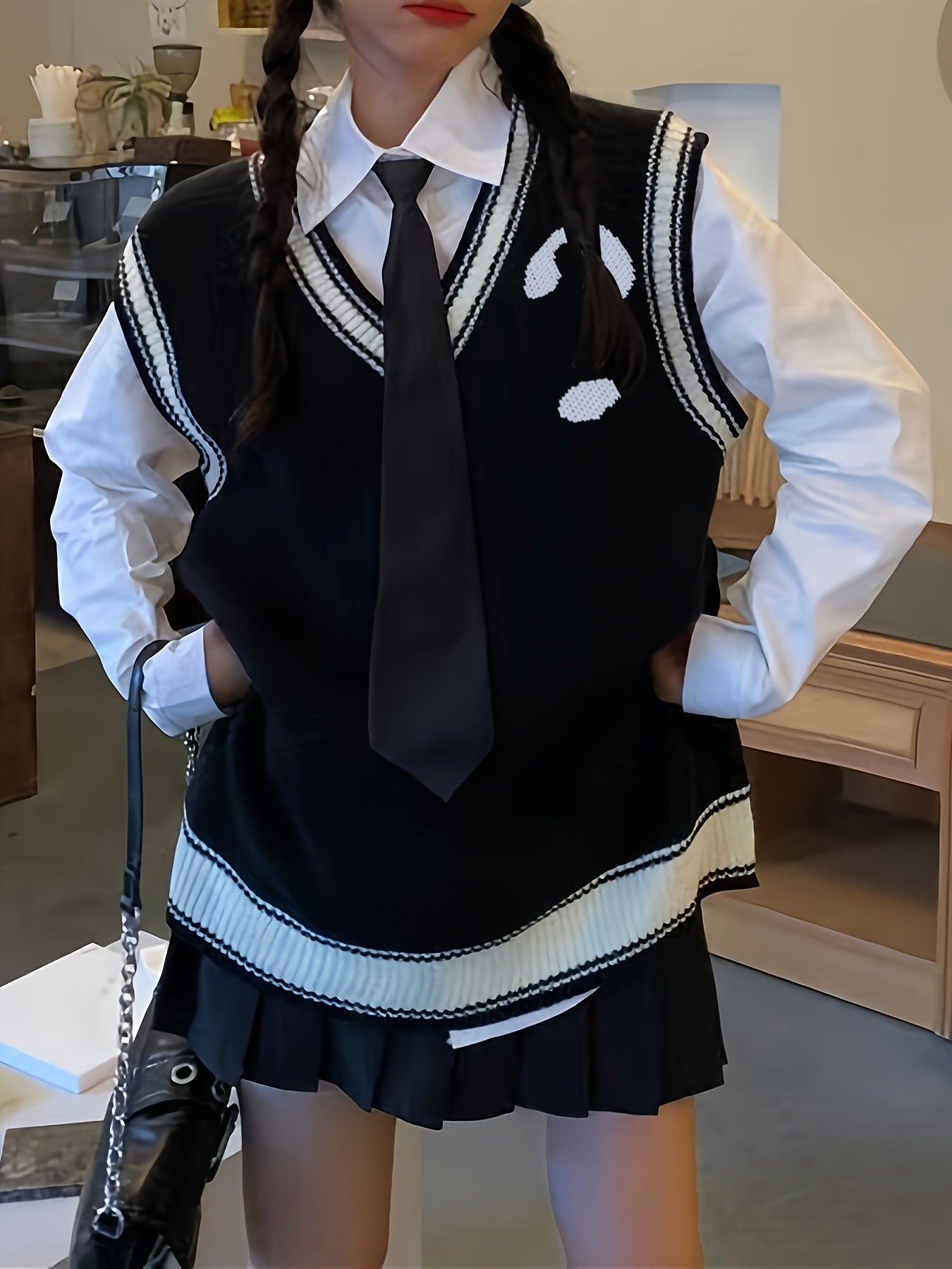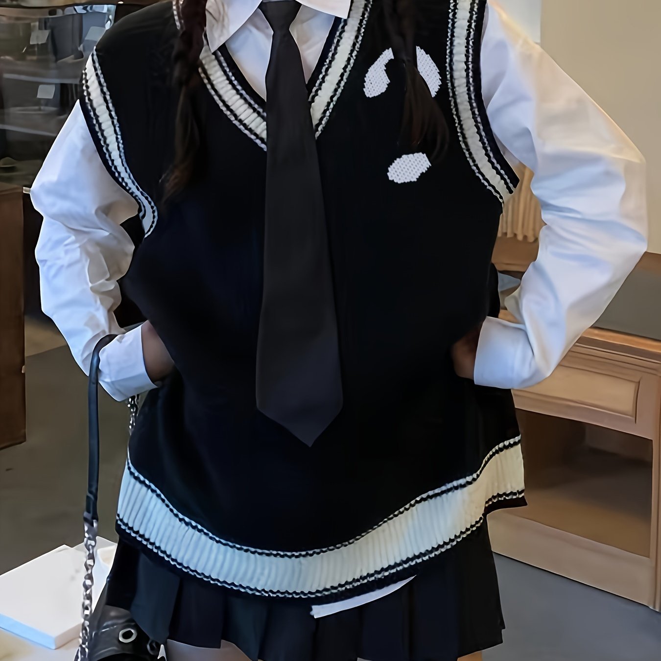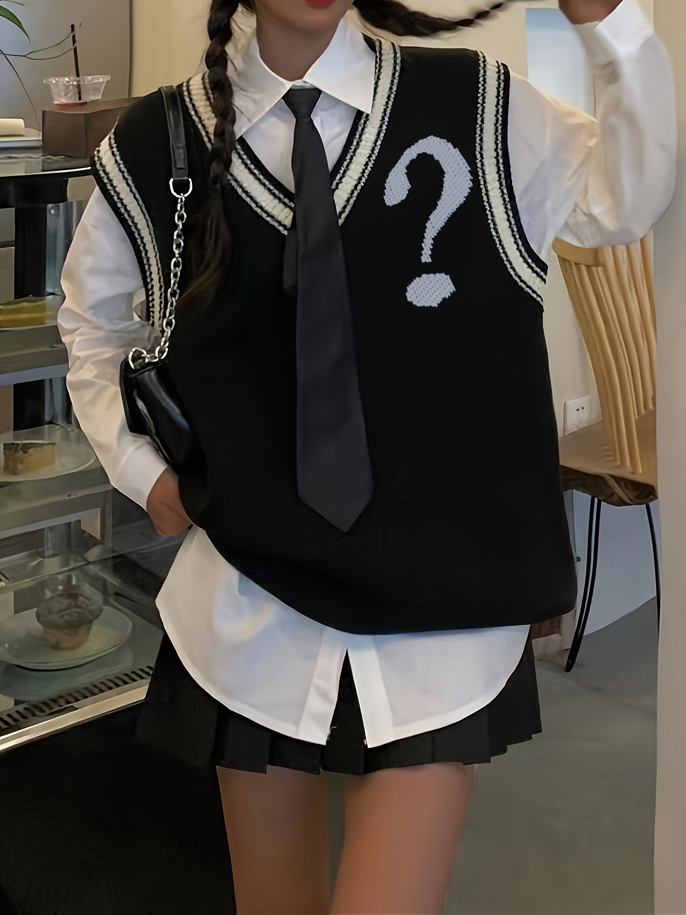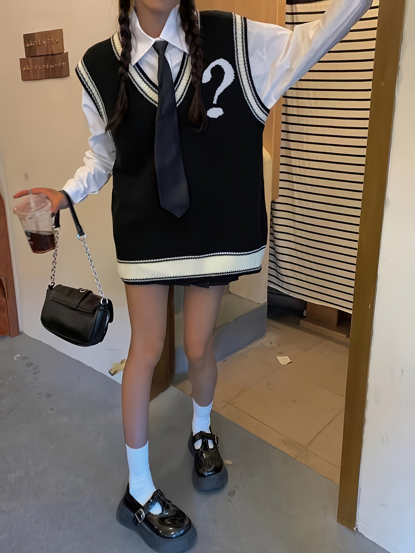 Sixsr Letter Print V Neck Sweater Vest, Preppy Sleeveless Vest For Fall & Winter, Women's Clothing