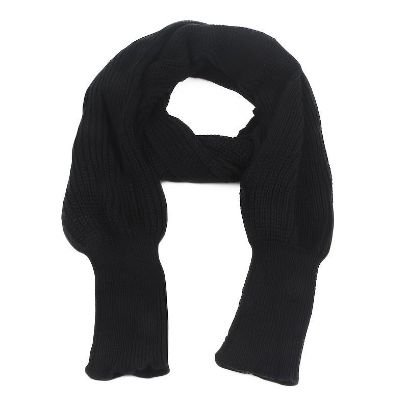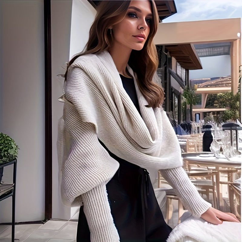 Sixsr Mature Solid Color Knitted Shawl With Long Sleeves Thick Warm Inelastic Scarf Autumn Winter Coldproof Decorative Wrapped Shawl