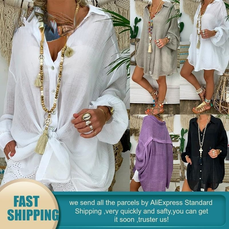 sixsr New Loose Women Cover Ups Swimwear White Beach Dress Cotton Beach Kimono Coverups for Women Swimsuit Cover Up Beach Woman