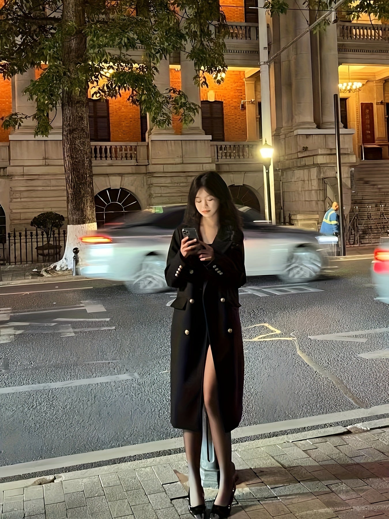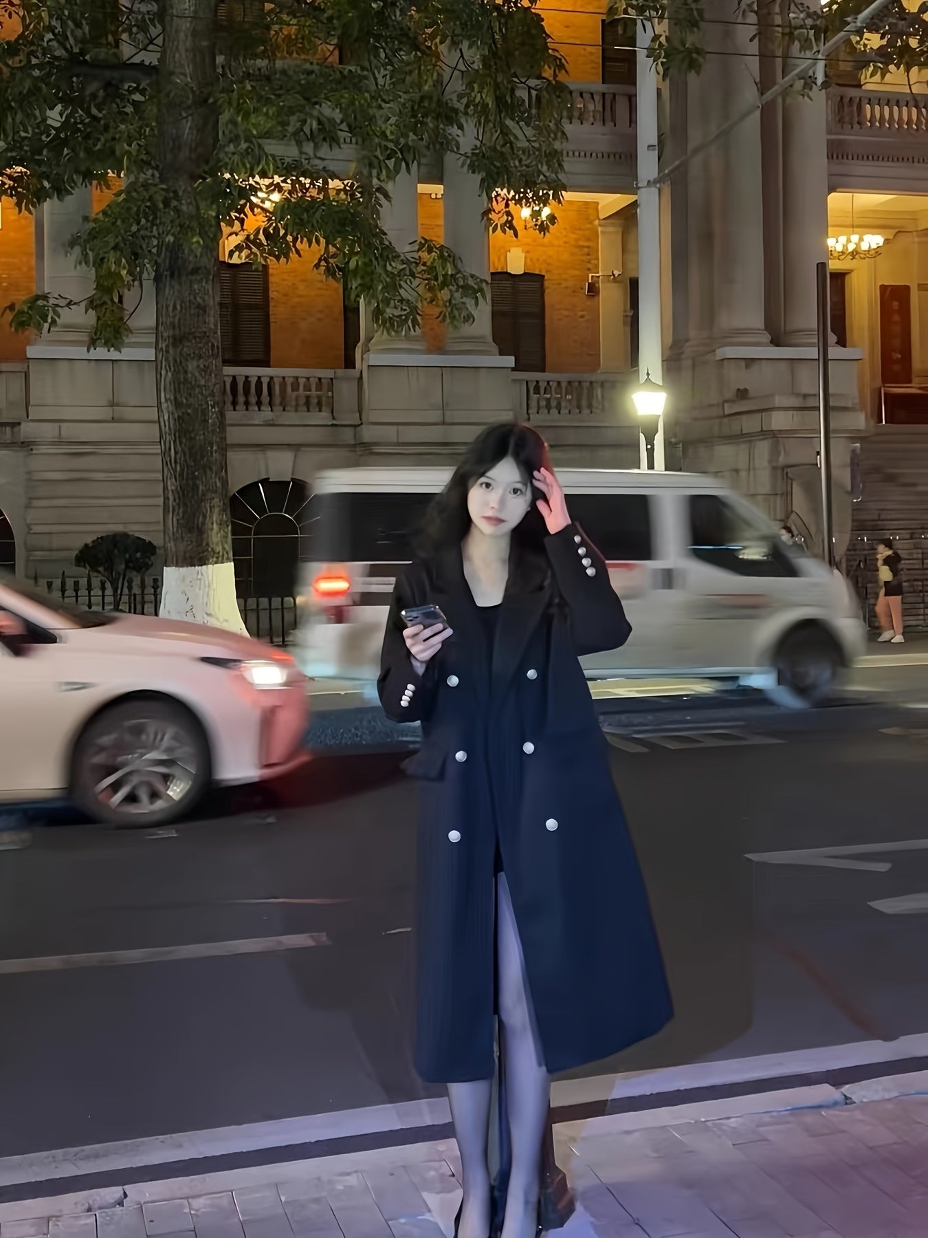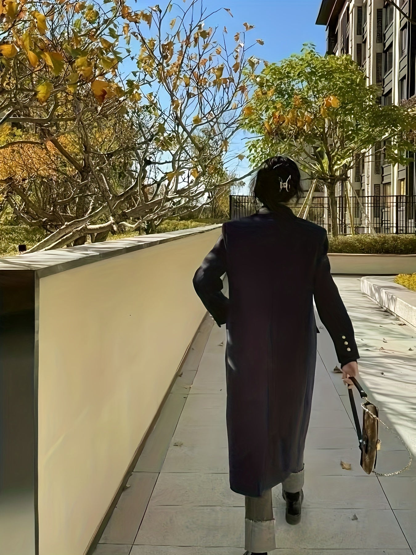 Sixsr Notched Collar Double-breasted Coat, Casual Long Sleeve Midi Length Coat For Fall & Winter, Women's Clothing