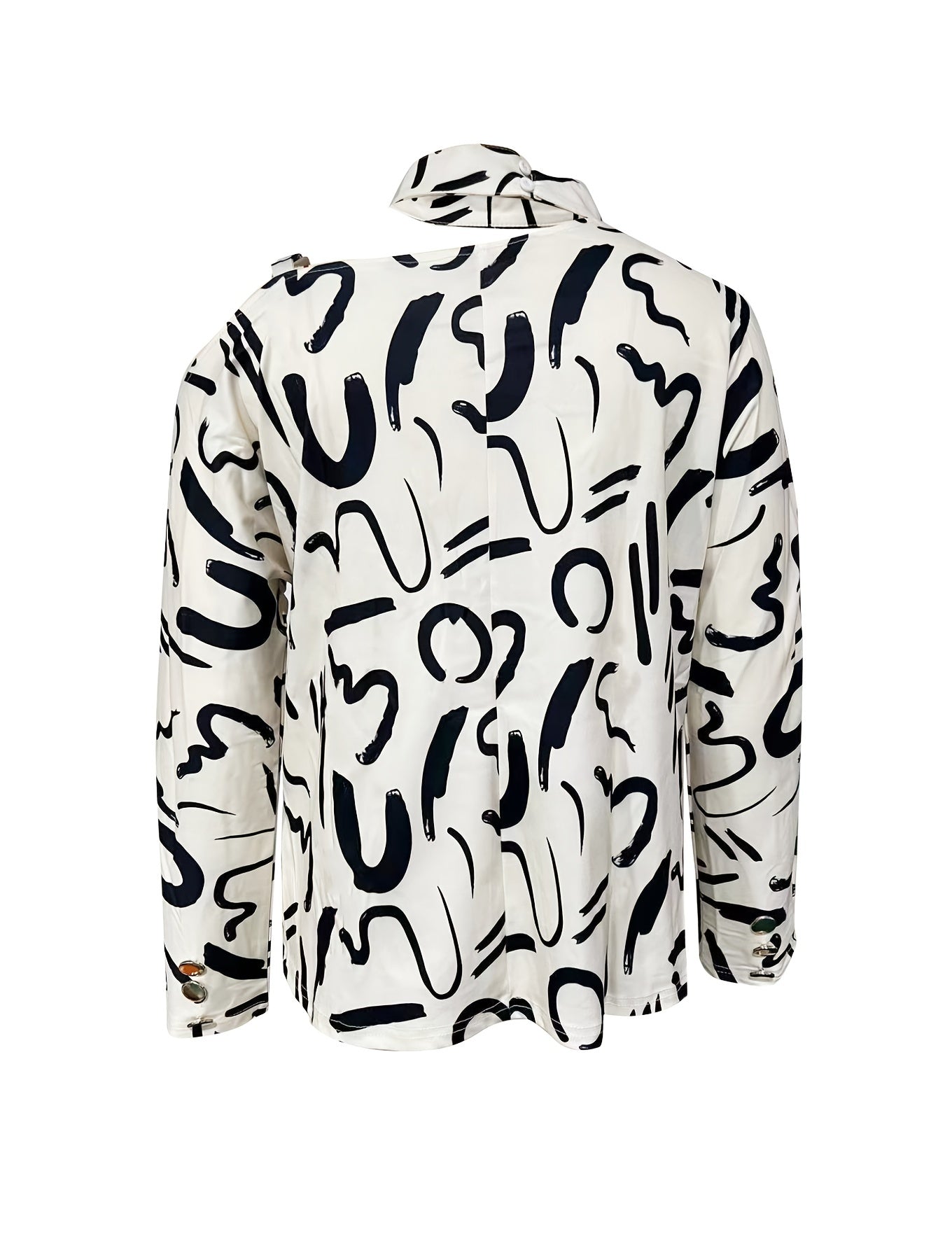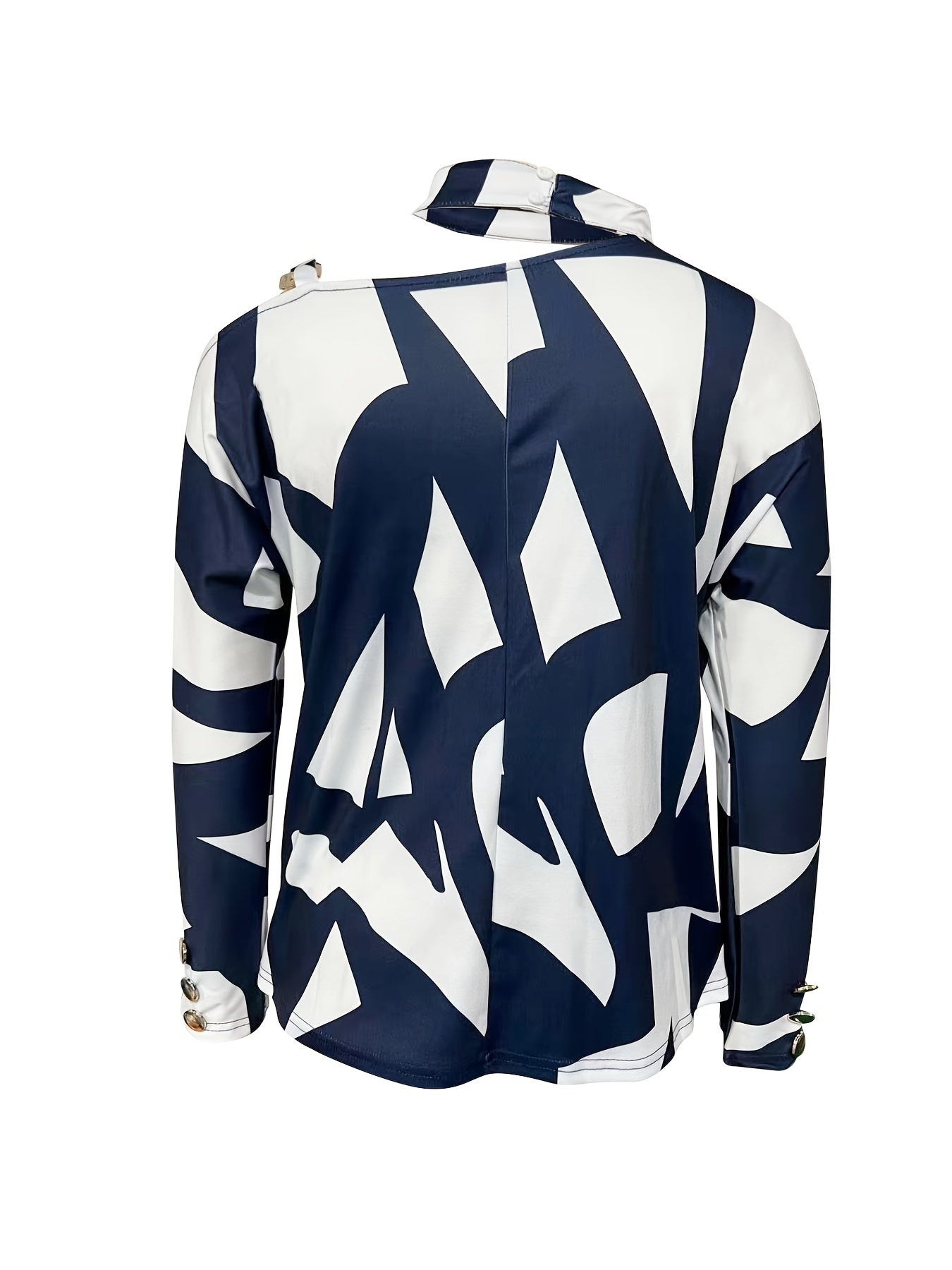 Sixsr Off Shoulder Graphic Print Chain Long Sleeve Pullover, Casual Loose Comfy Stylish Irregular Sweatshirt, Women's Clothing