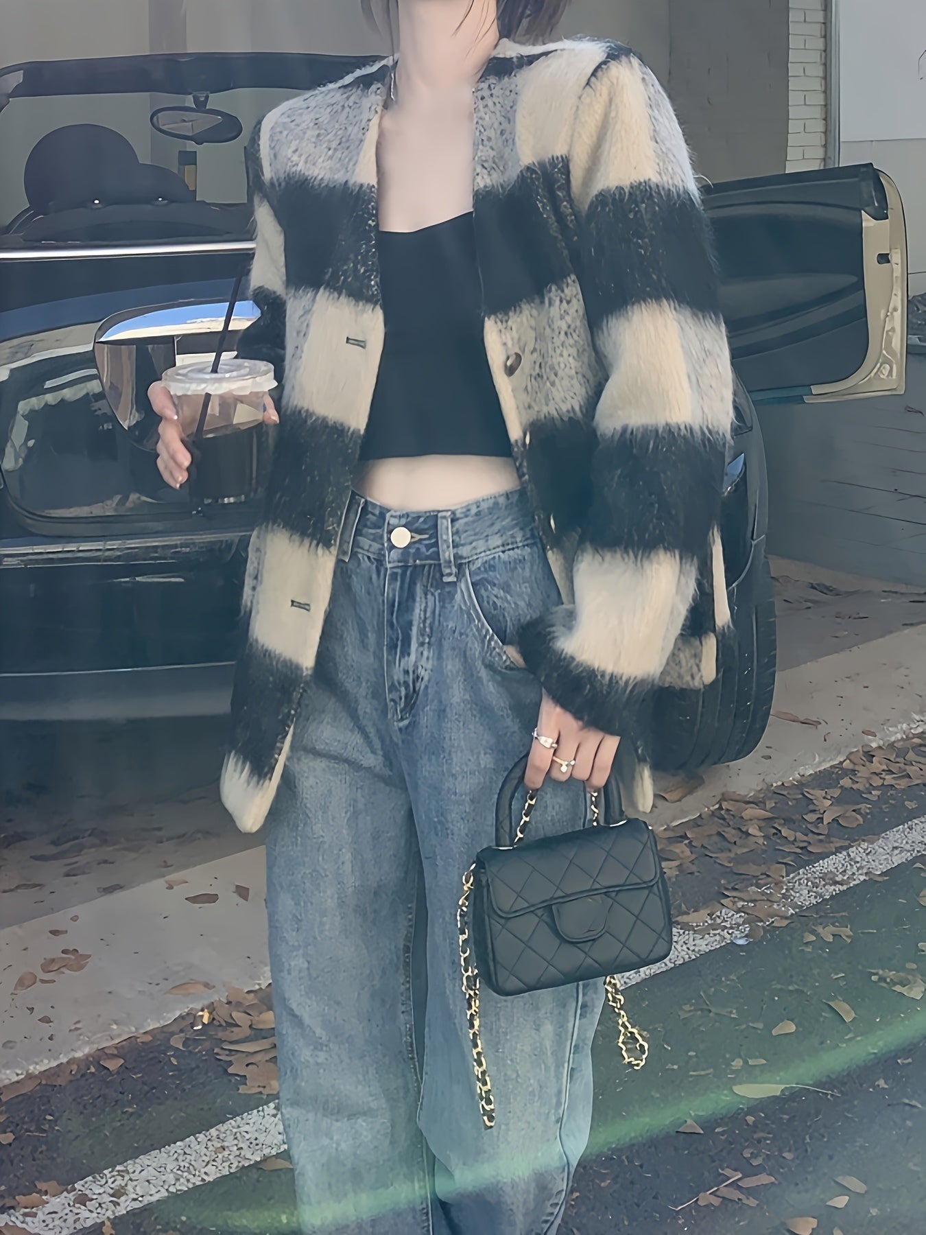 Sixsr Plaid Print Button Front Coat, Chic Long Sleeve Dual Pockets Cardigan For Fall & Winter, Women's Clothing