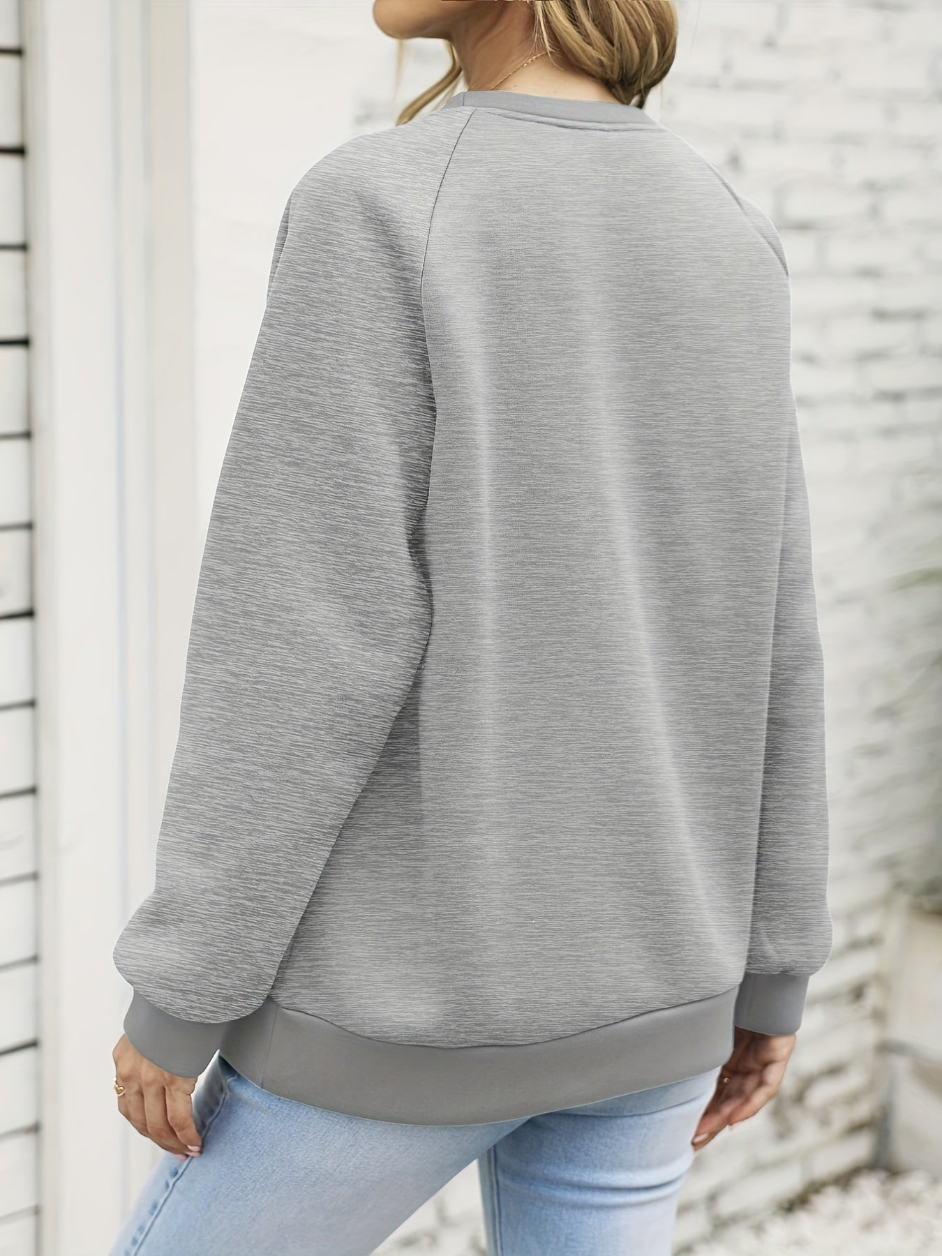 Sixsr Plus Size Basic Sweatshirt, Women's Plus Solid Long Sleeve Round Neck Sweatshirt