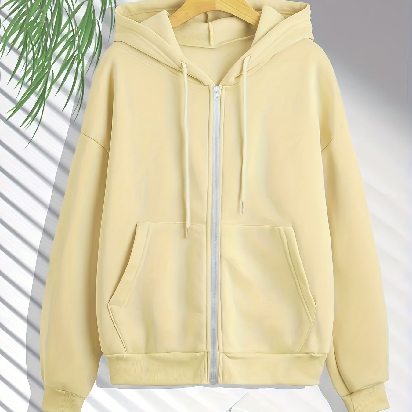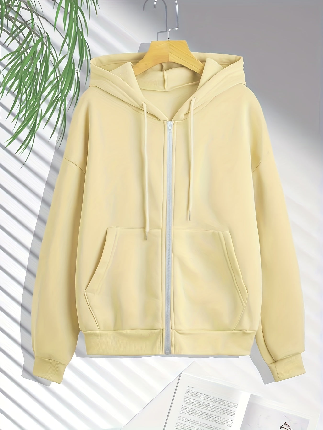 Sixsr Plus Size Basic Sweatshirt, Women's Plus Solid Long Sleeve Slight Stretch Drawstring Zipper Hoodie With Pocket