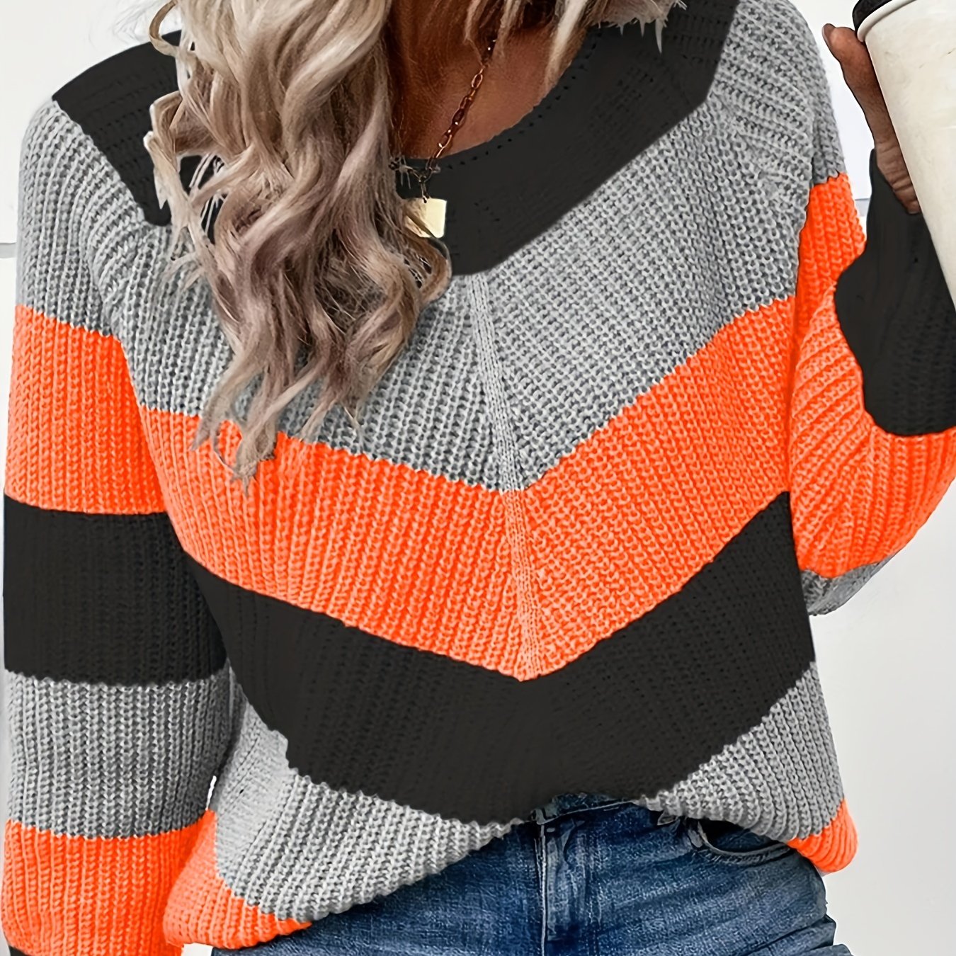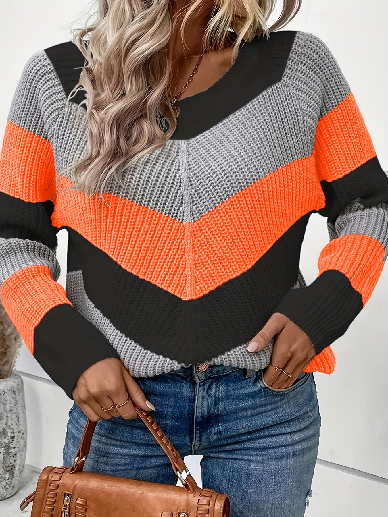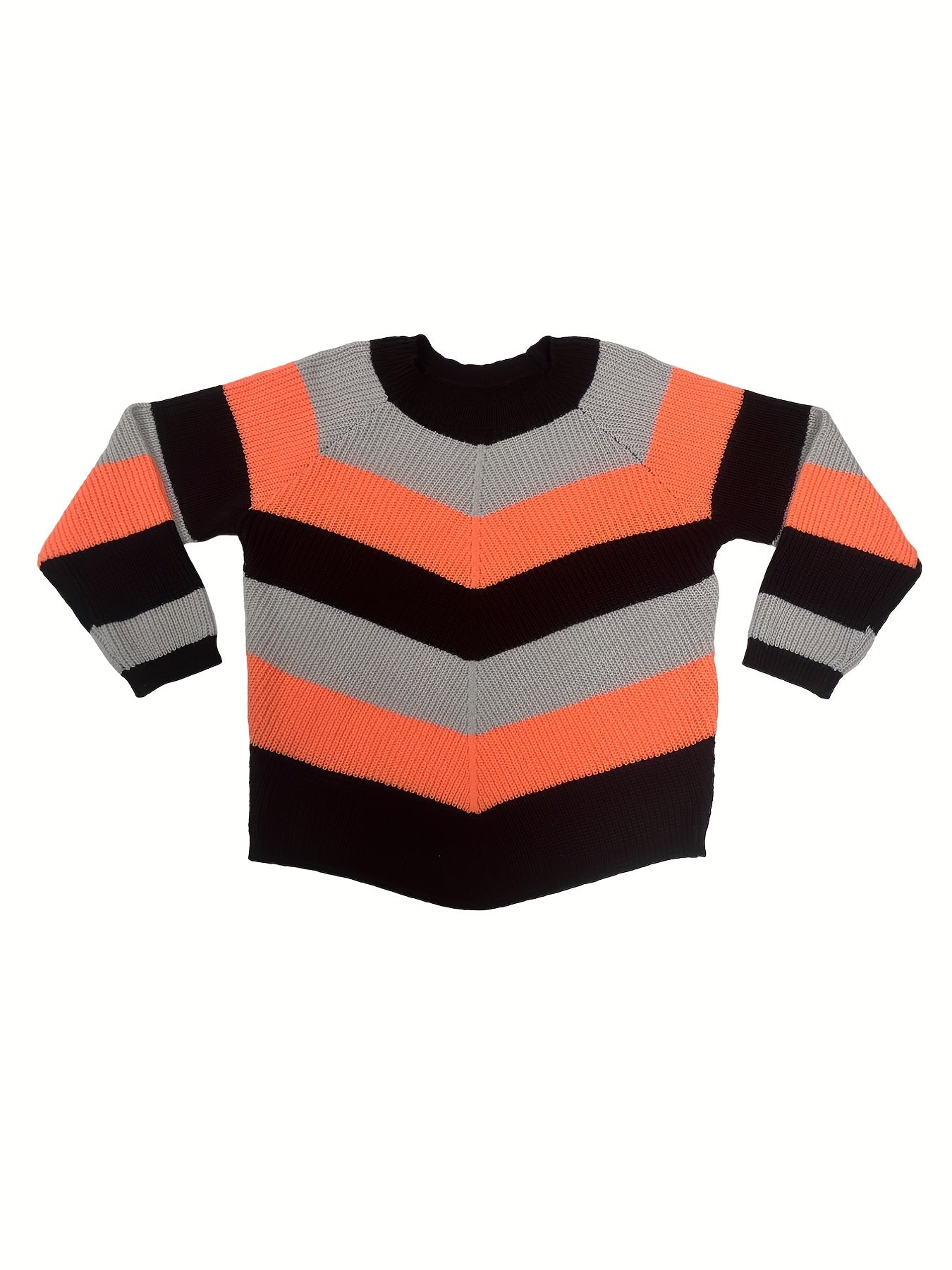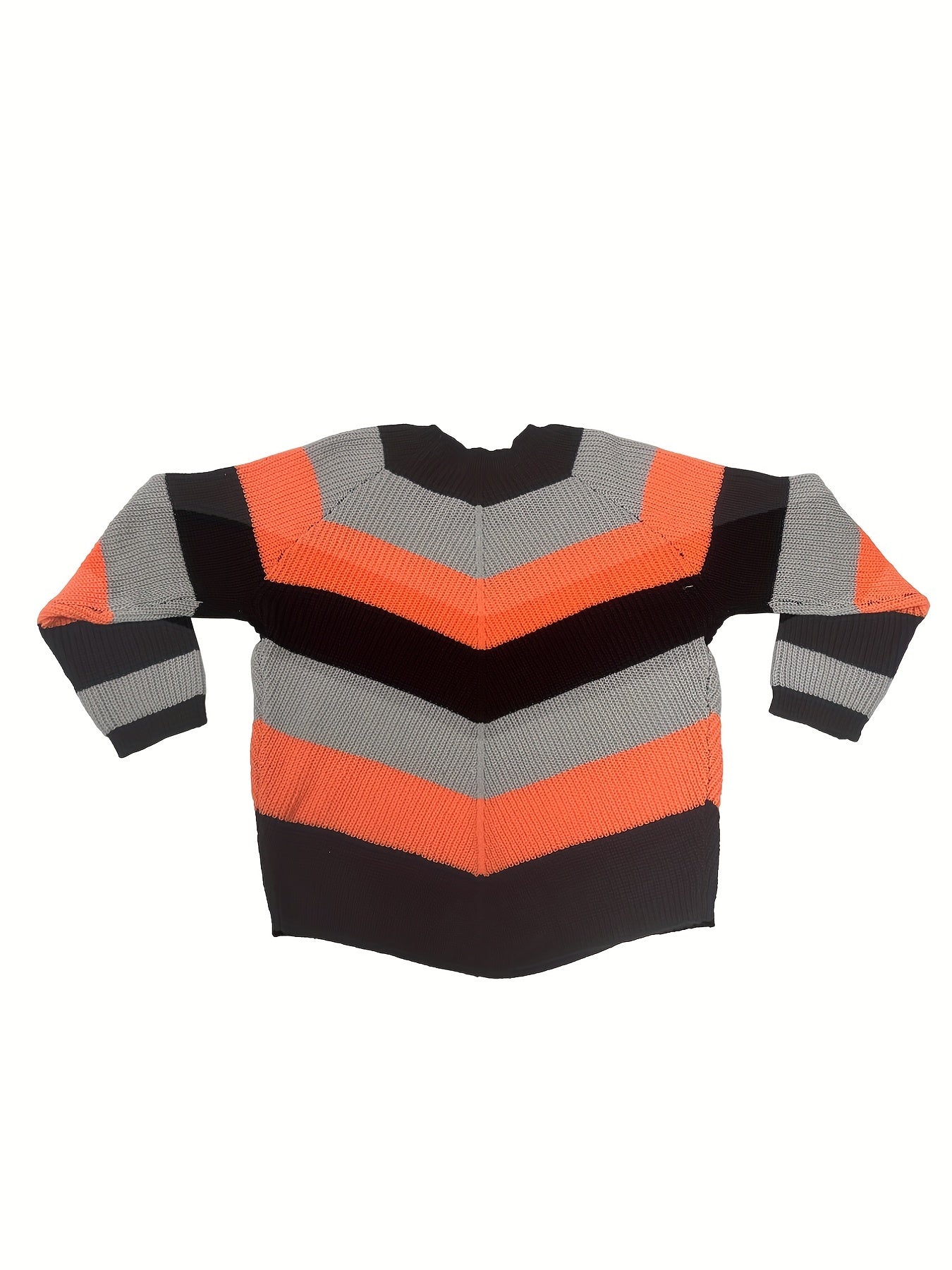 Sixsr Plus Size Casual Sweater, Women's Plus Colorblock Long Sleeve Round Neck Slight Stretch Sweater